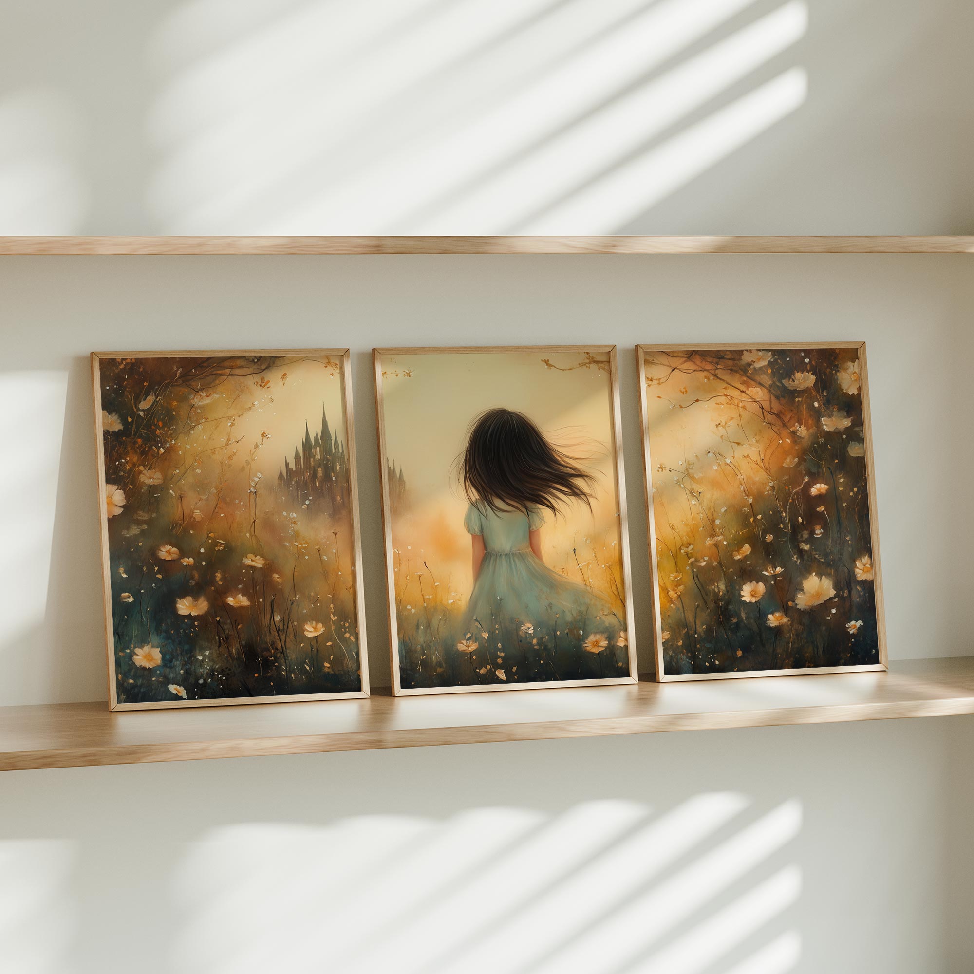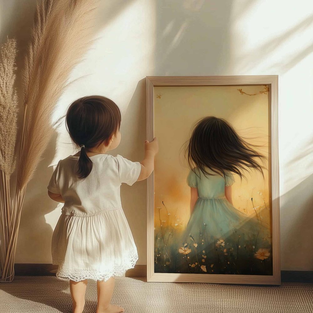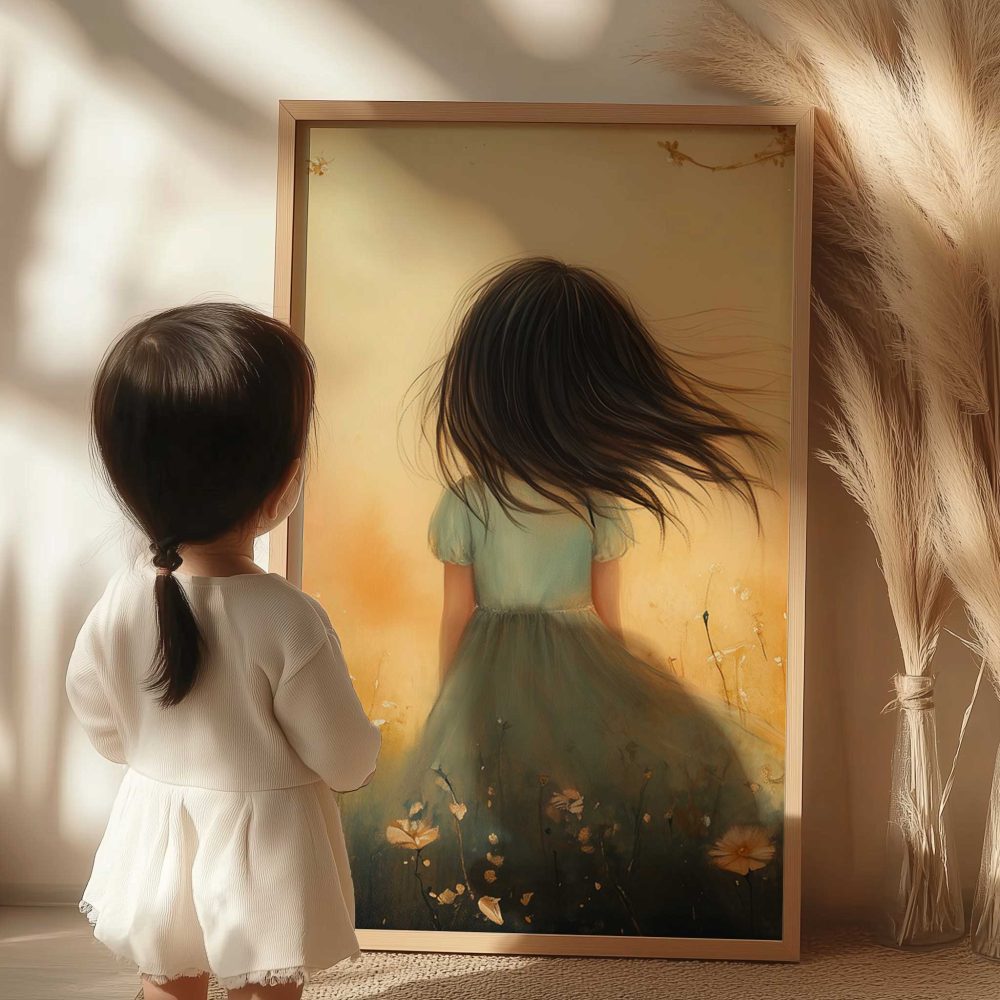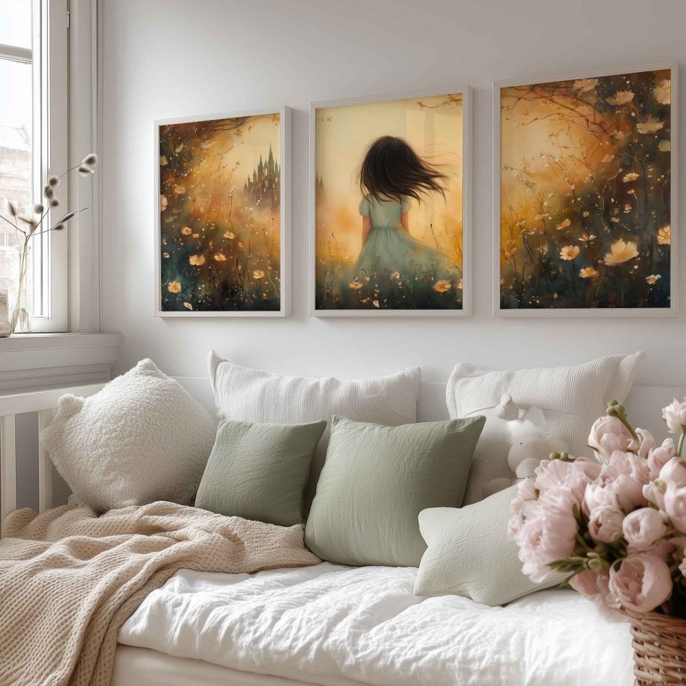 Terug naar collectie / Uncategorized / Speels Meisje in Bloemenveld met Kasteel