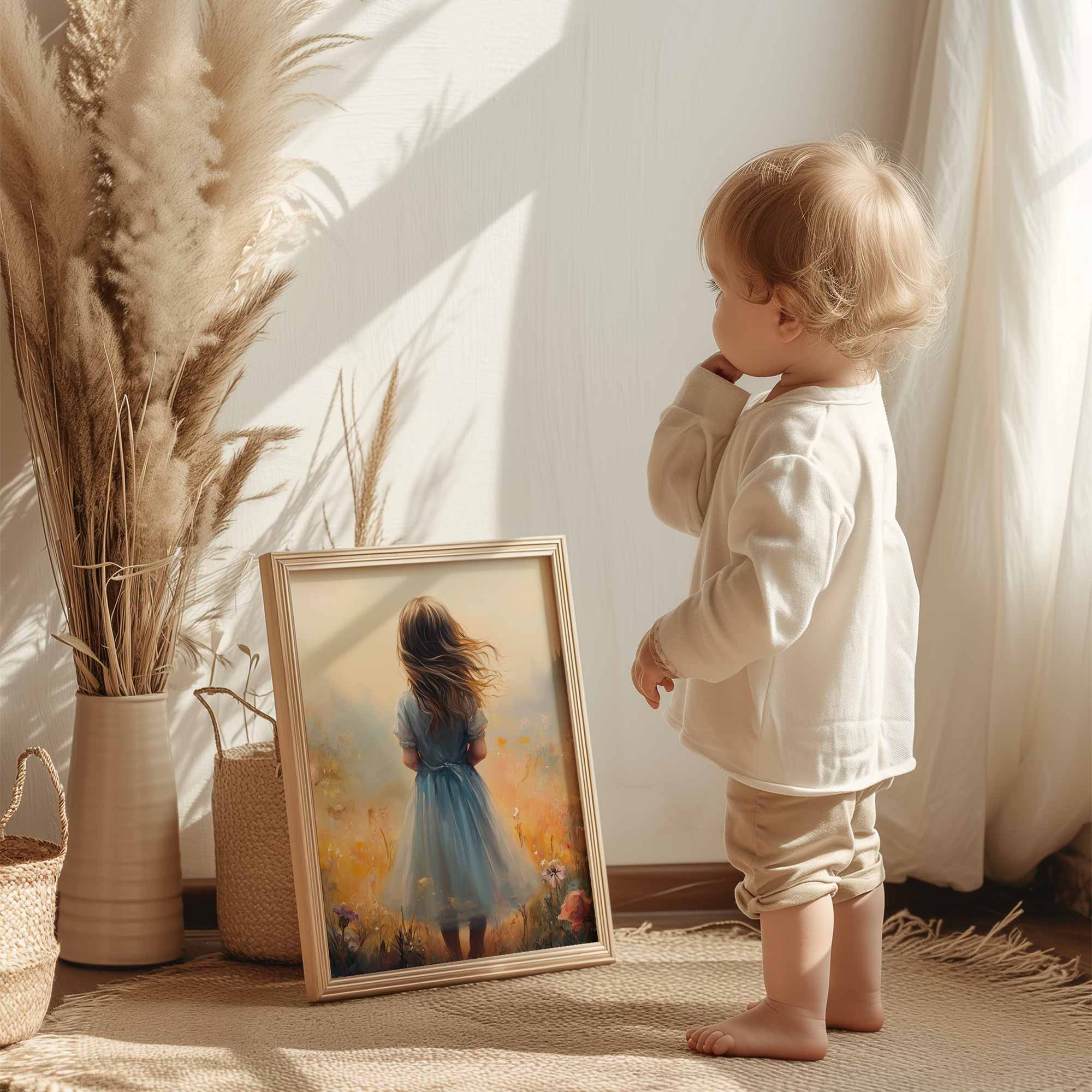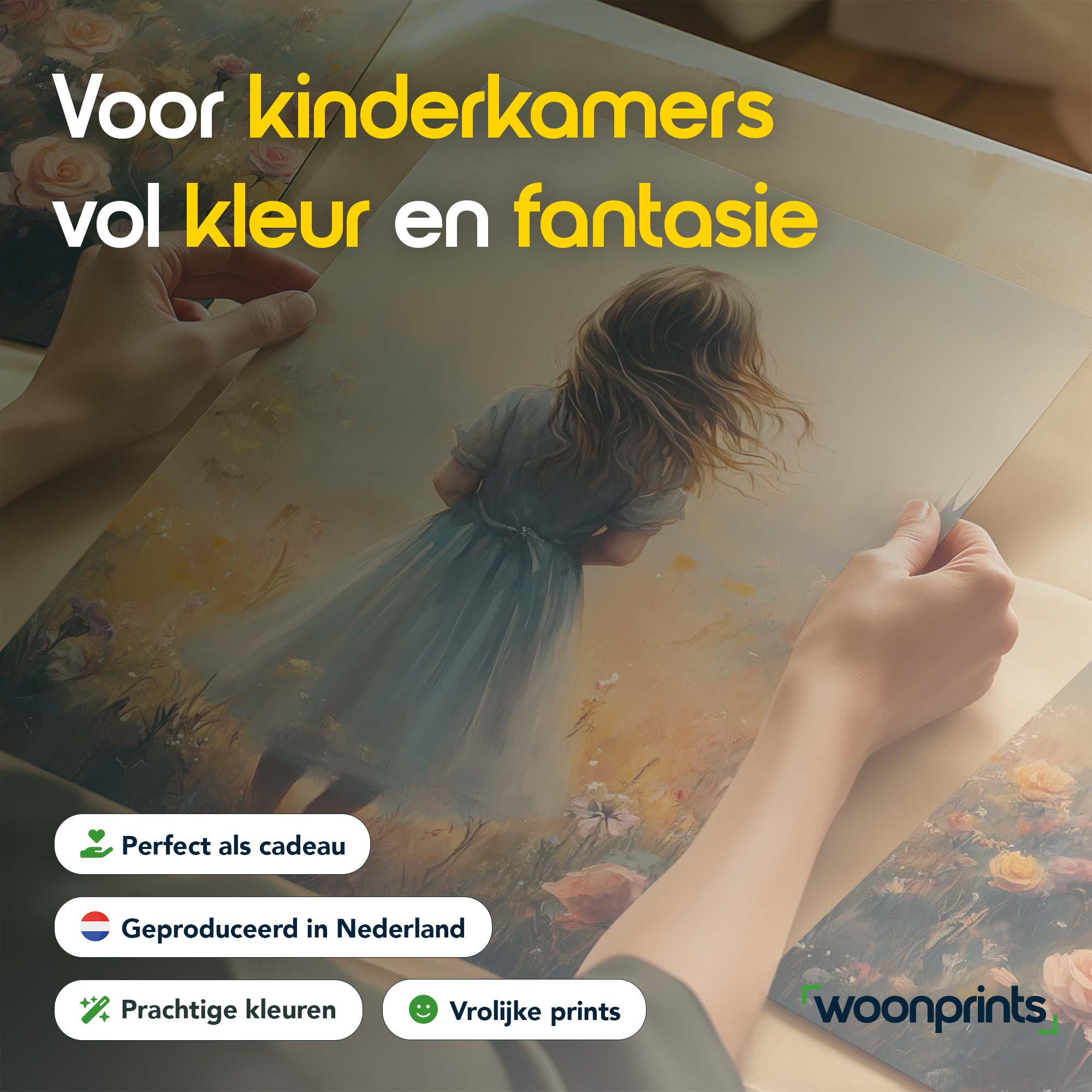 Terug naar collectie / Uncategorized / Speels Meisje in Bloemenveld met Kasteel
