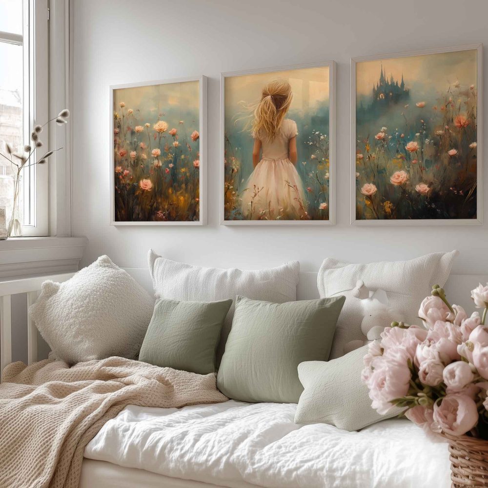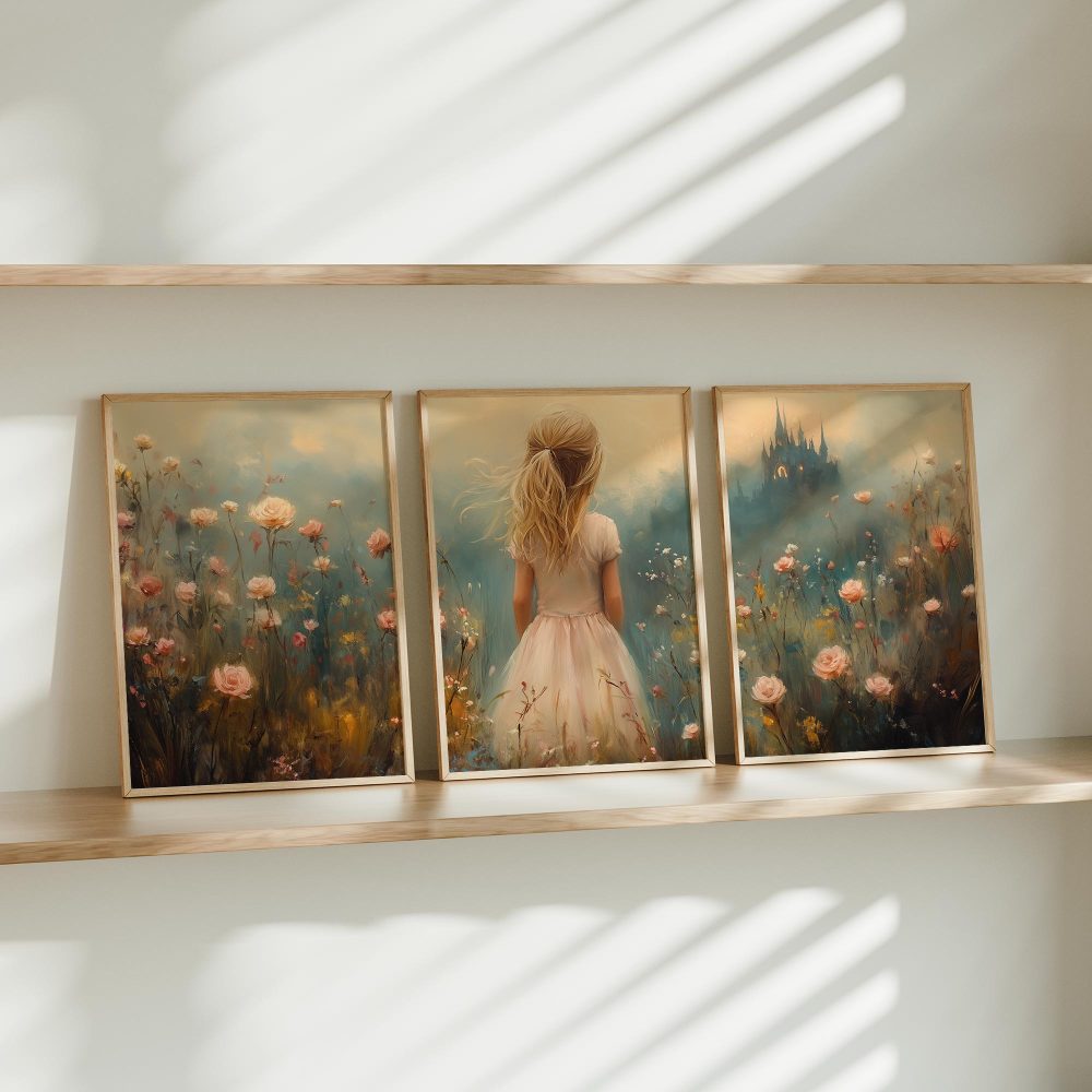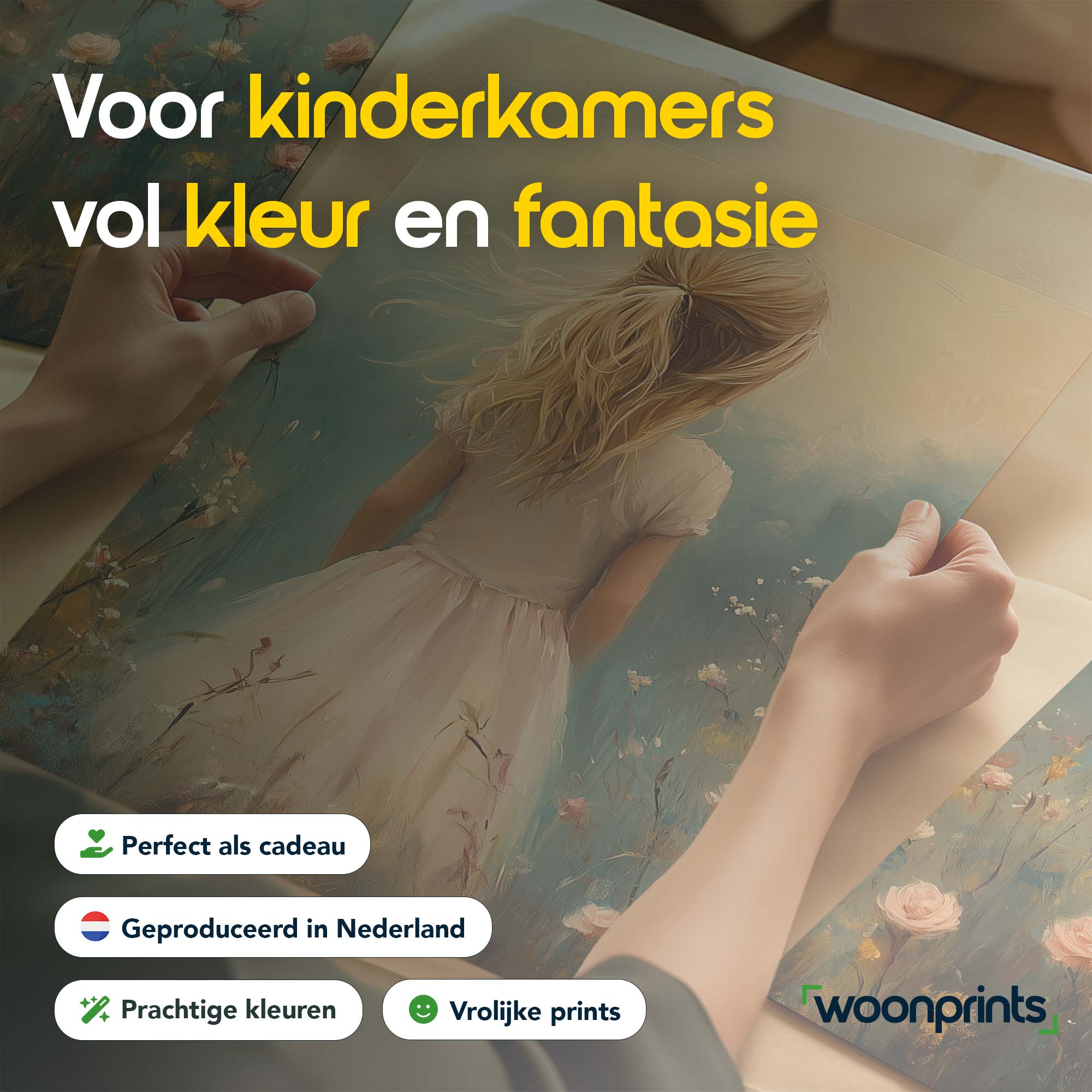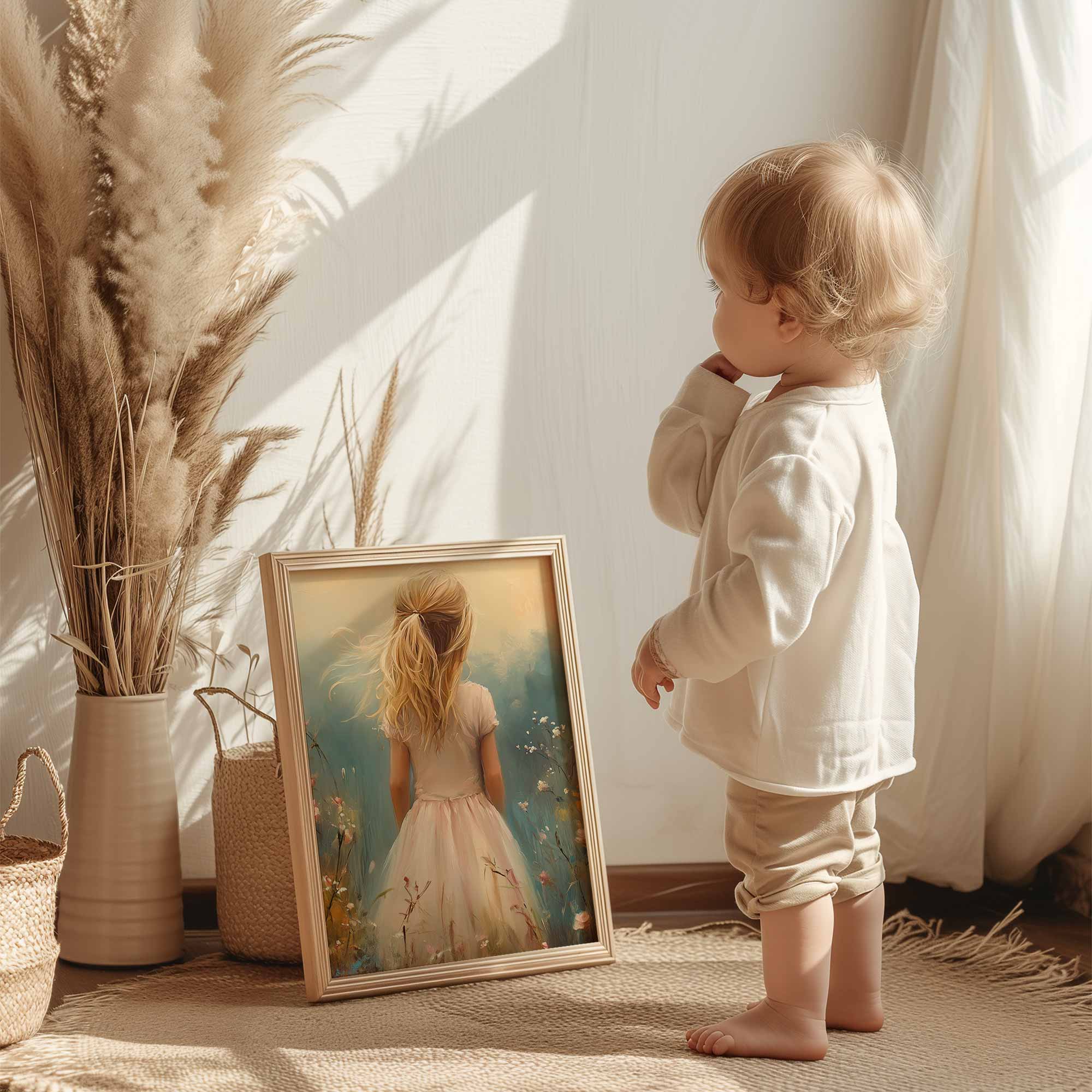 Terug naar collectie / Uncategorized / Speels Meisje in Bloemenveld met Kasteel