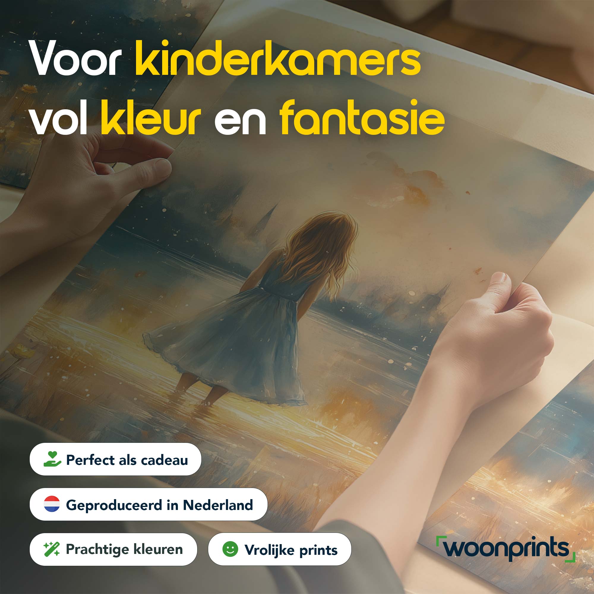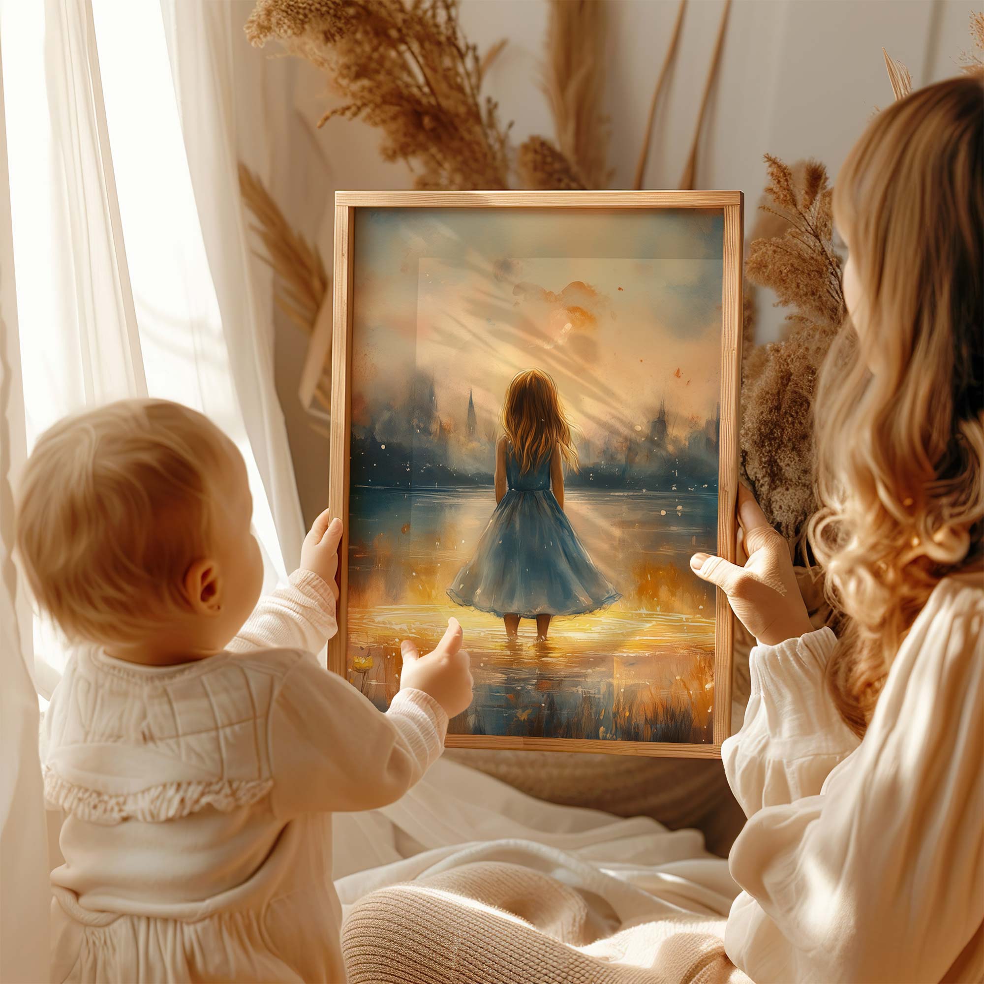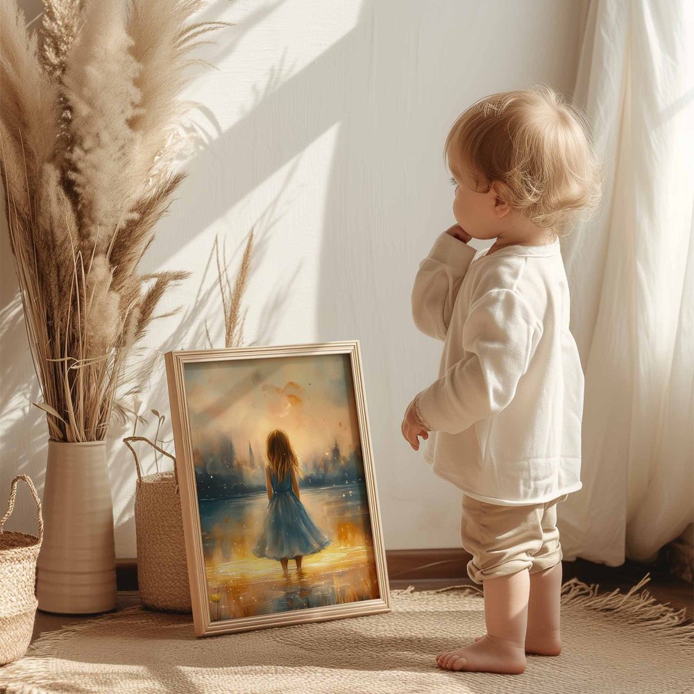 Terug naar collectie / Uncategorized / Speels Meisje in Bloemenveld met Stad aan het Water