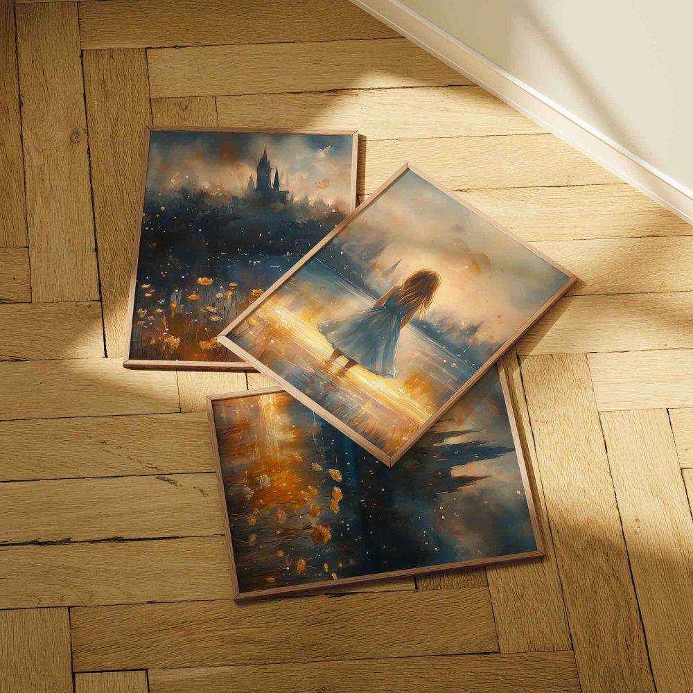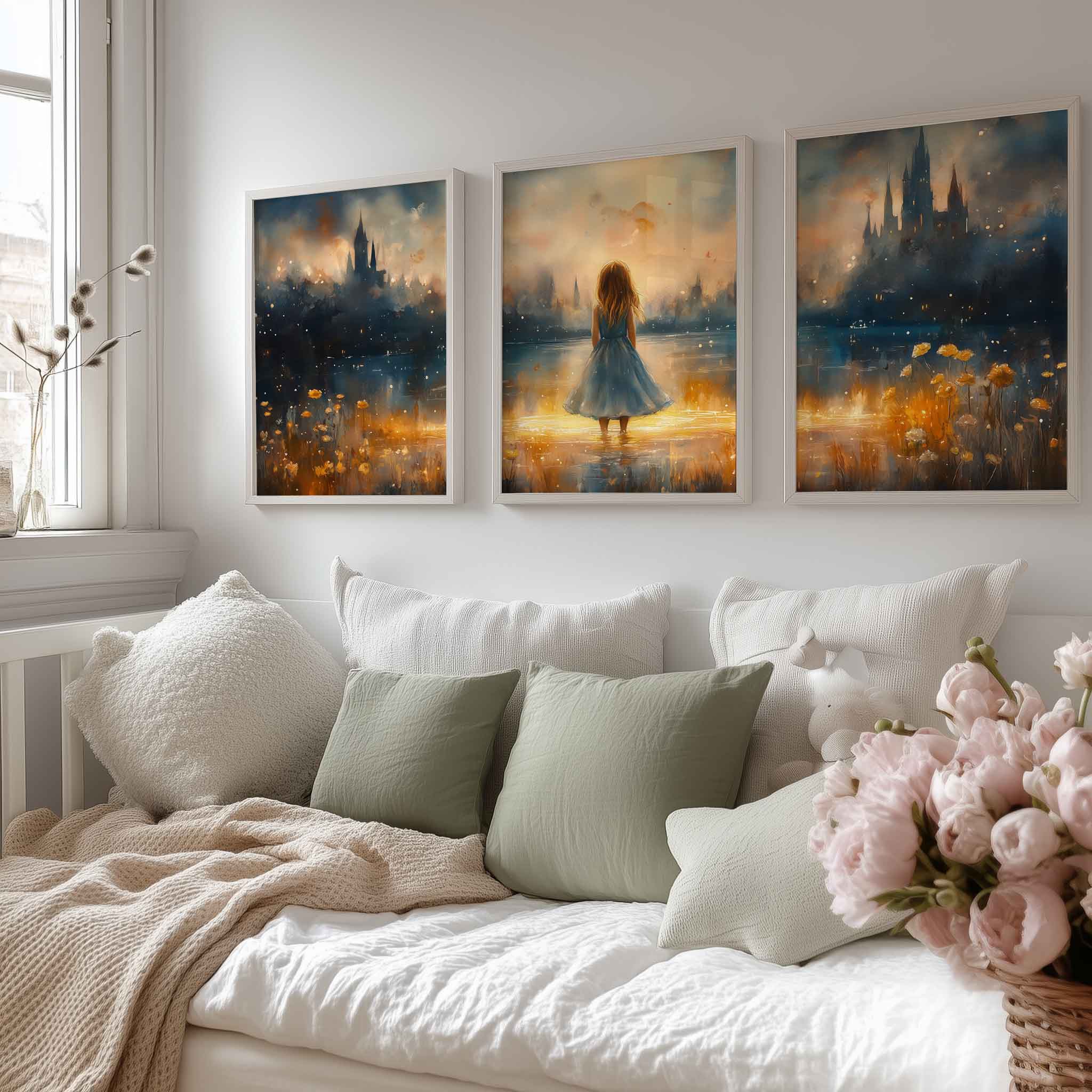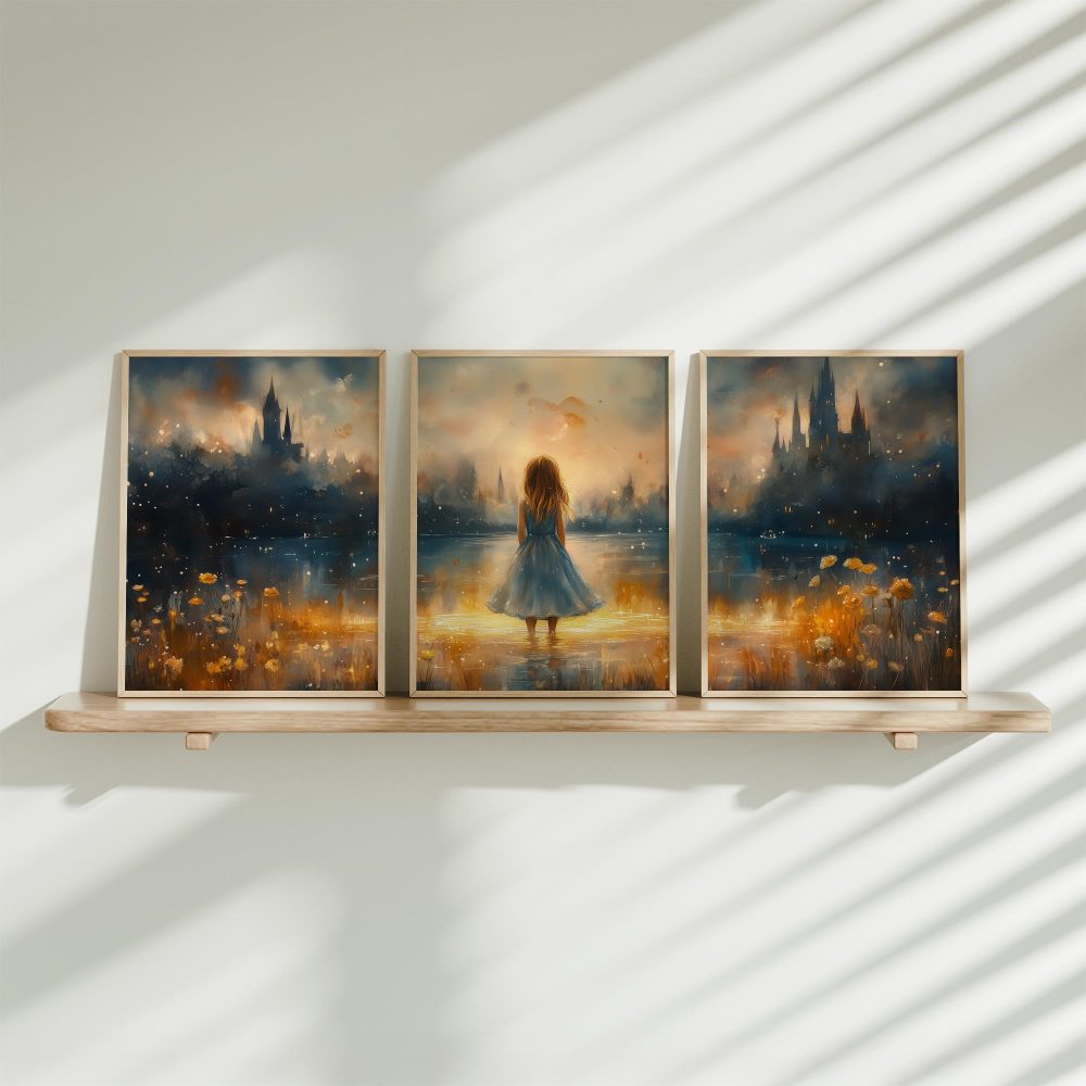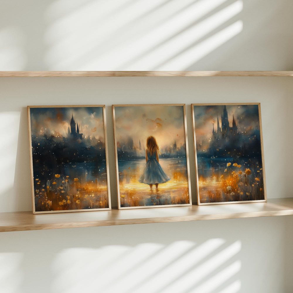 Terug naar collectie / Uncategorized / Speels Meisje in Bloemenveld met Stad aan het Water