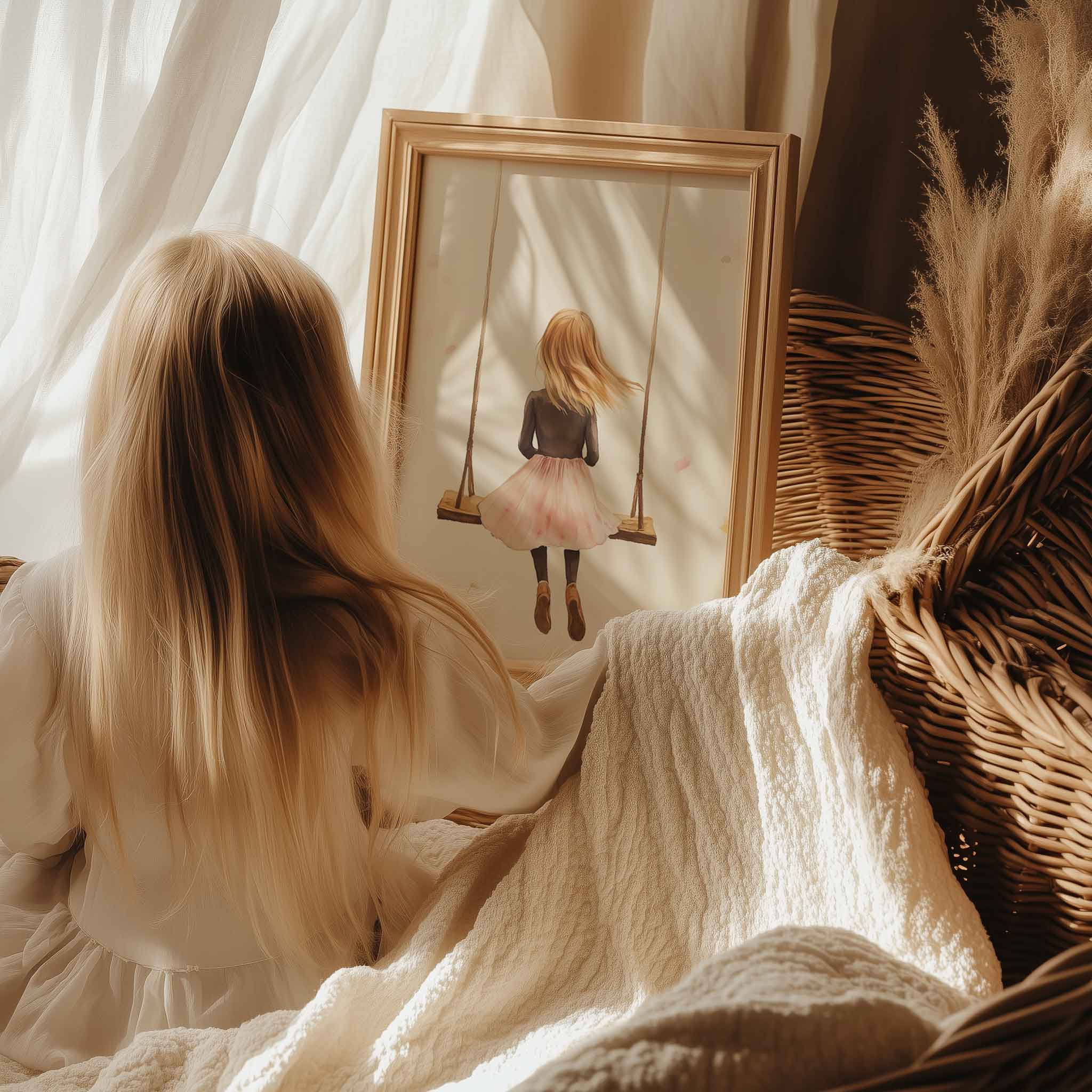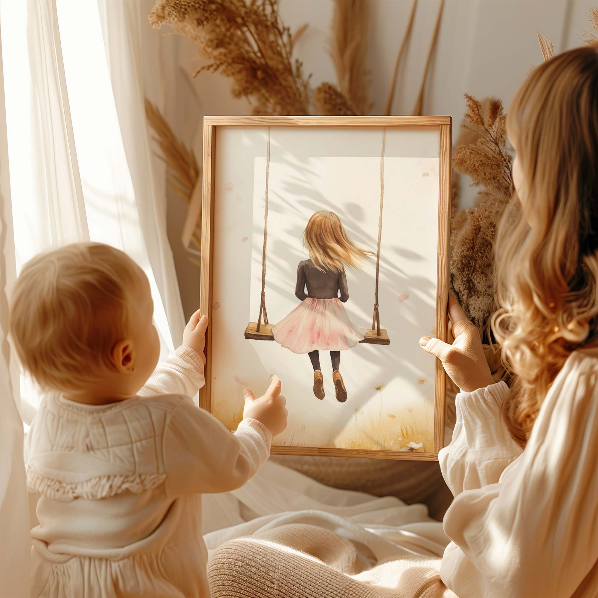 Terug naar collectie / Uncategorized / Speels Meisje op Schommel in Bloemenveld