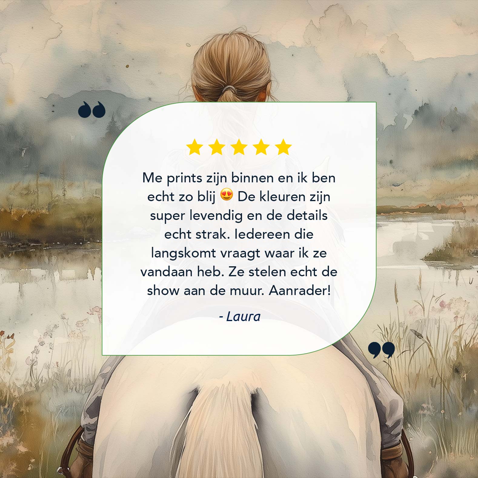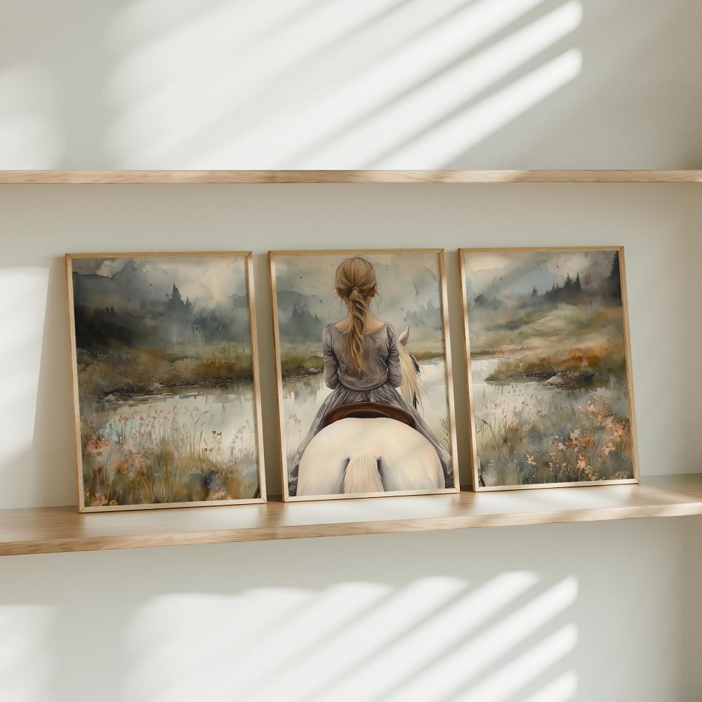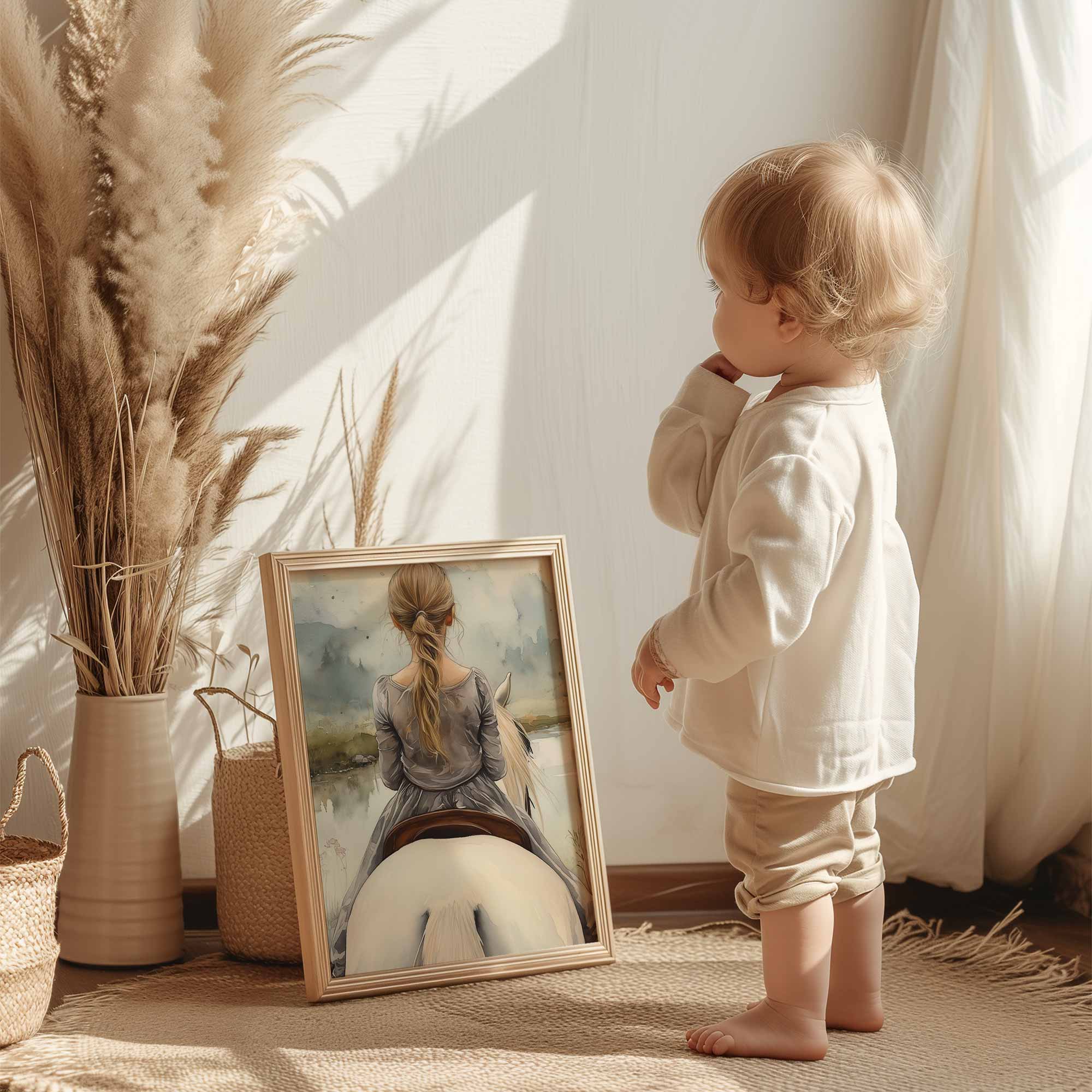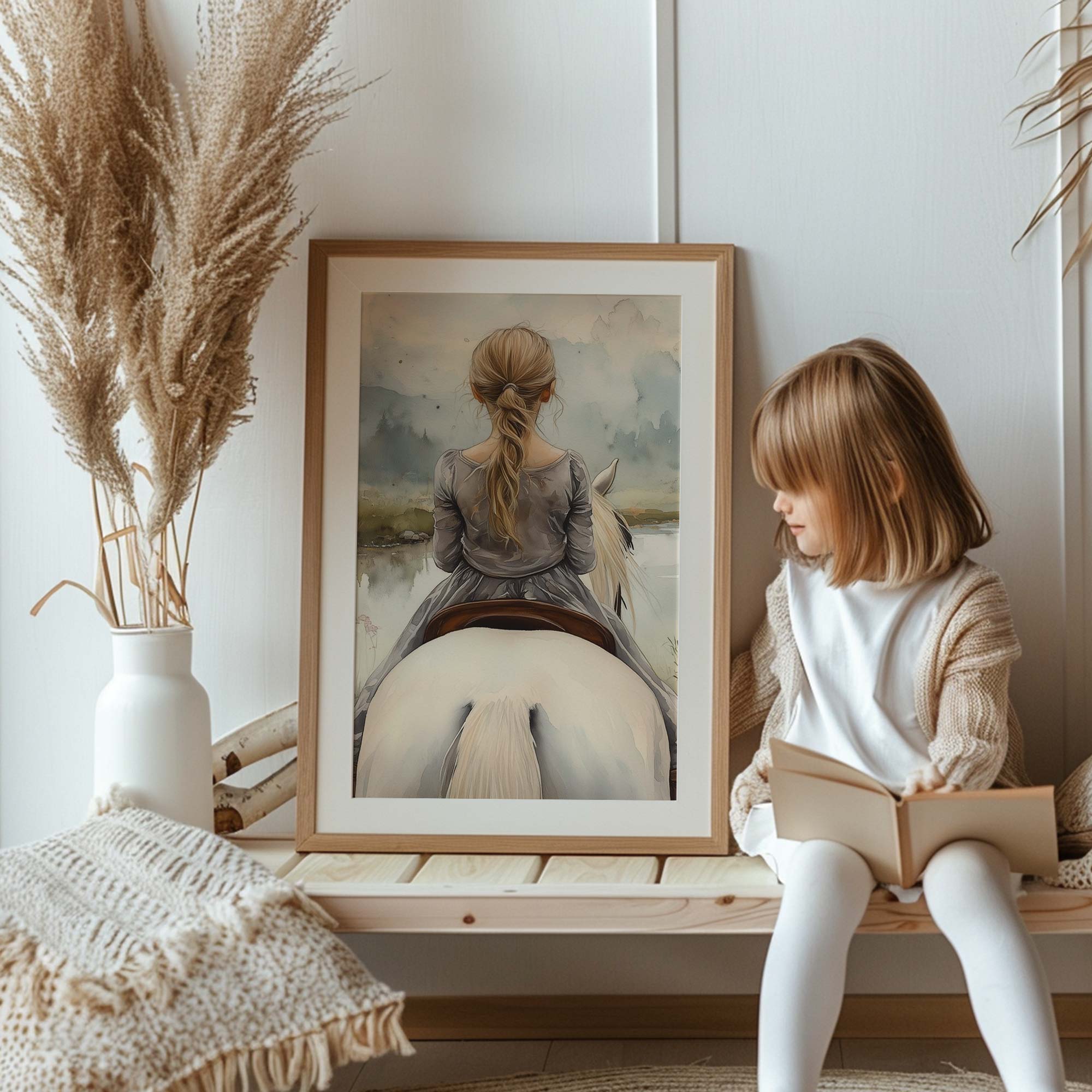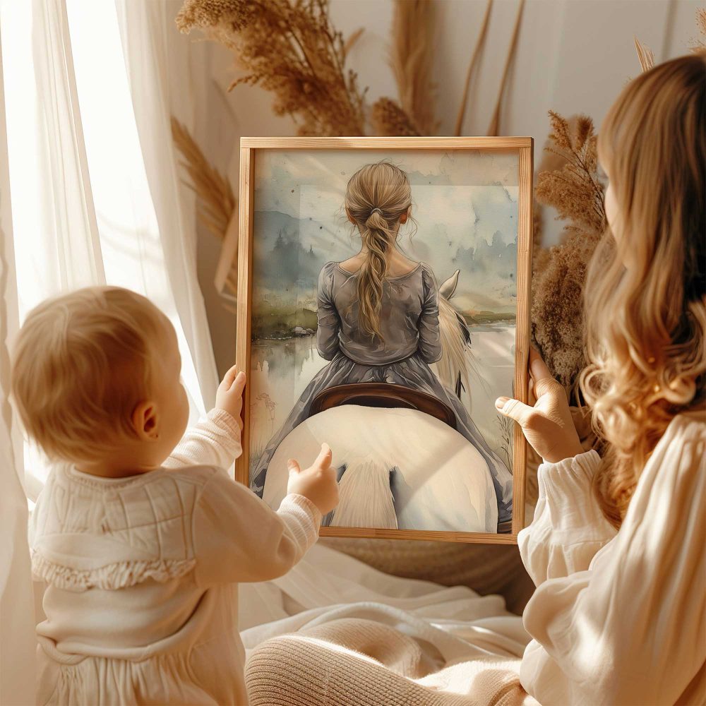 Terug naar collectie / Uncategorized / Speels Meisje op Wit Paard bij Rivier