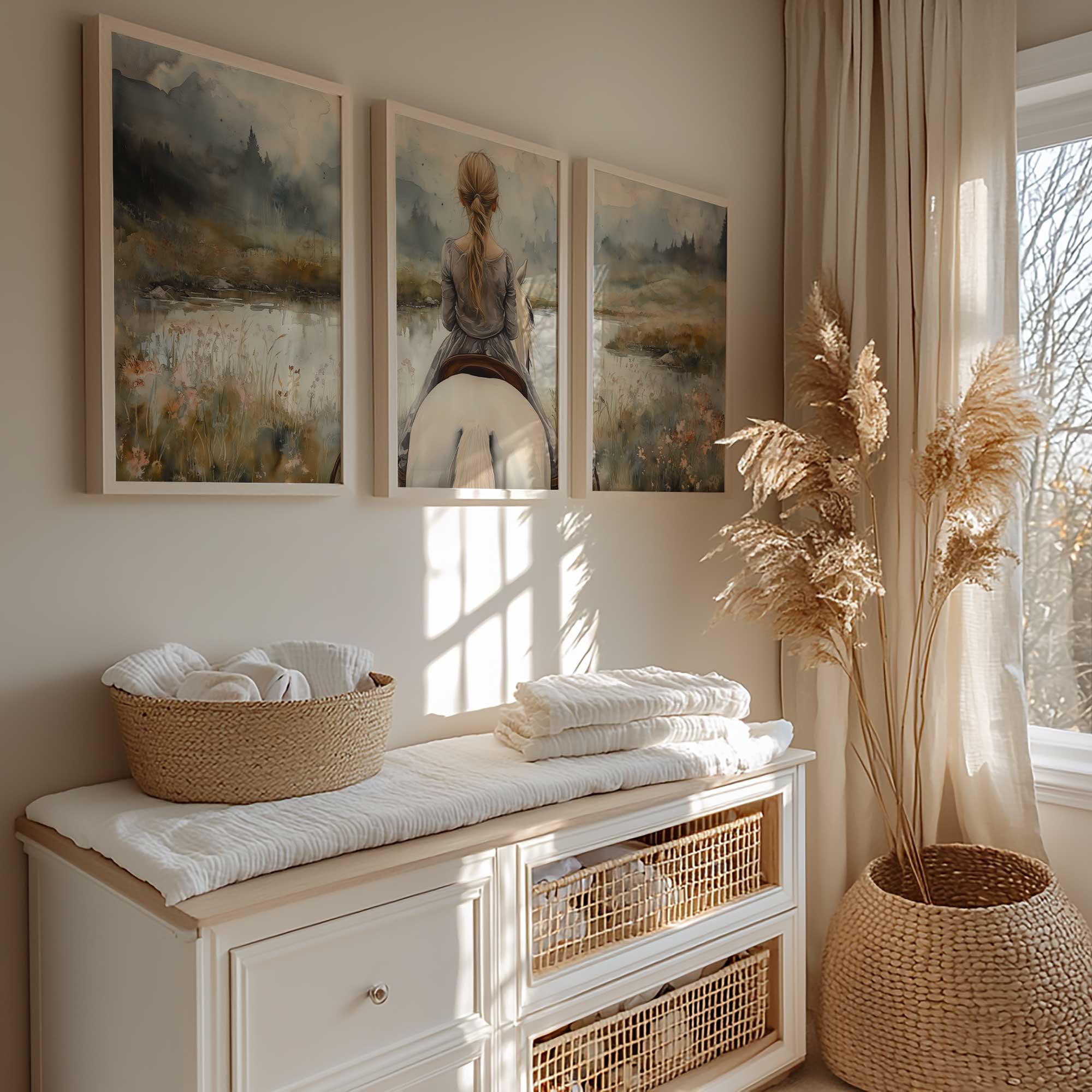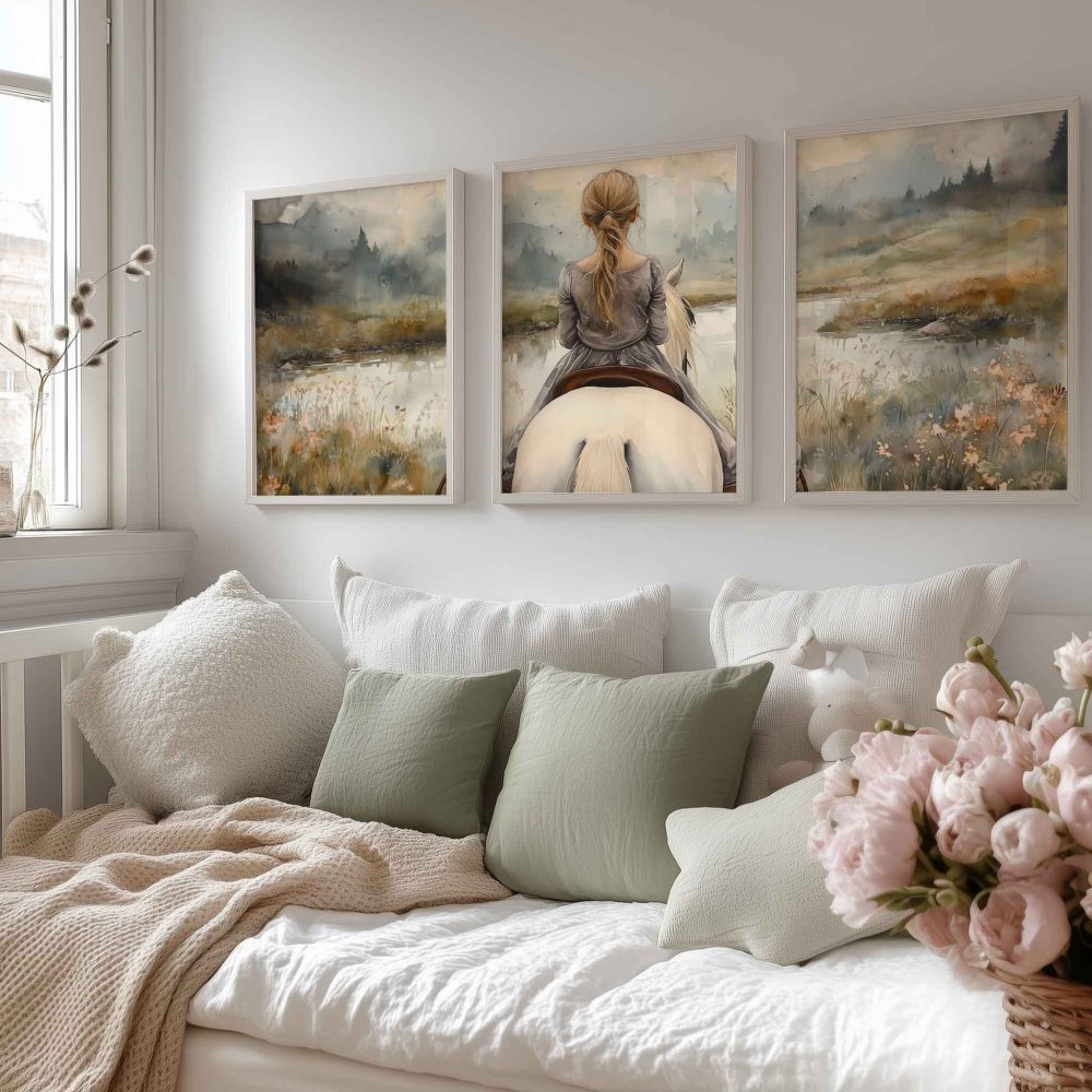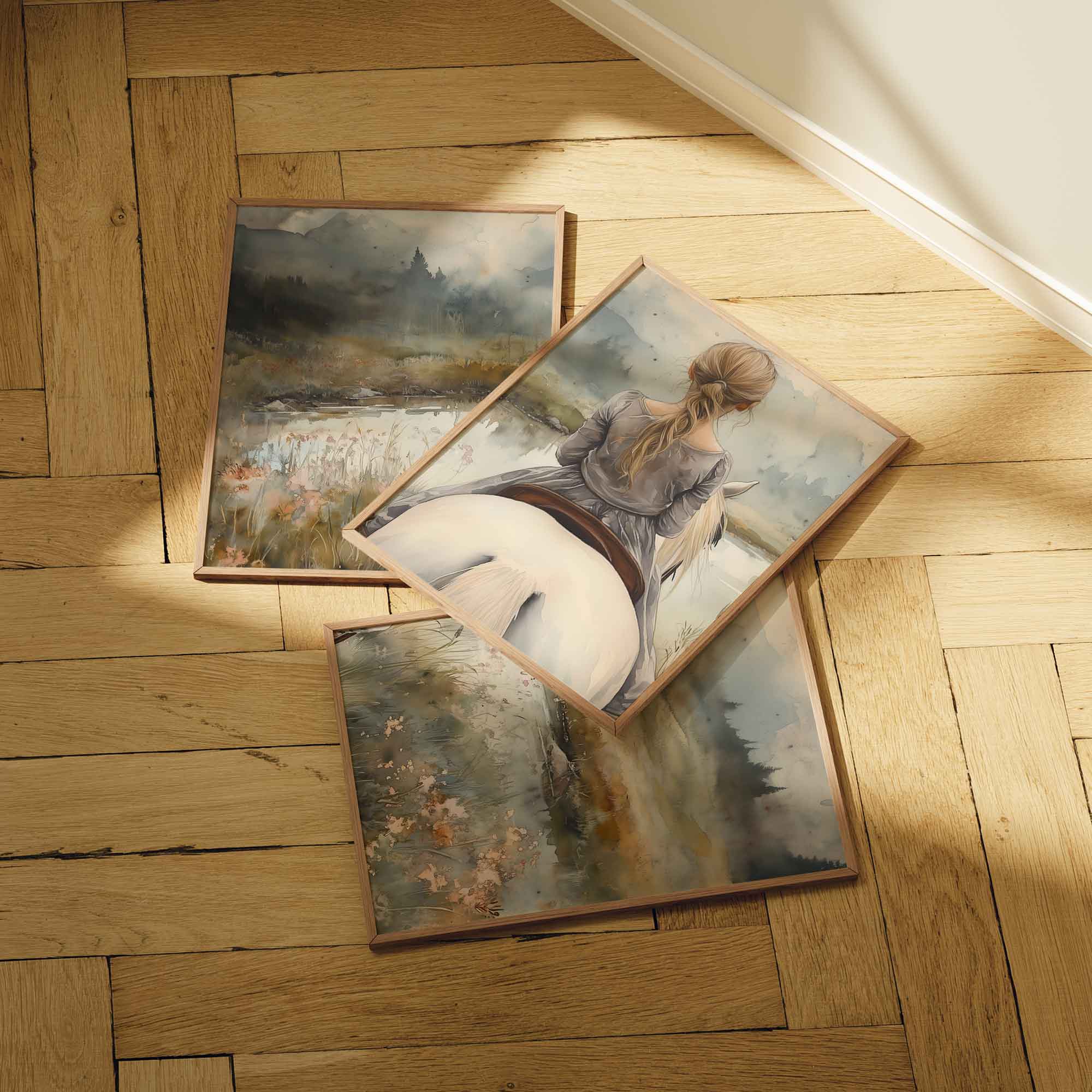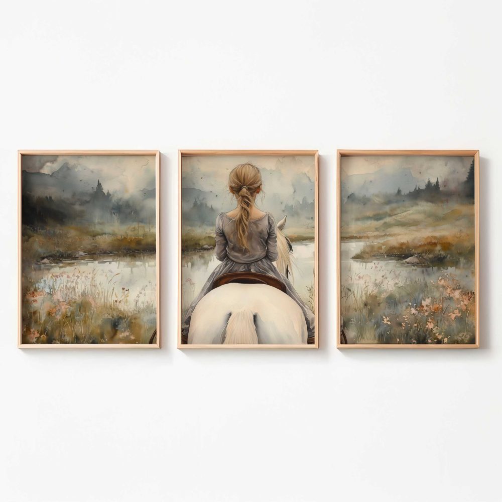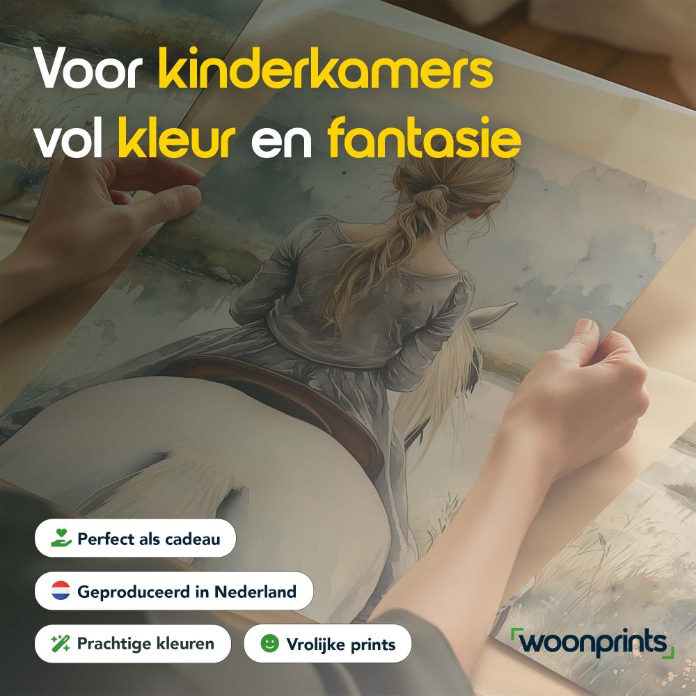 Terug naar collectie / Uncategorized / Speels Meisje op Wit Paard bij Rivier