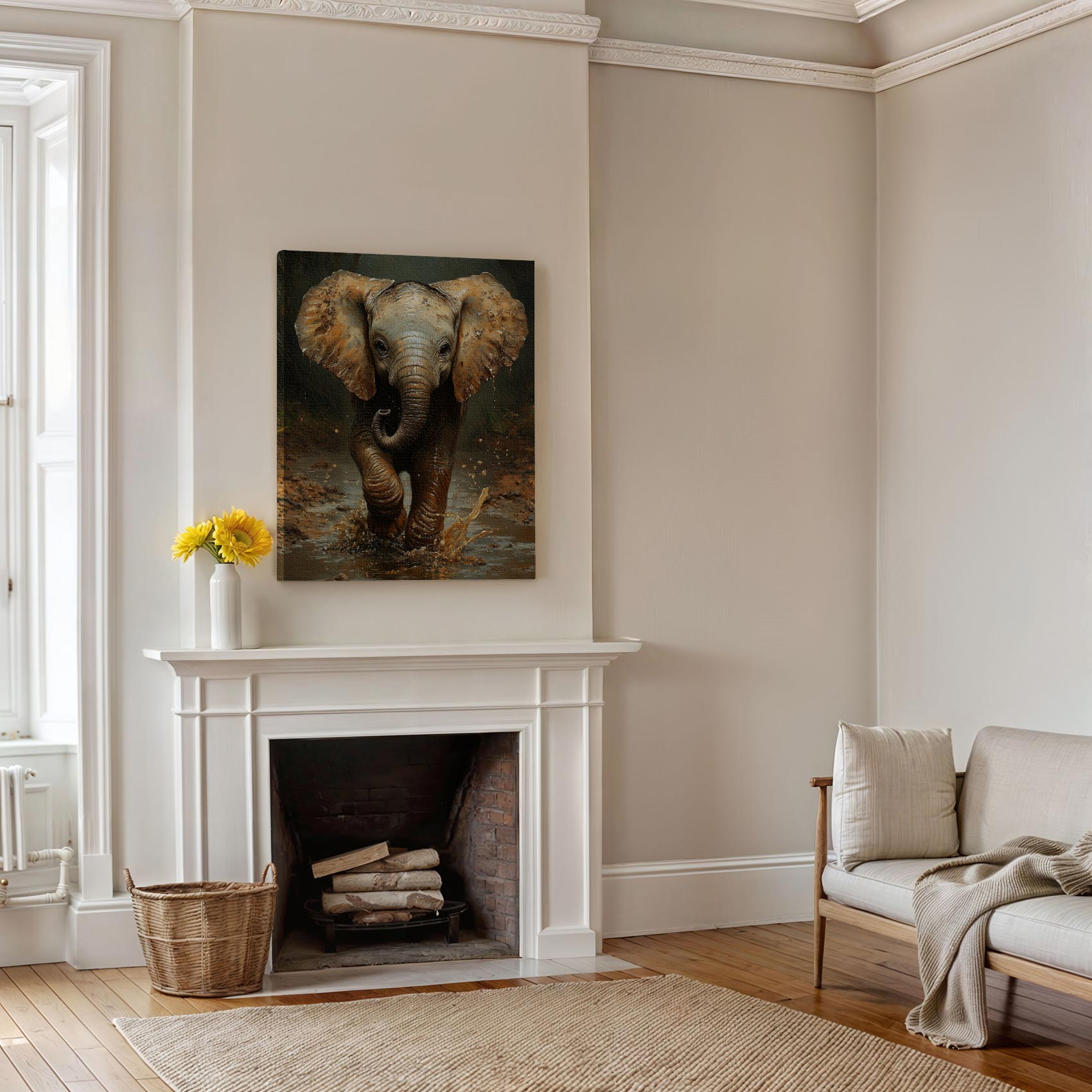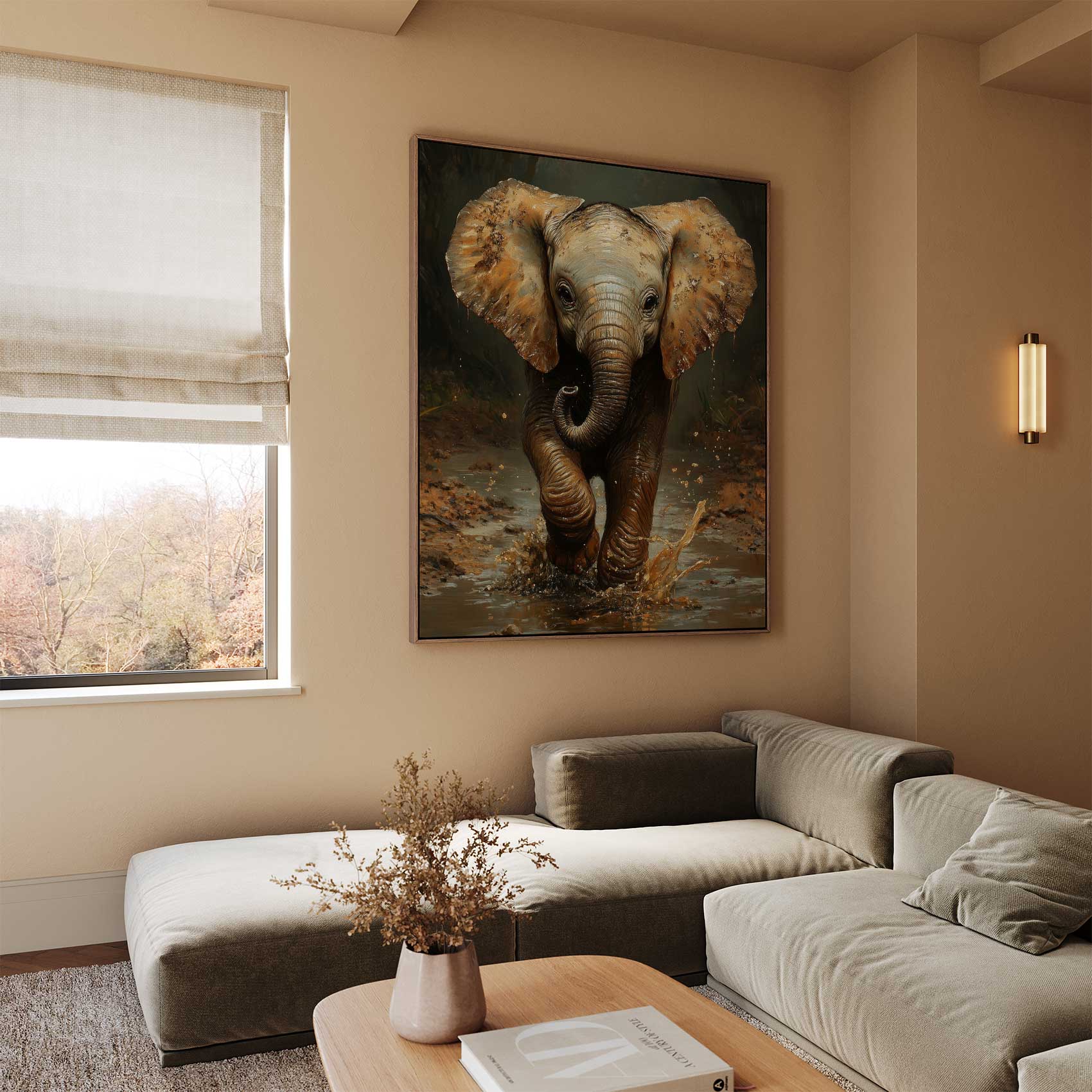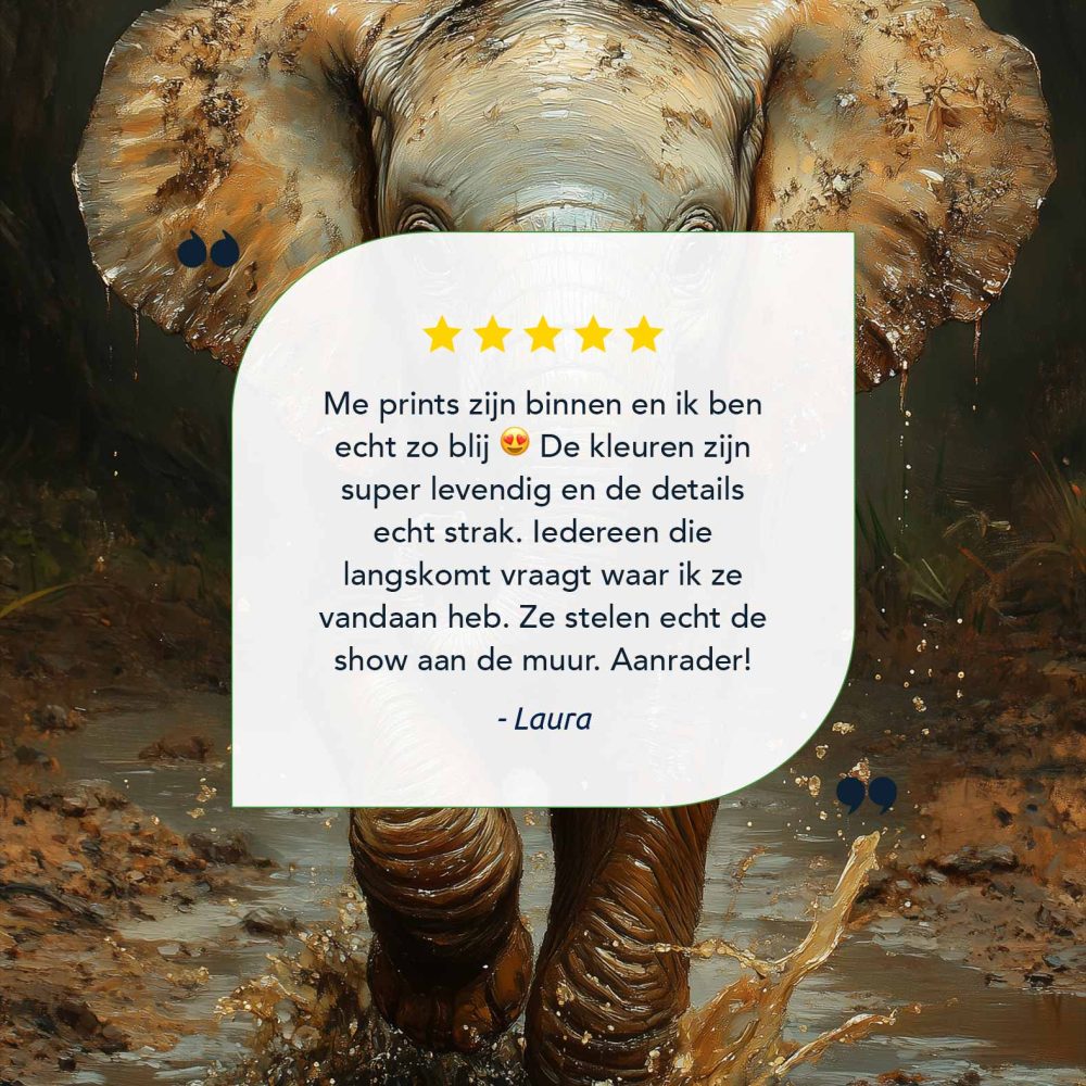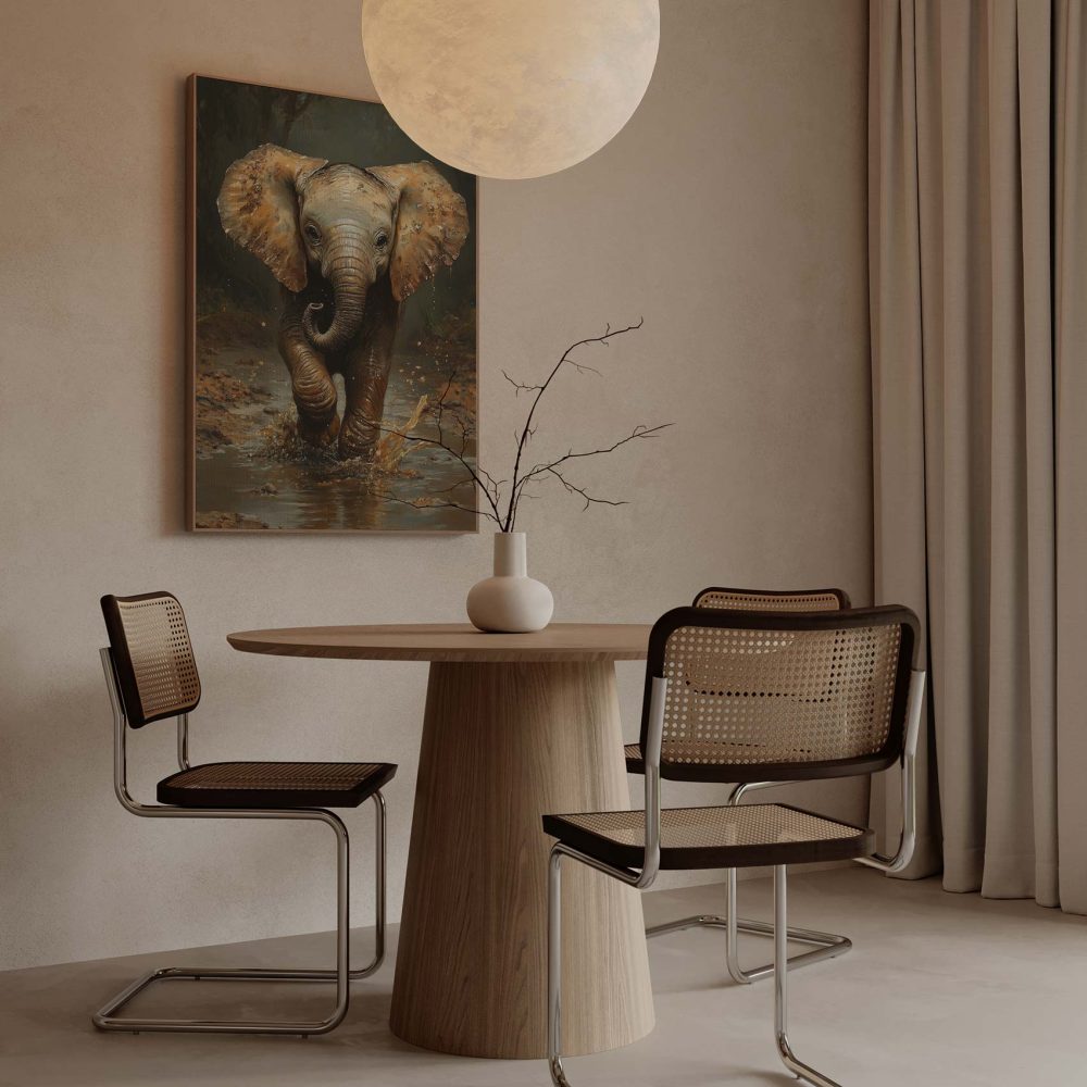 Terug naar collectie / Schilderijen / Bloemen Schilderij / Speels olifantje in modderpoel