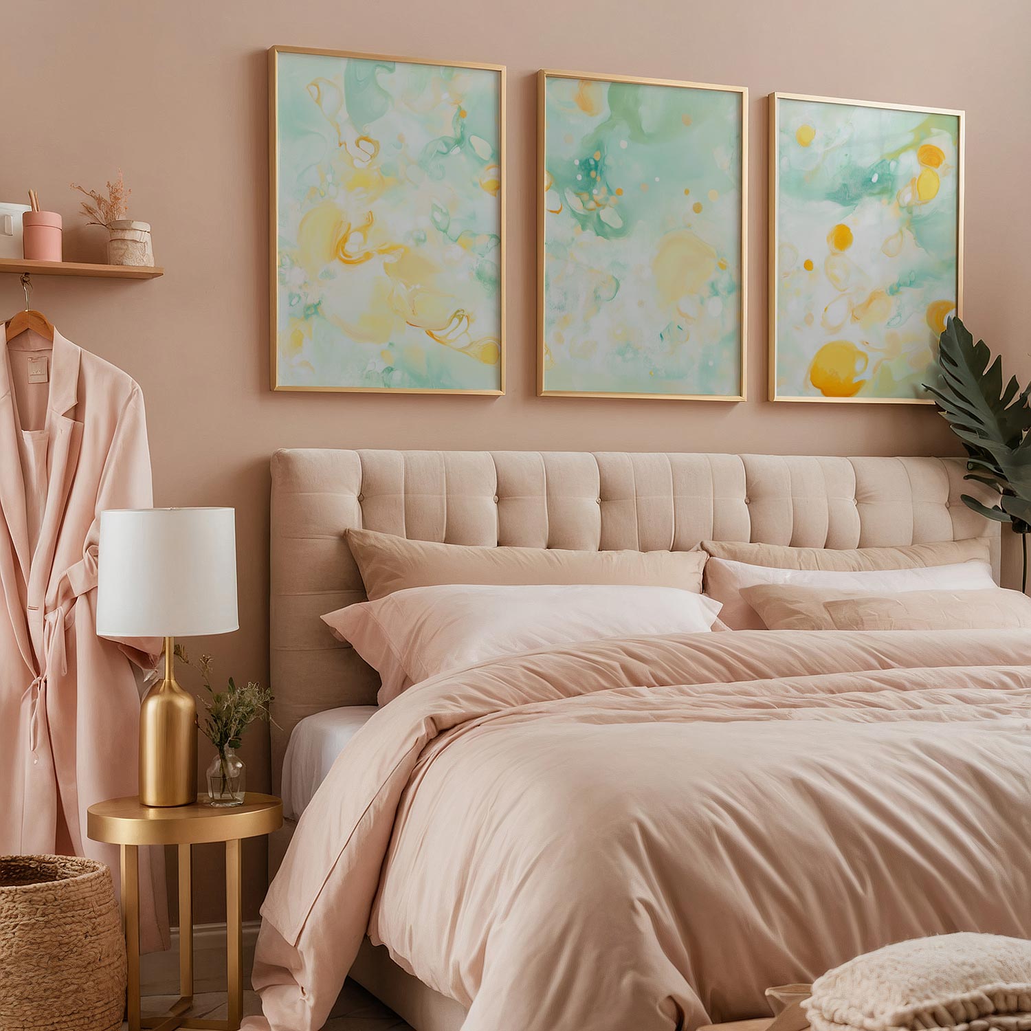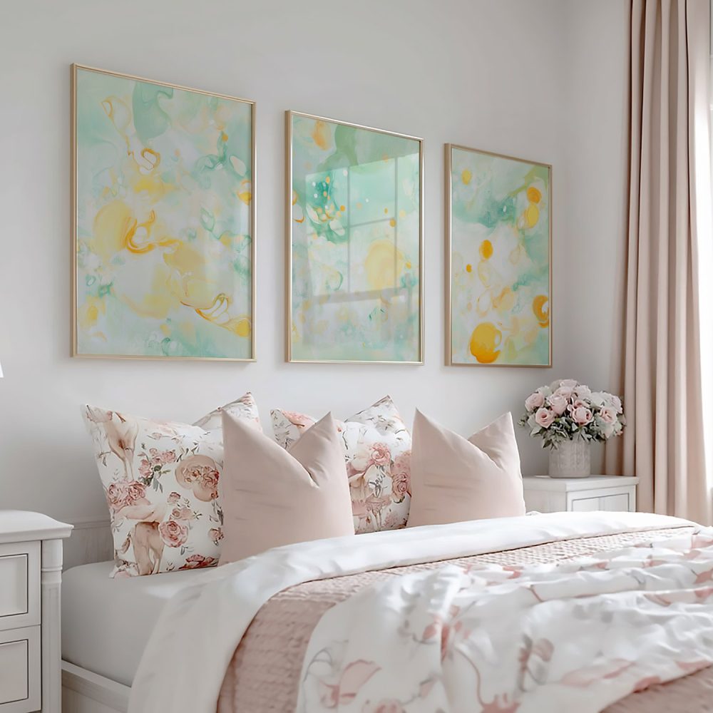 Speelse Abstracte Dans in Zacht Geel en Fris Groen
