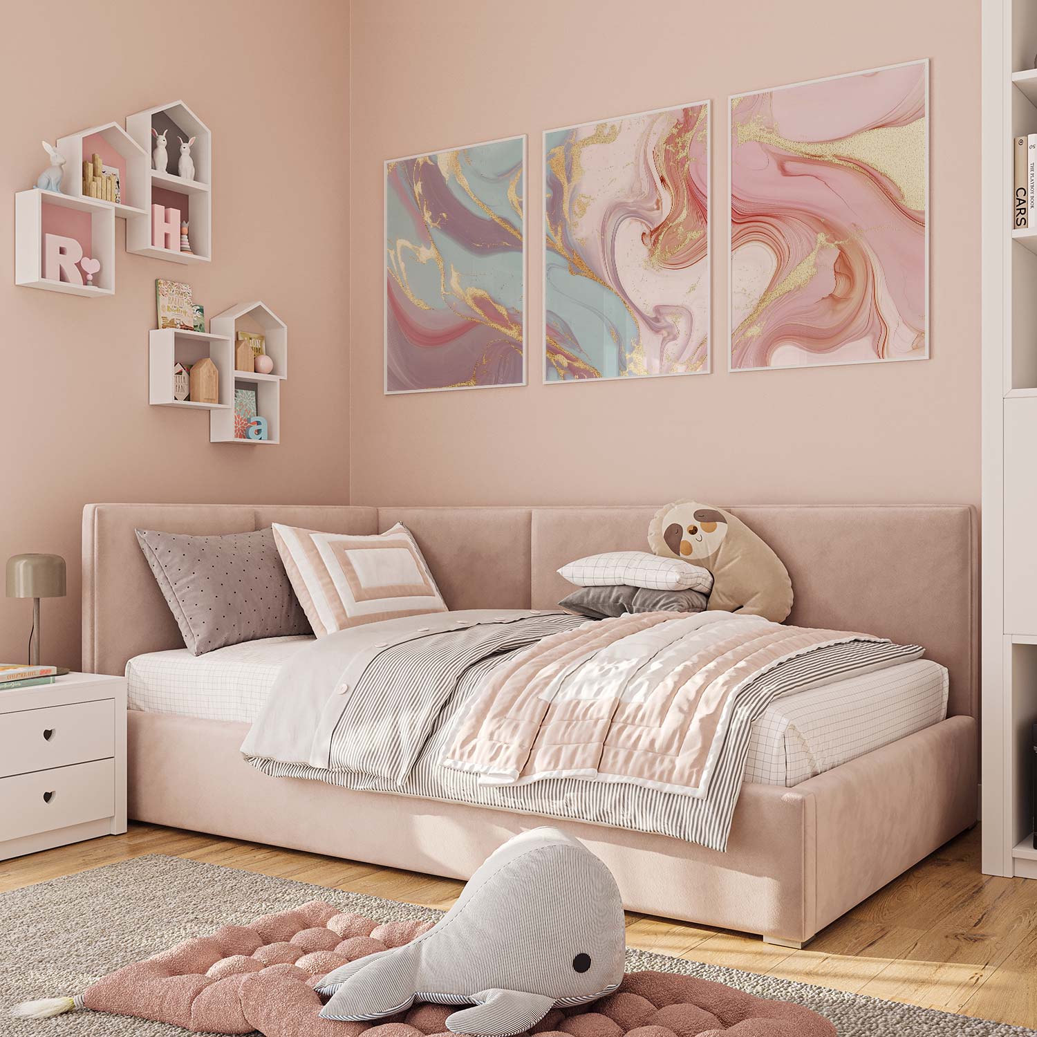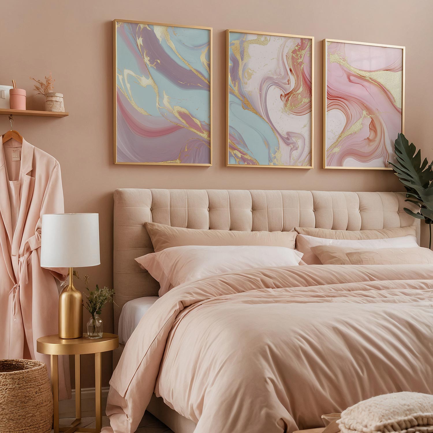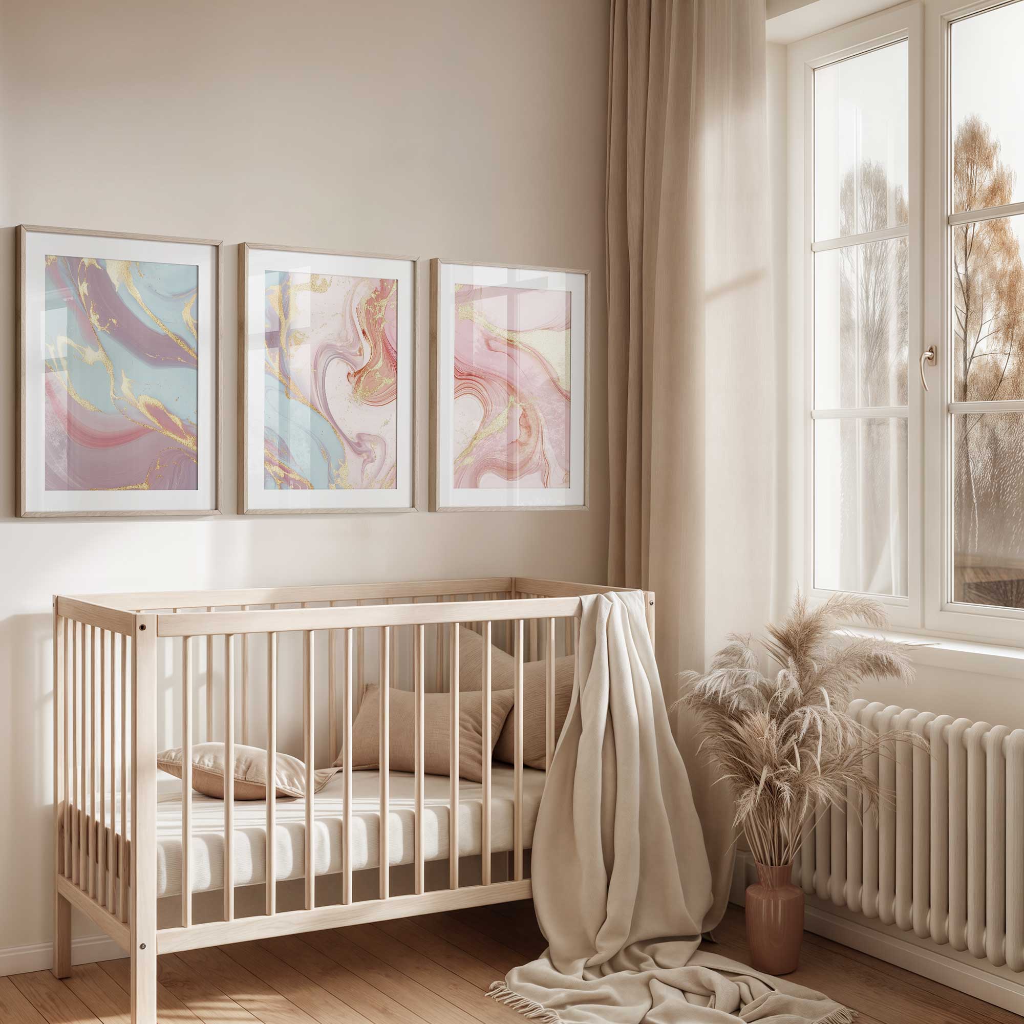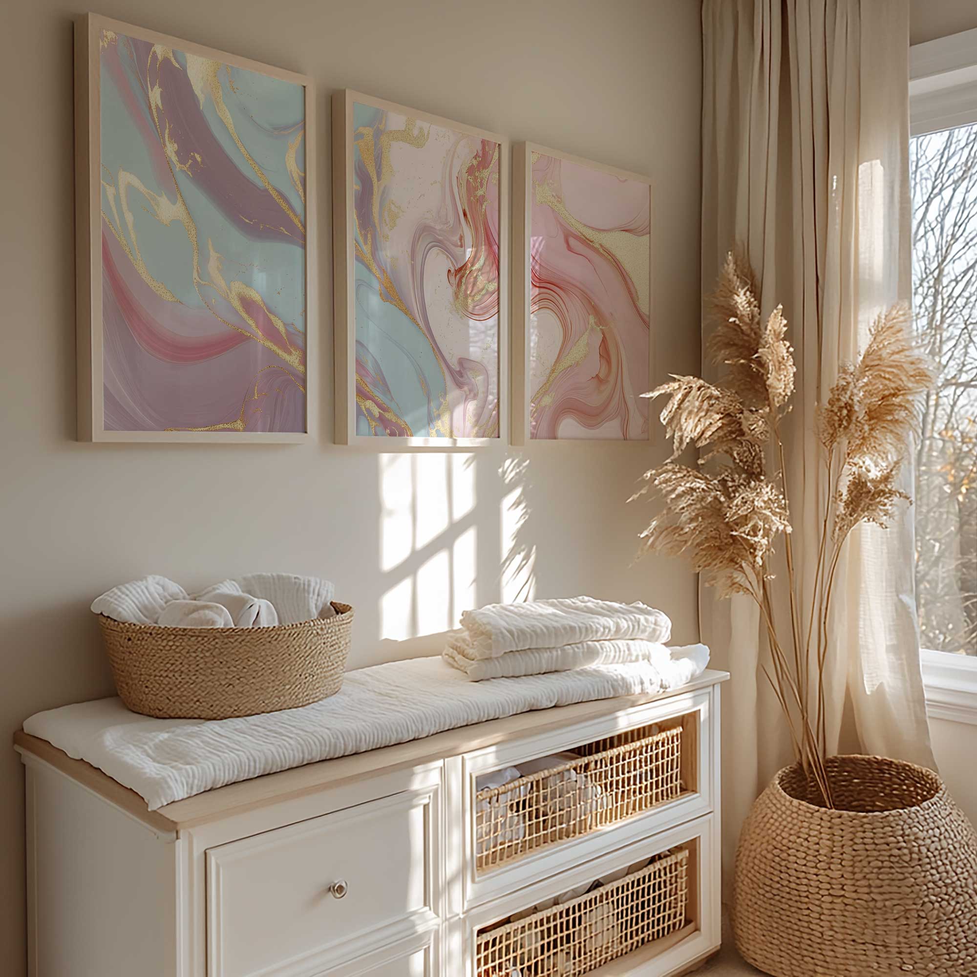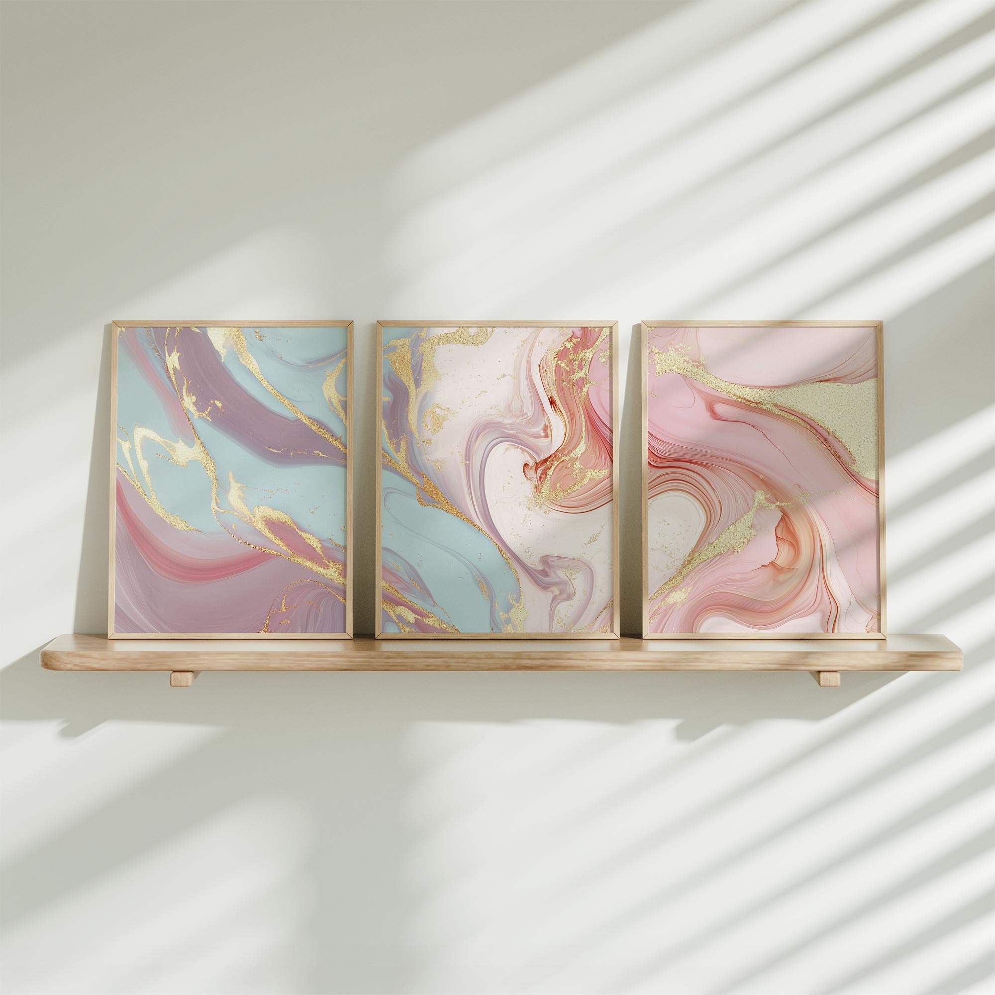 Terug naar collectie / Kinderkamer posters / Speelse Marmeren Swirls in Roze, Blauw en Goud