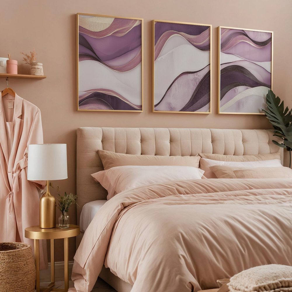 Speelse Paarse Beweging – Moderne Abstracte Wanddecoratie