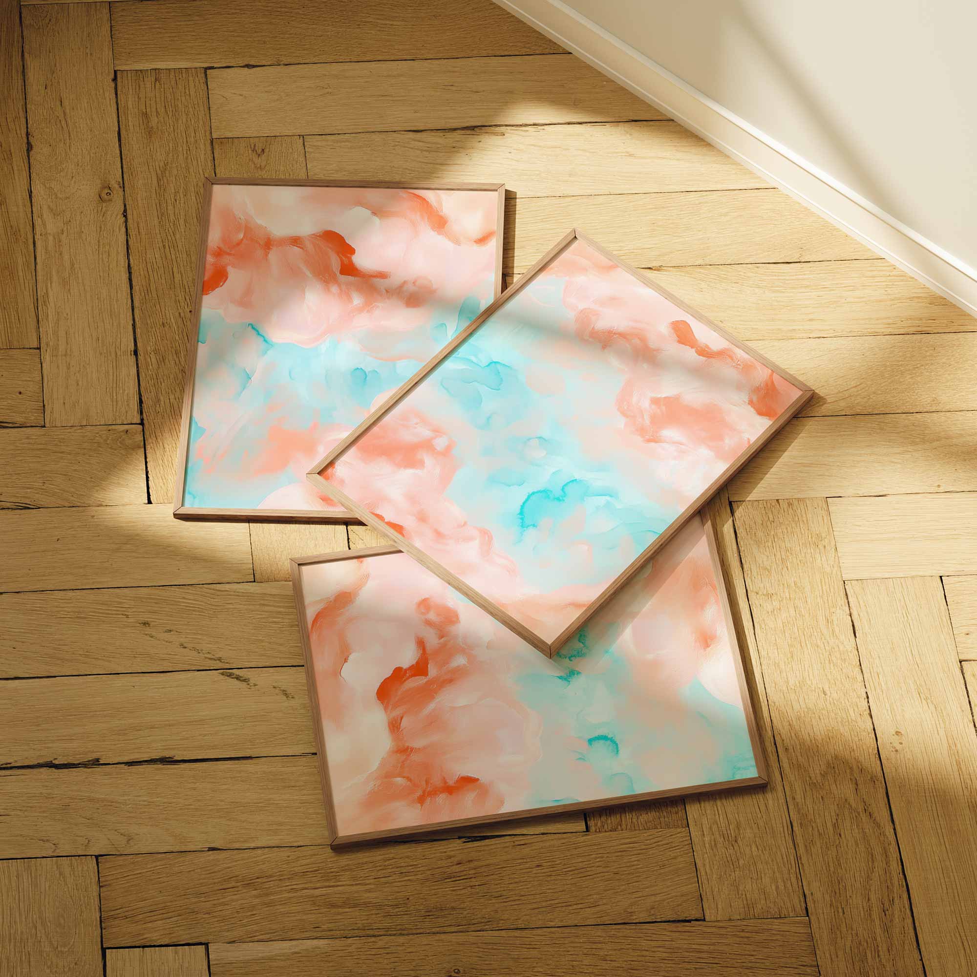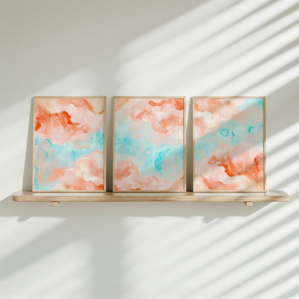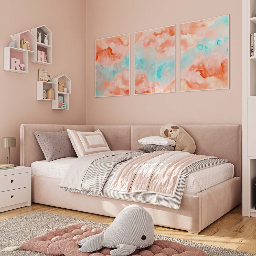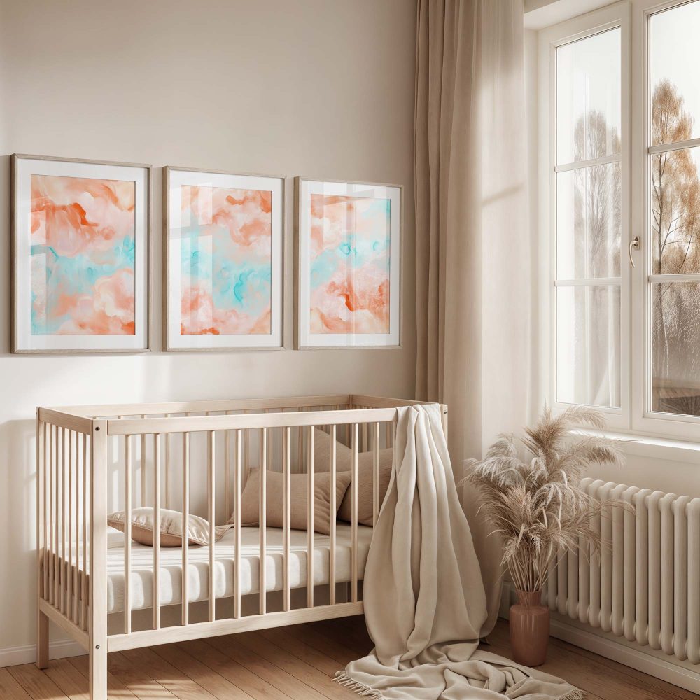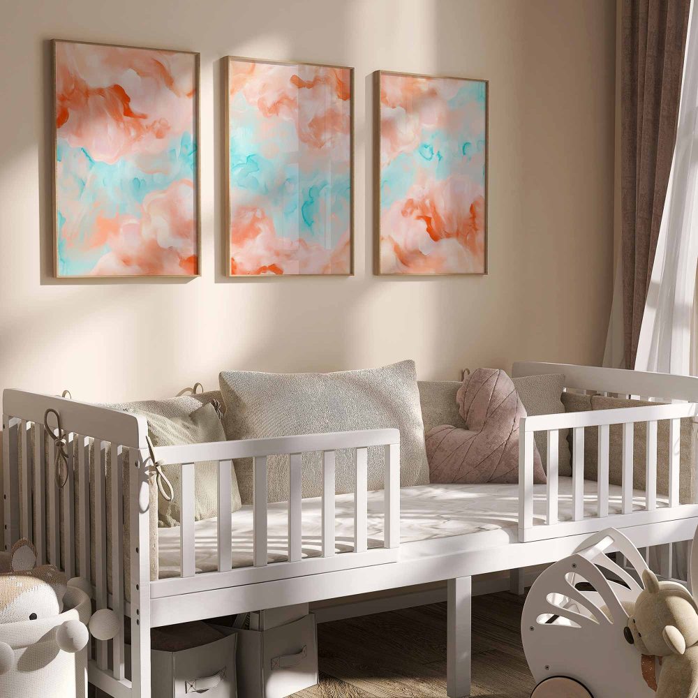 Terug naar collectie / Kinderkamer posters / Speelse Pastel Watercolor Wanddecoratie in Roze en Blauw