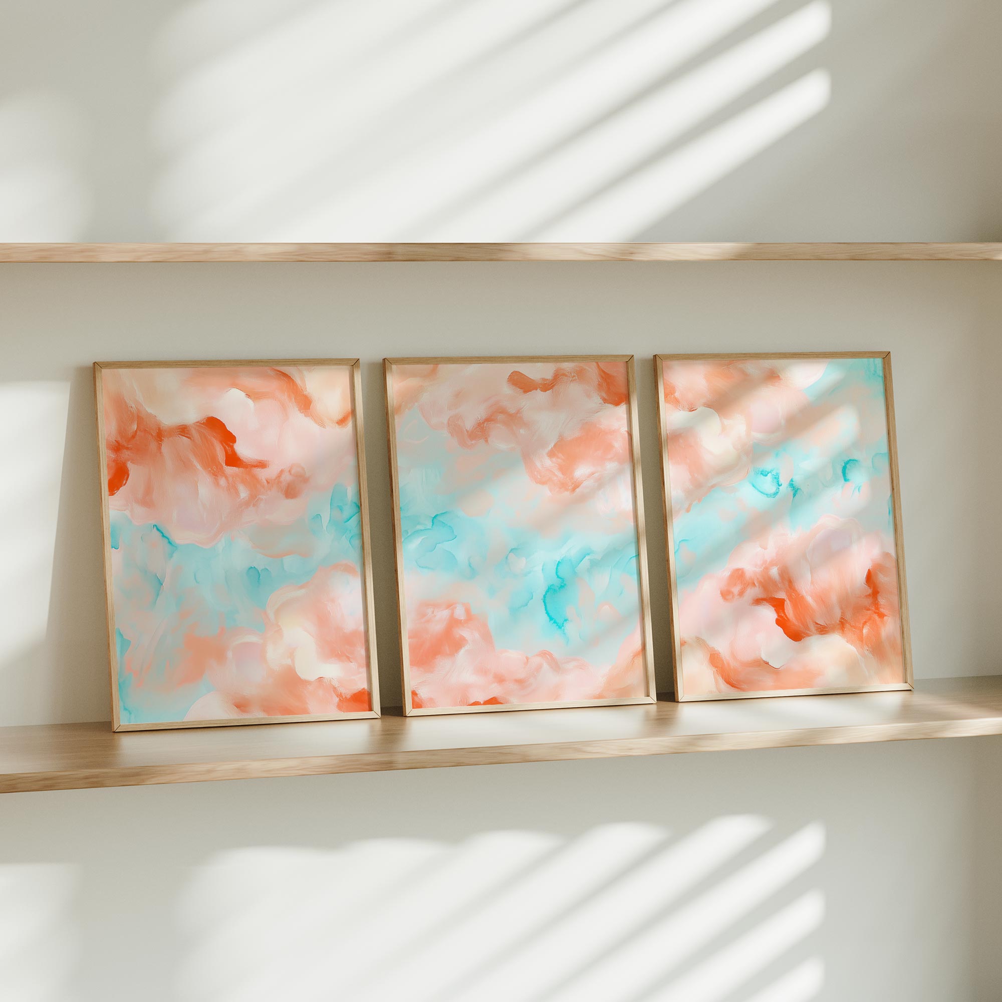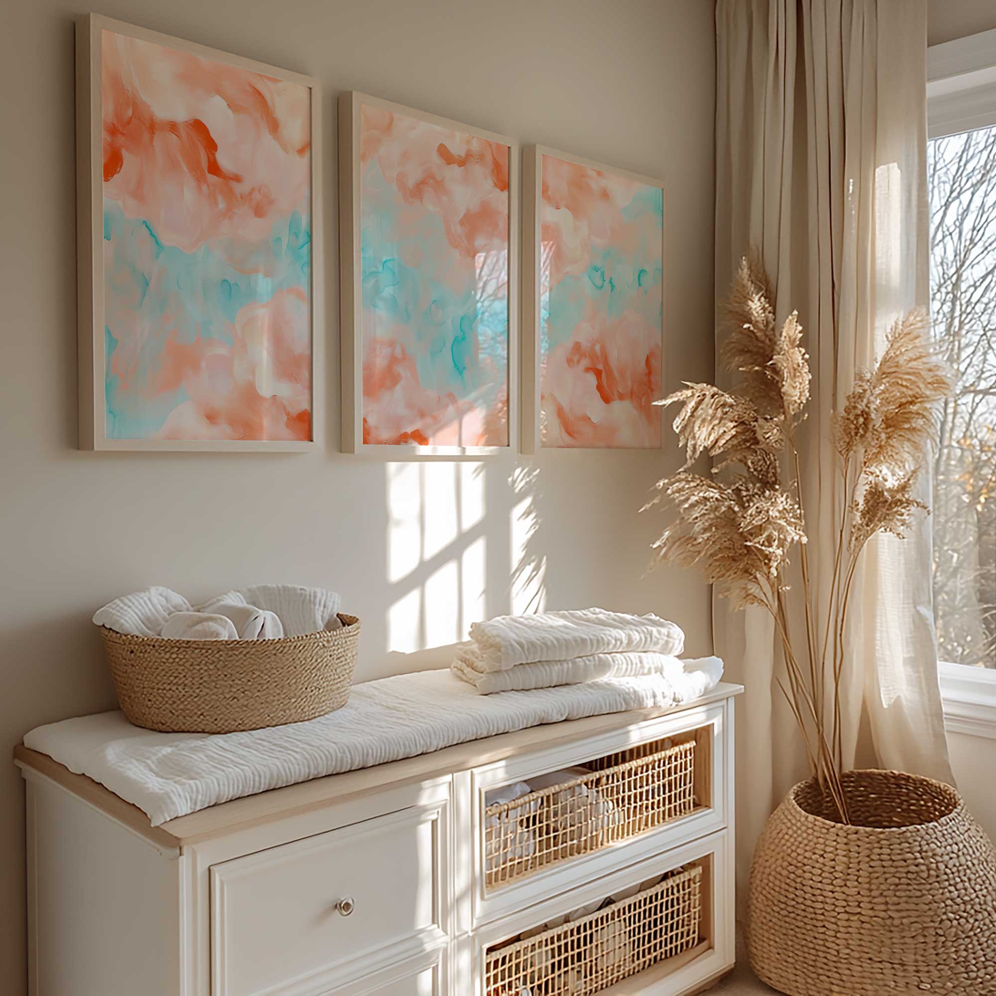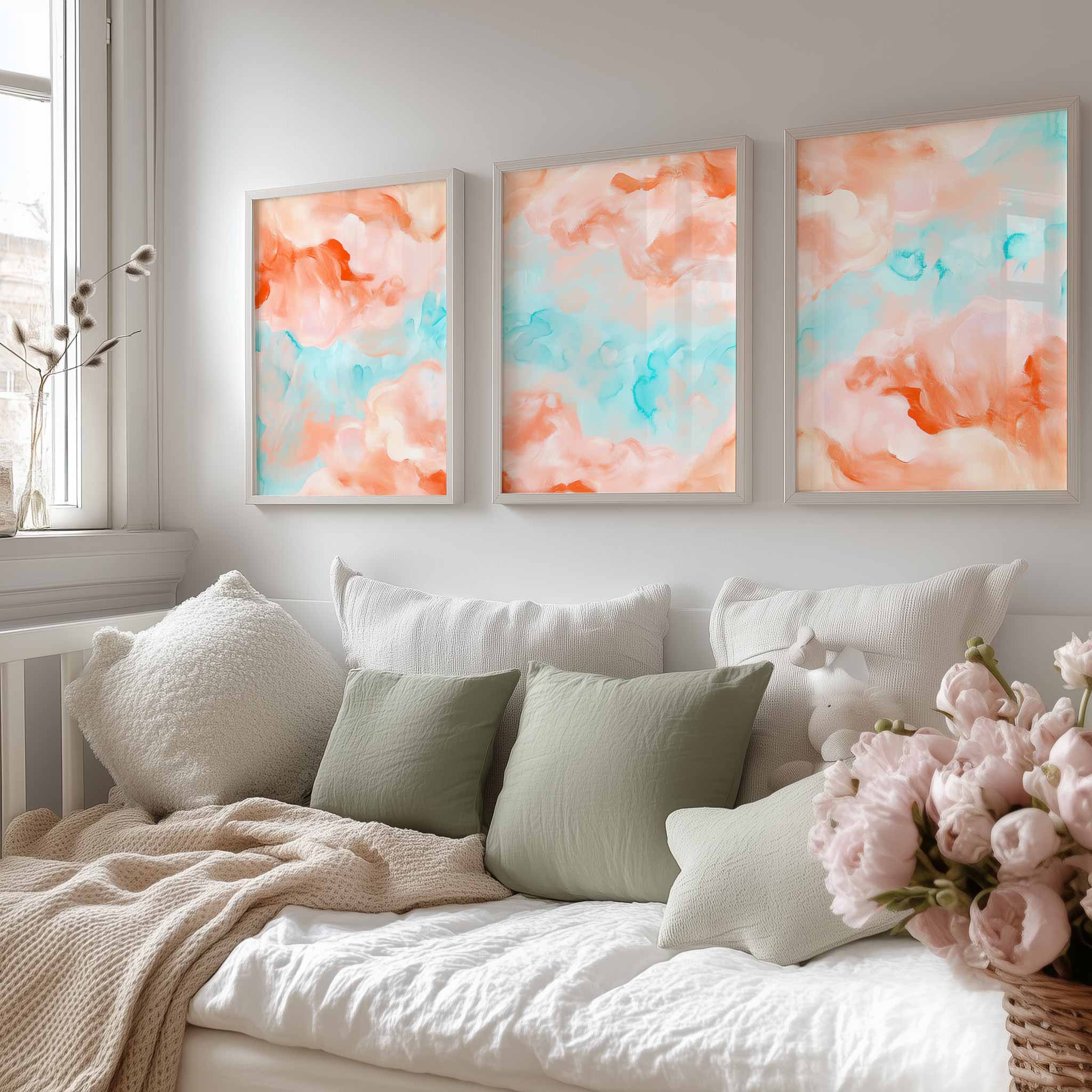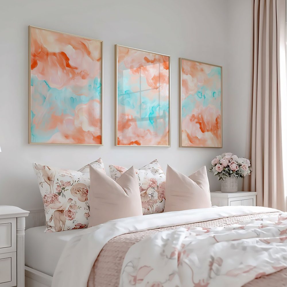 Terug naar collectie / Kinderkamer posters / Speelse Pastel Watercolor Wanddecoratie in Roze en Blauw