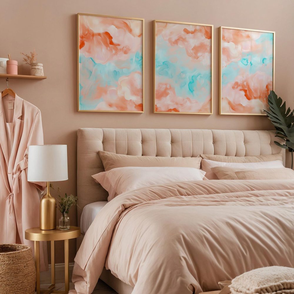 Speelse Pastel Watercolor Wanddecoratie in Roze en Blauw