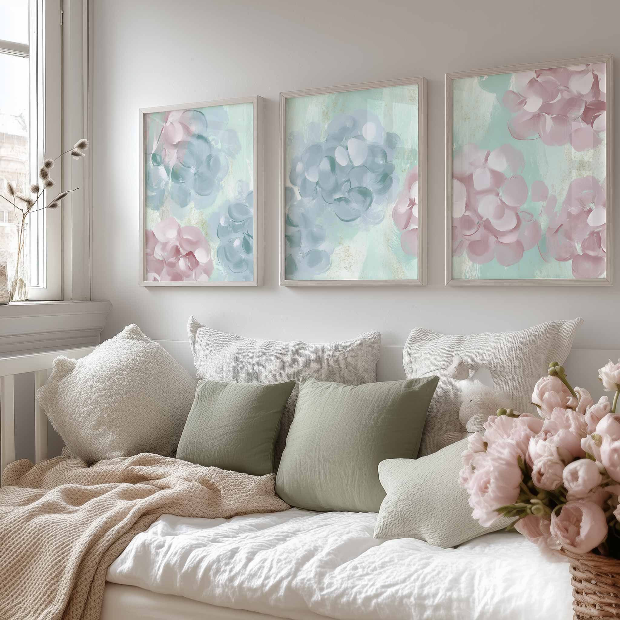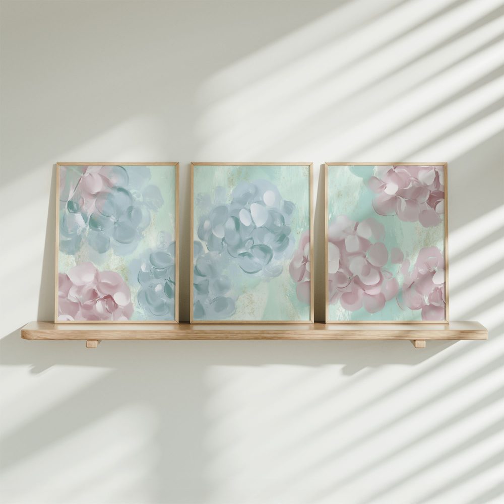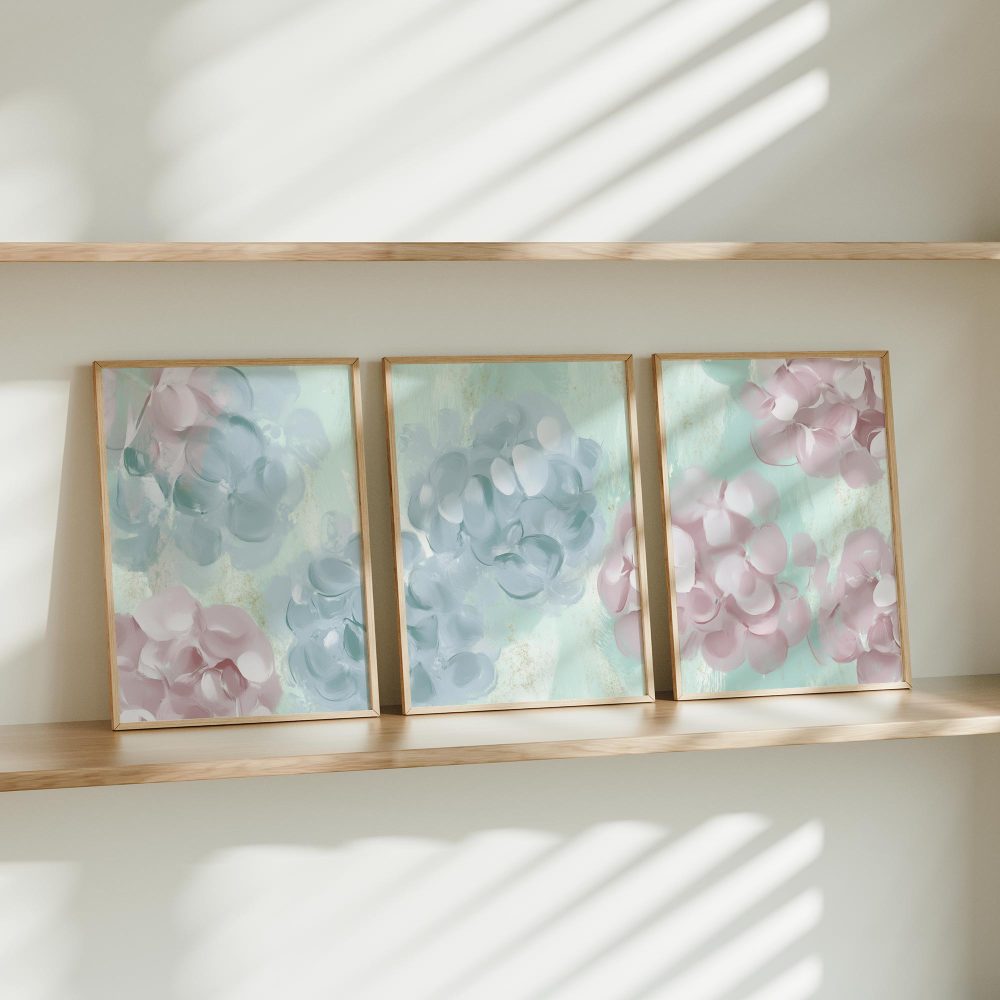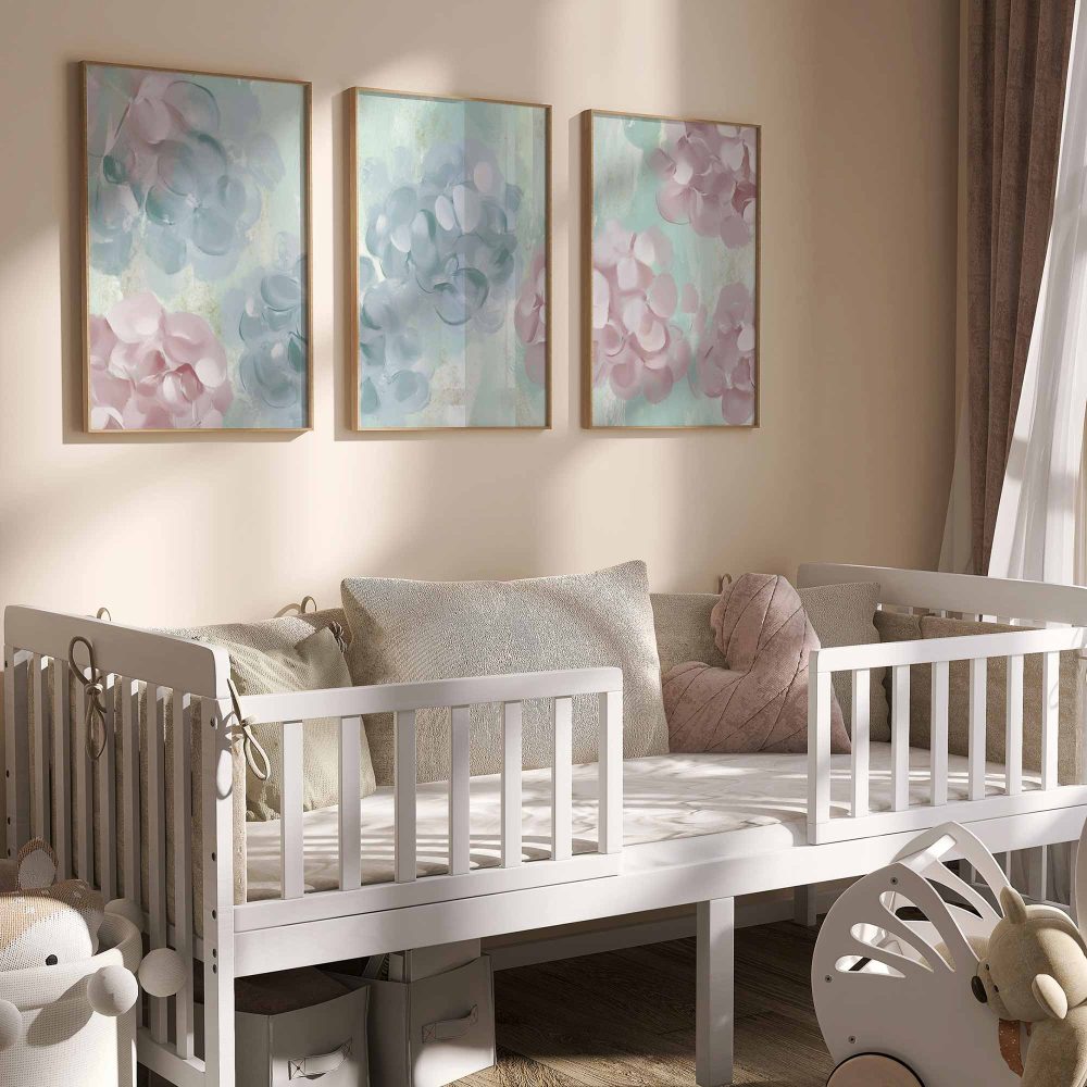 Terug naar collectie / Kinderkamer posters / Bloemen posters / Speelse Pink & Blauwe Bloemen – Vrolijke Wanddecoratie