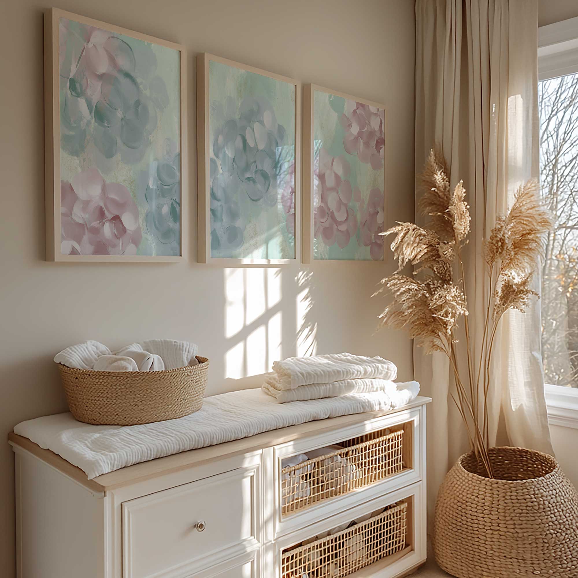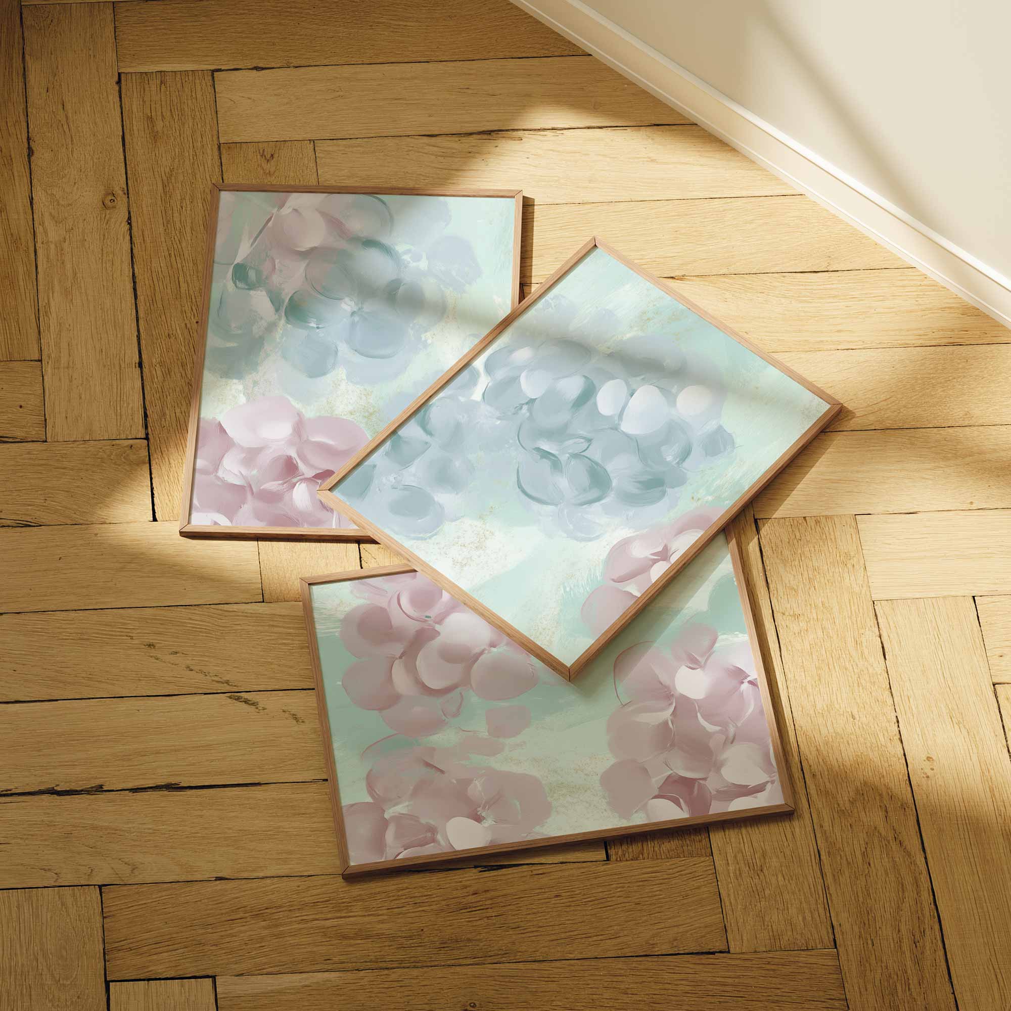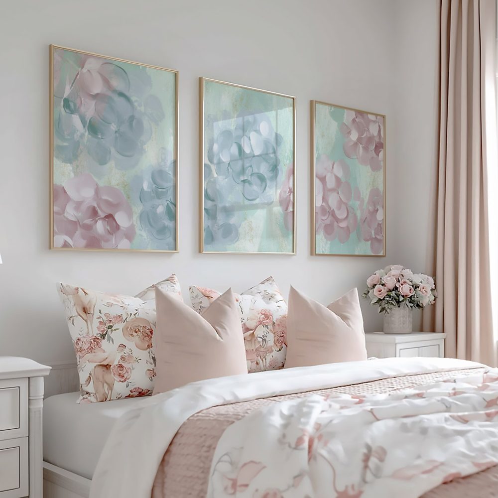 Speelse Pink & Blauwe Bloemen – Vrolijke Wanddecoratie