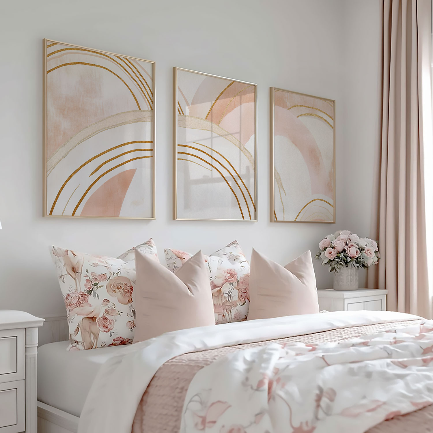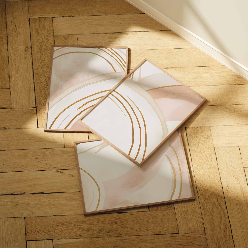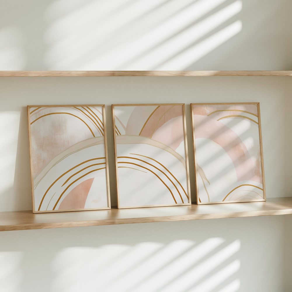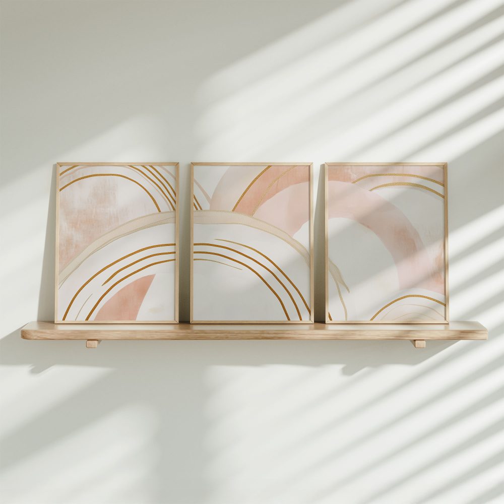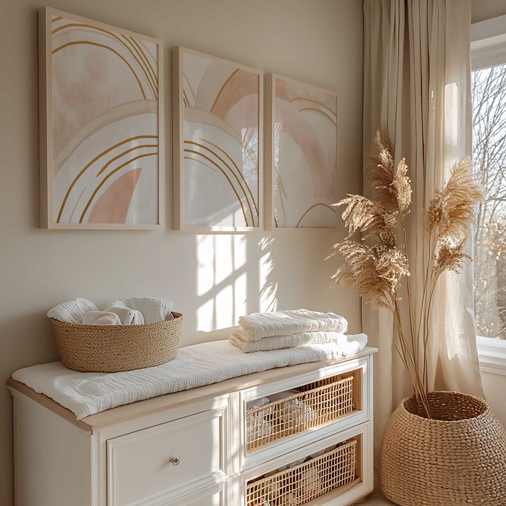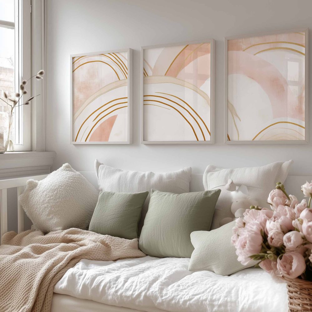 Terug naar collectie / Kinderkamer posters / Speelse Pink & Wit Abstracte Wanddecoratie met Diepte