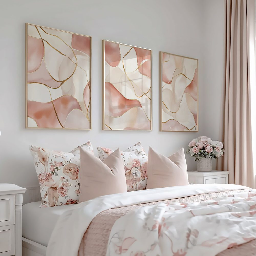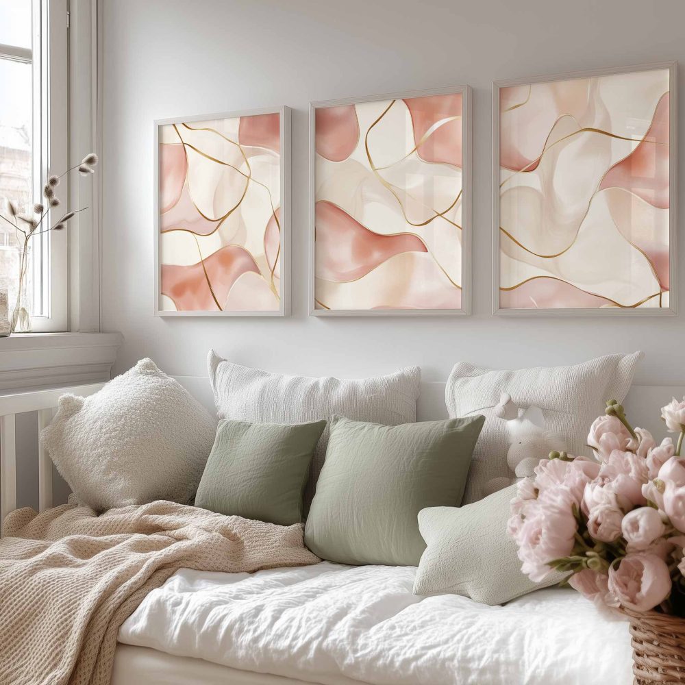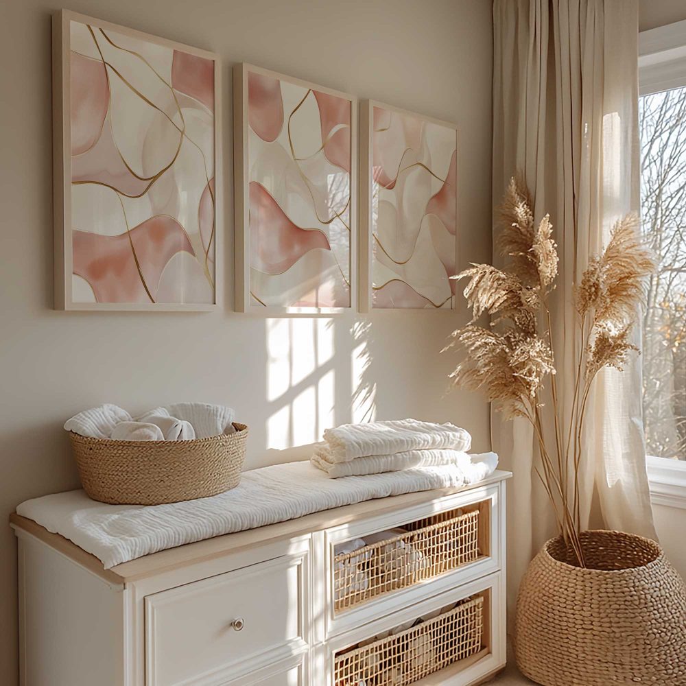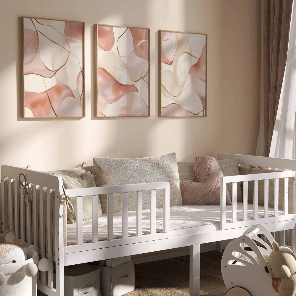 Terug naar collectie / Kinderkamer posters / Speelse Roze Golfen: Elegante Abstracte Wanddecoratie