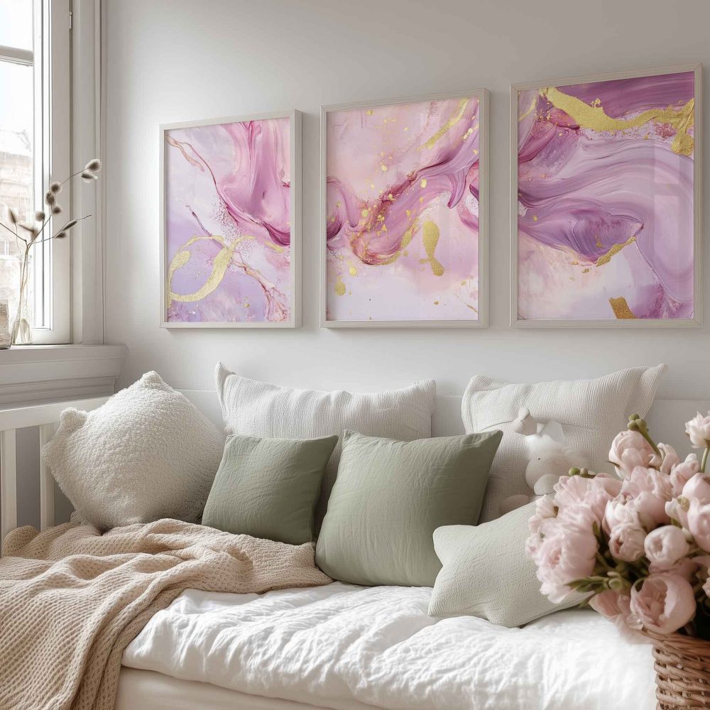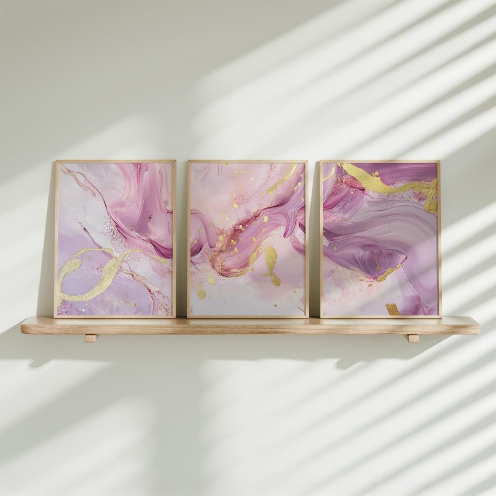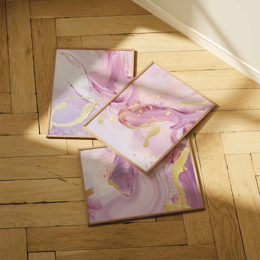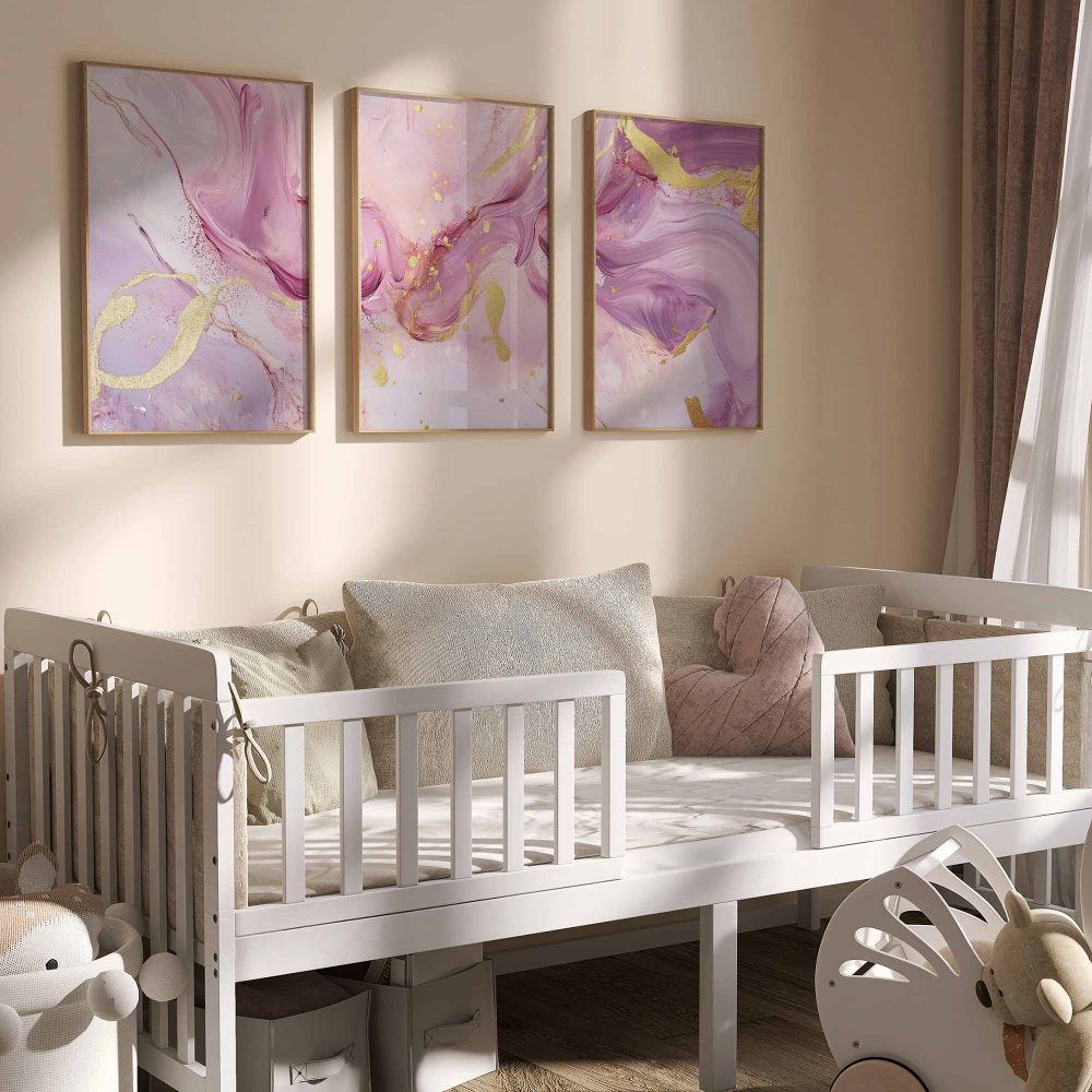 Terug naar collectie / Kinderkamer posters / Speelse Roze & Gouden Abstracte Wanddecoratie met Luxe Accenten