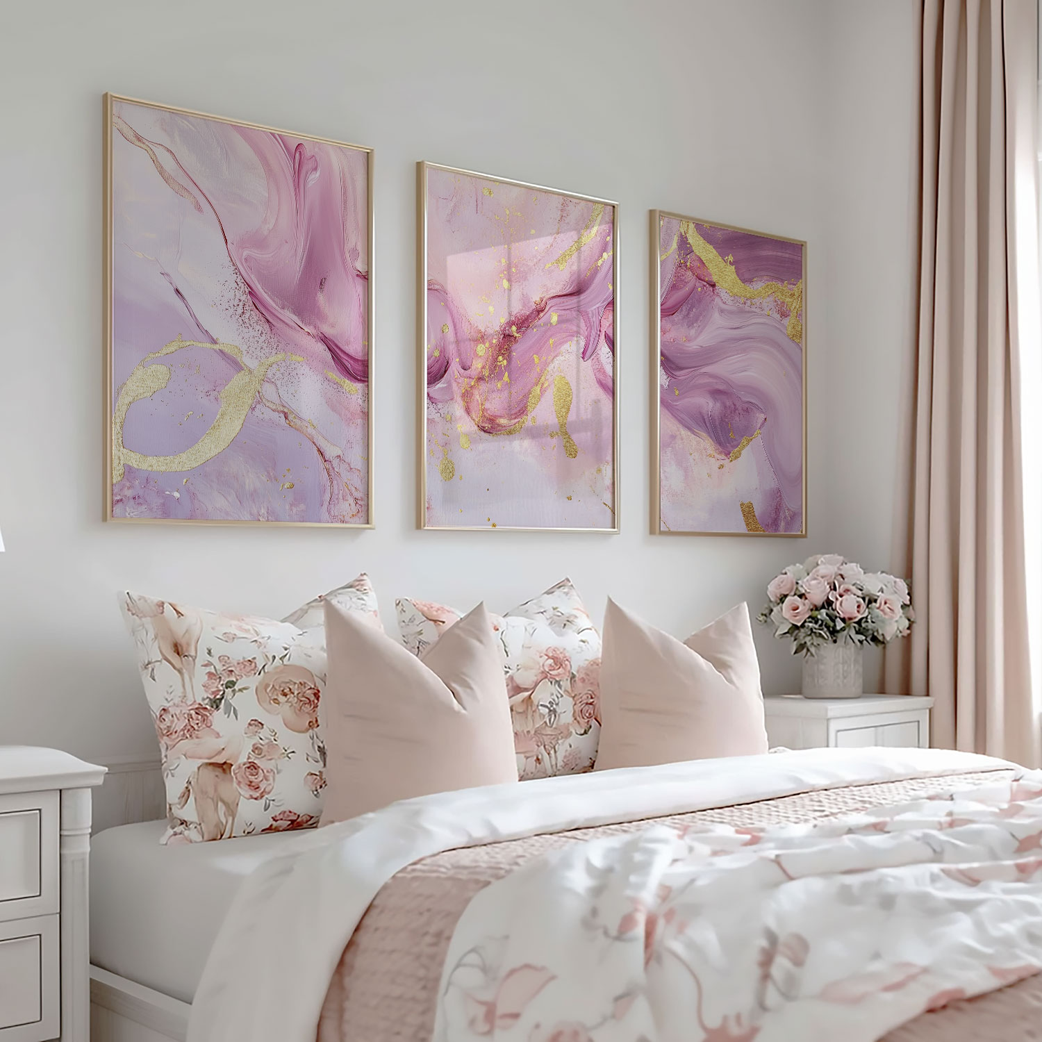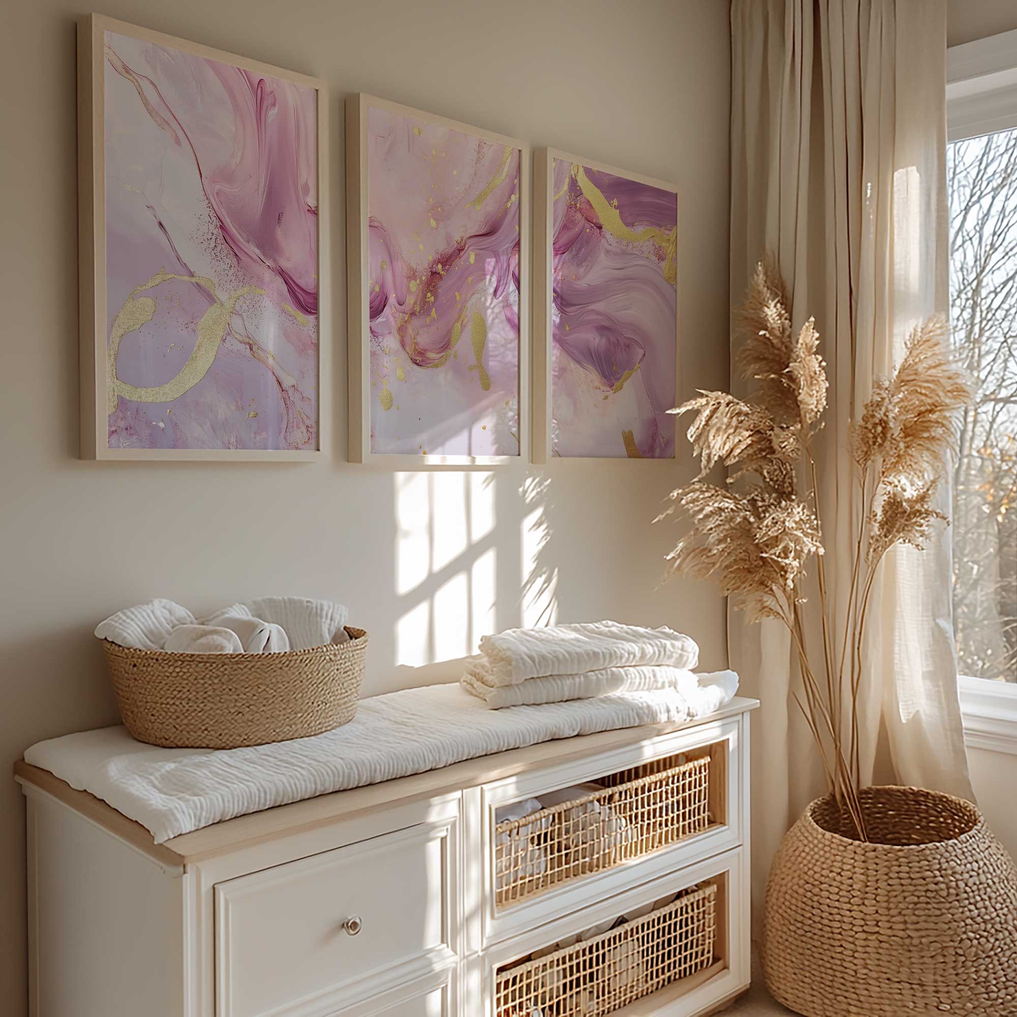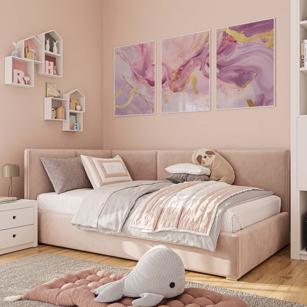 Terug naar collectie / Kinderkamer posters / Speelse Roze & Gouden Abstracte Wanddecoratie met Luxe Accenten