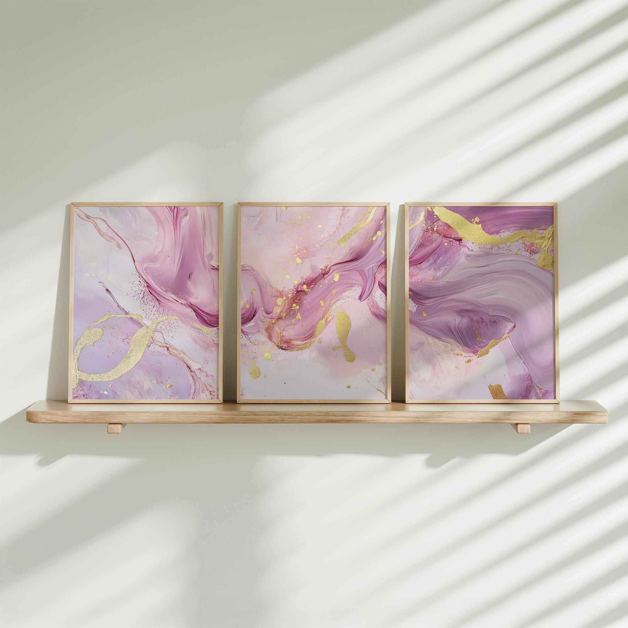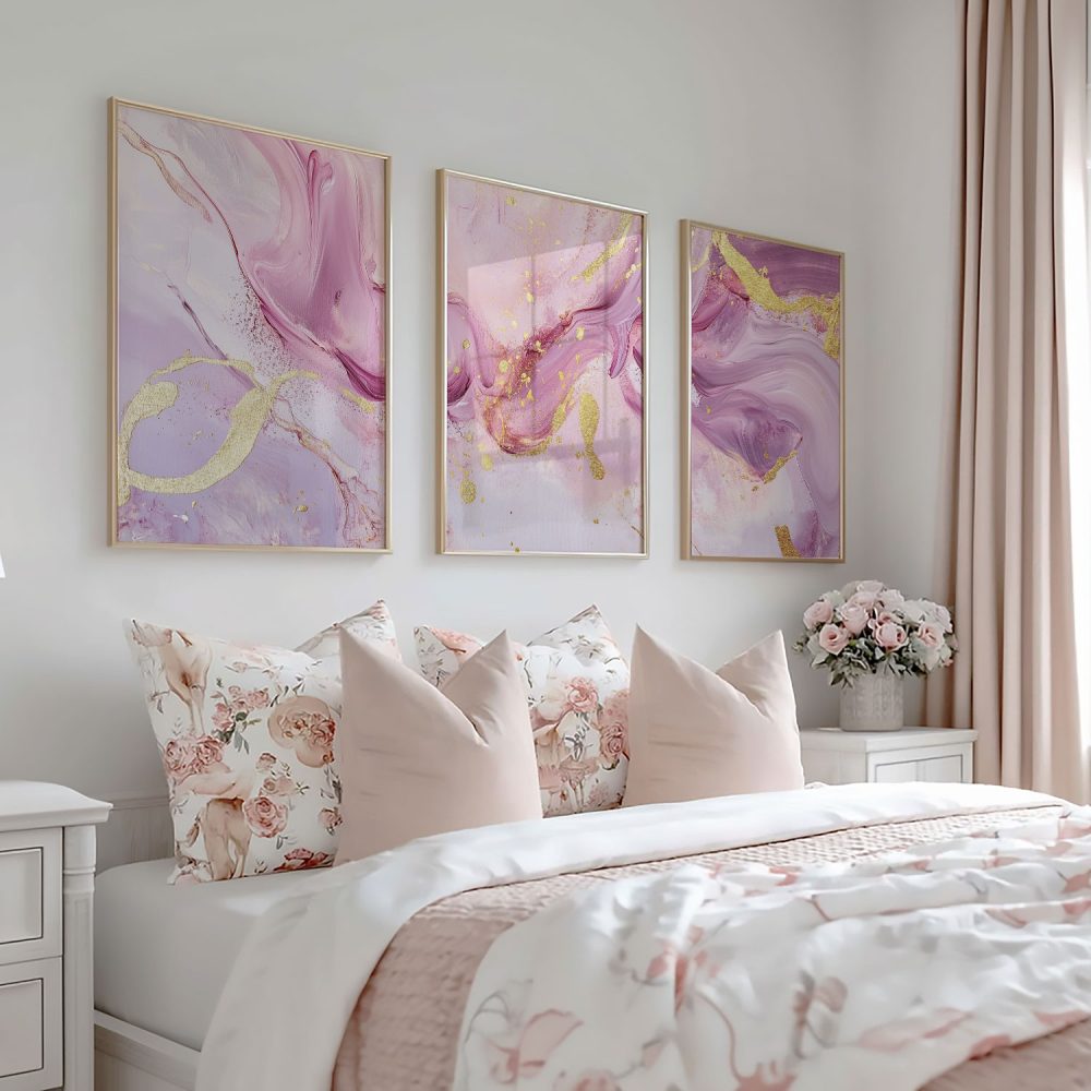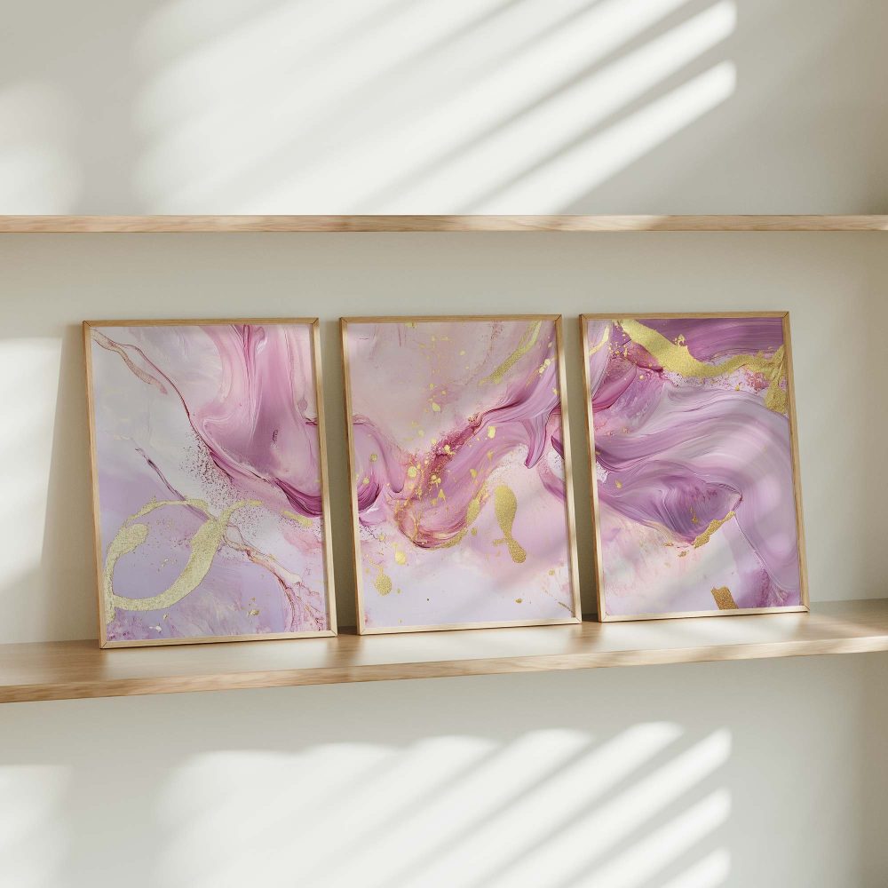 Speelse Roze & Gouden Abstracte Wanddecoratie met Luxe Accenten