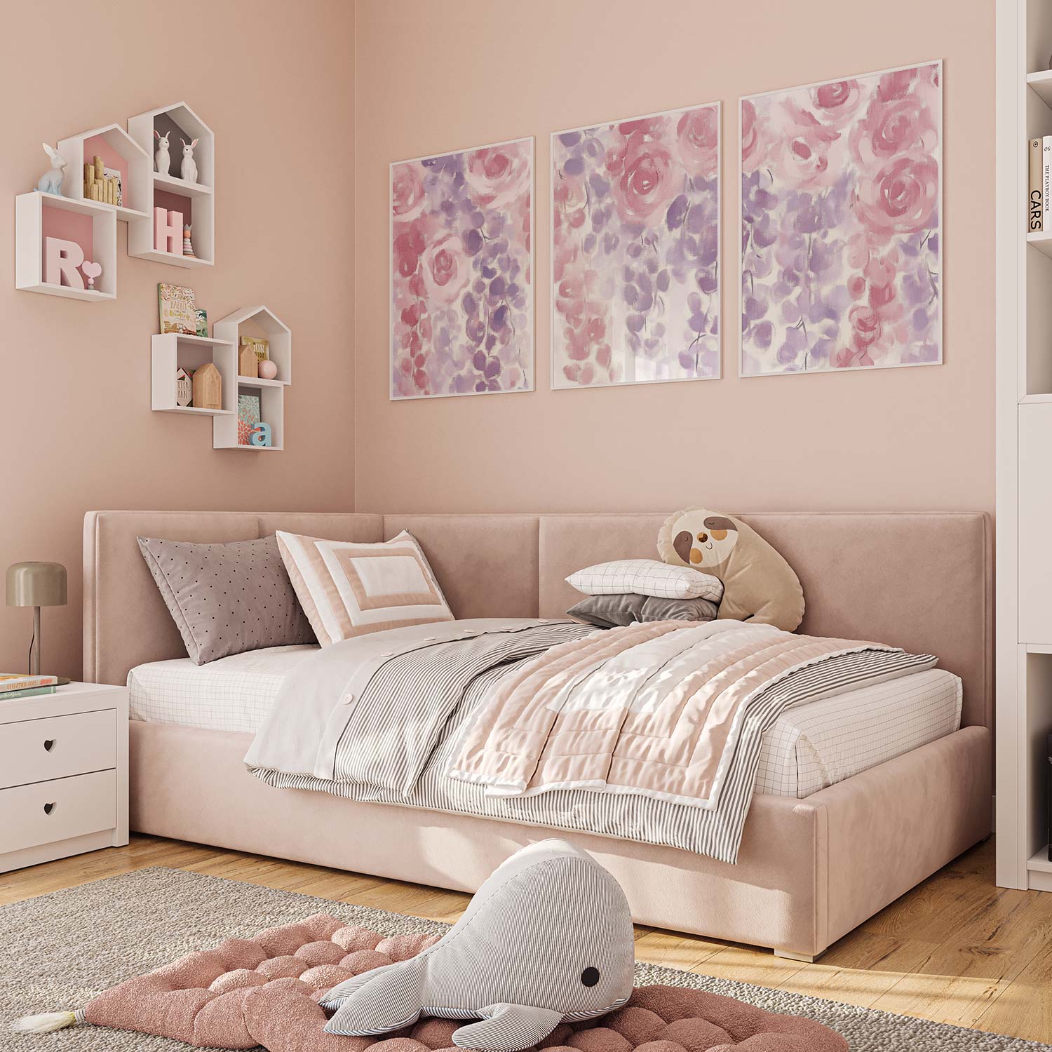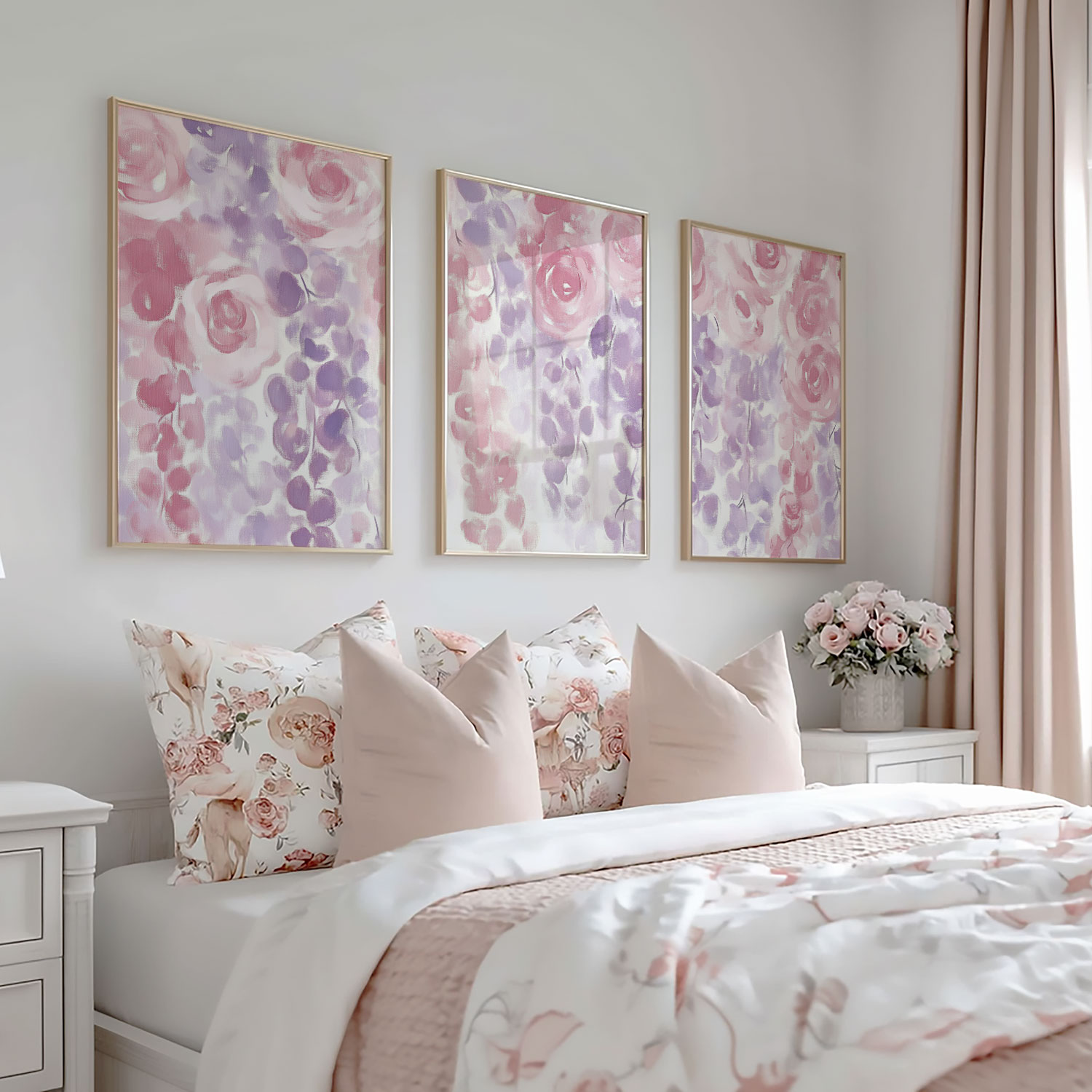 Terug naar collectie / Kinderkamer posters / Bloemen posters / Speelse Roze & Paarse Bloemen – Vrolijke Wanddecoratie