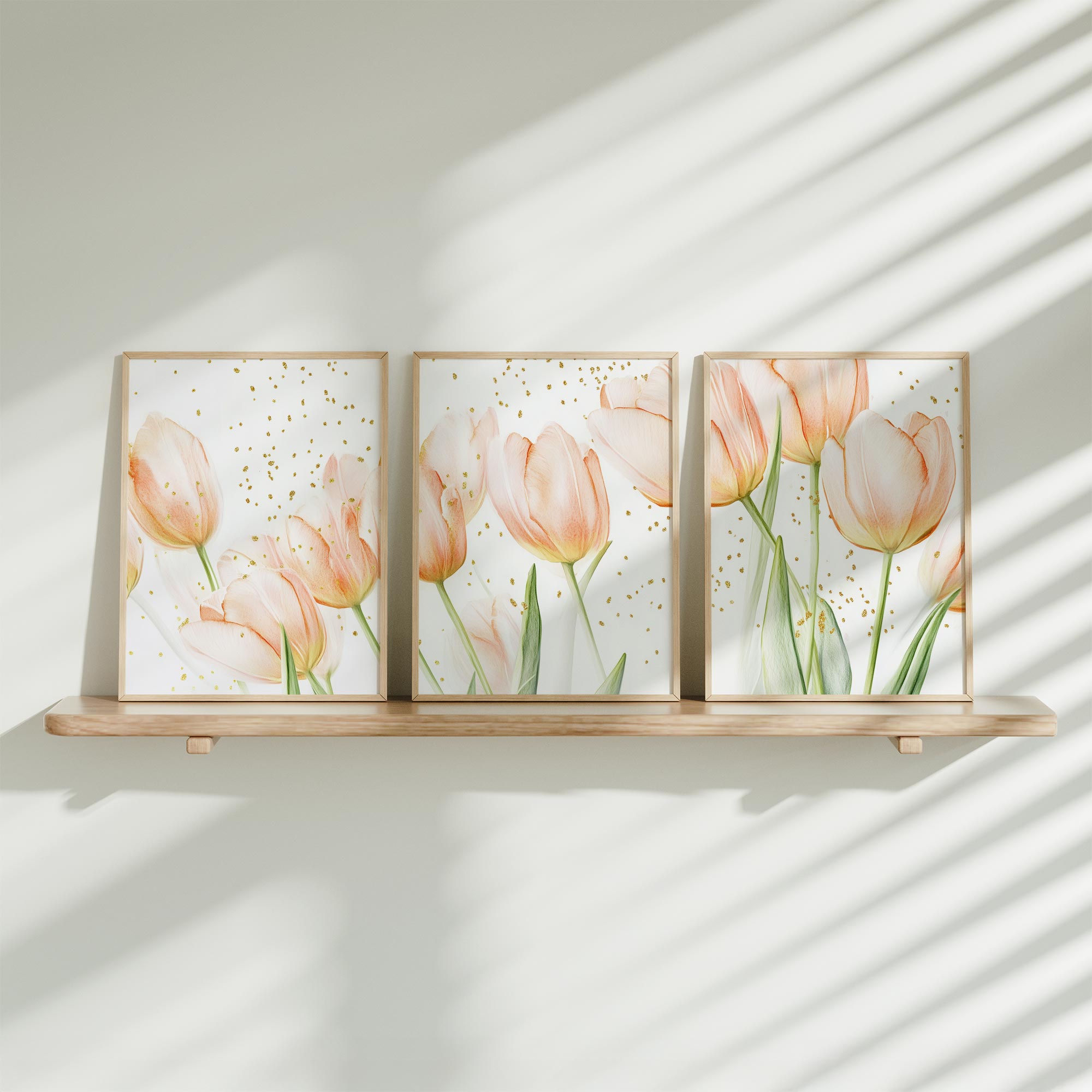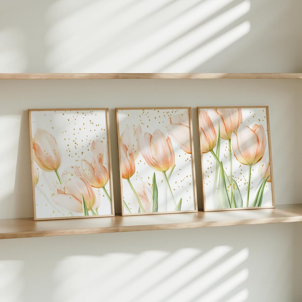 Speelse Roze Tulpen – Frisse Stijlvolle Wanddecoratie