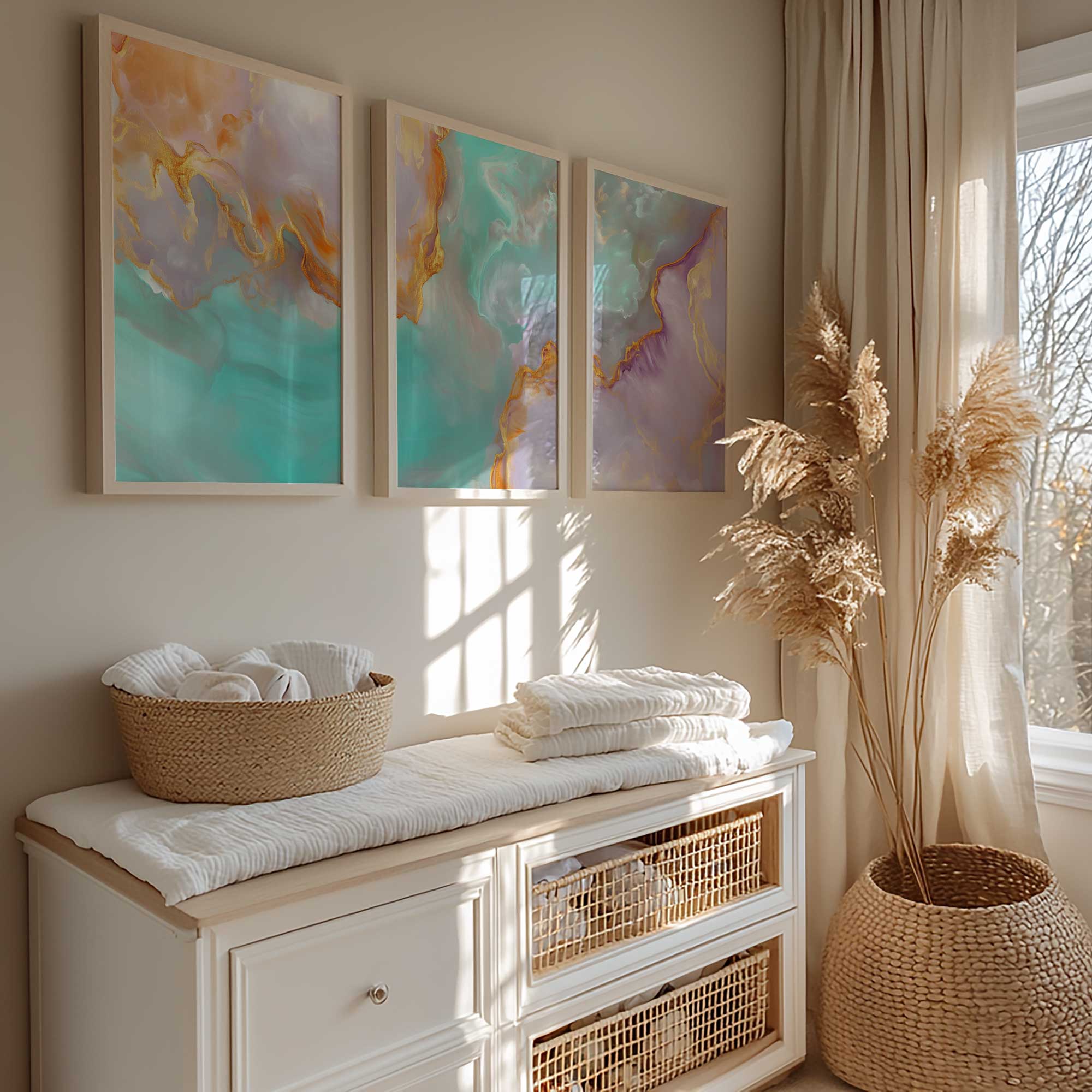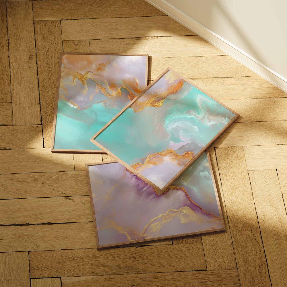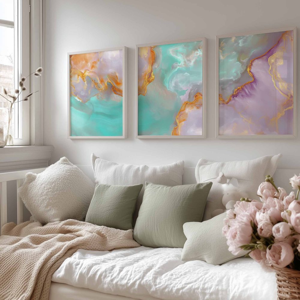 Terug naar collectie / Kinderkamer posters / Speelse Swirls in Levendige Blauw, Oranje & Paars
