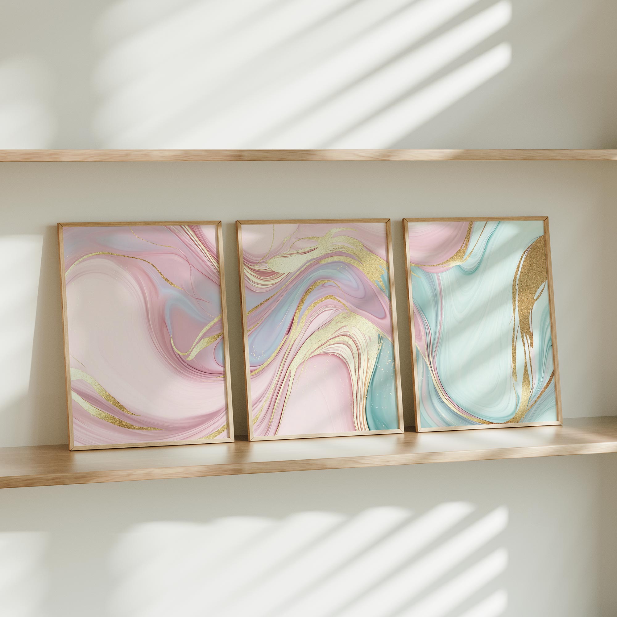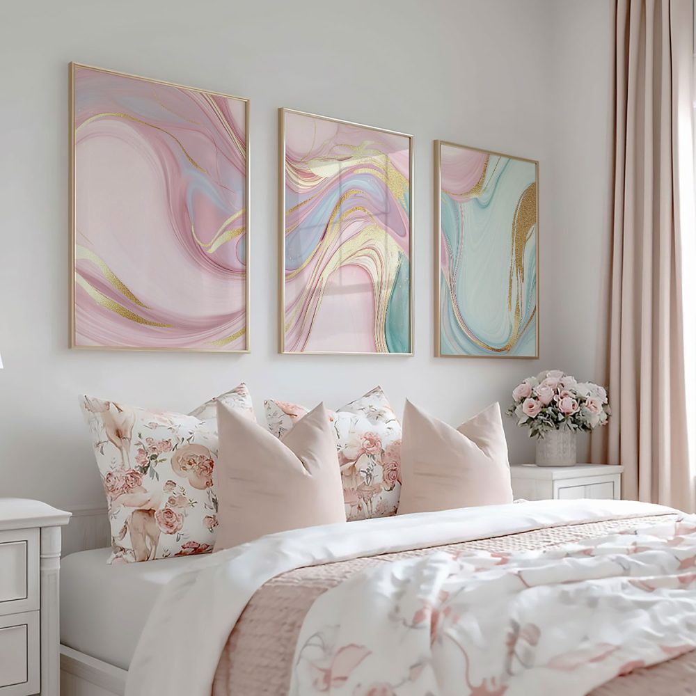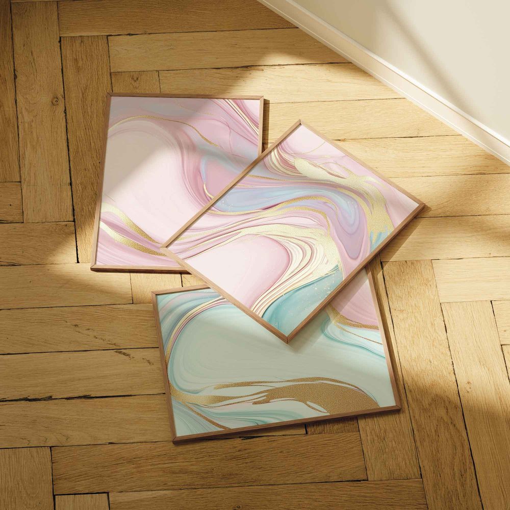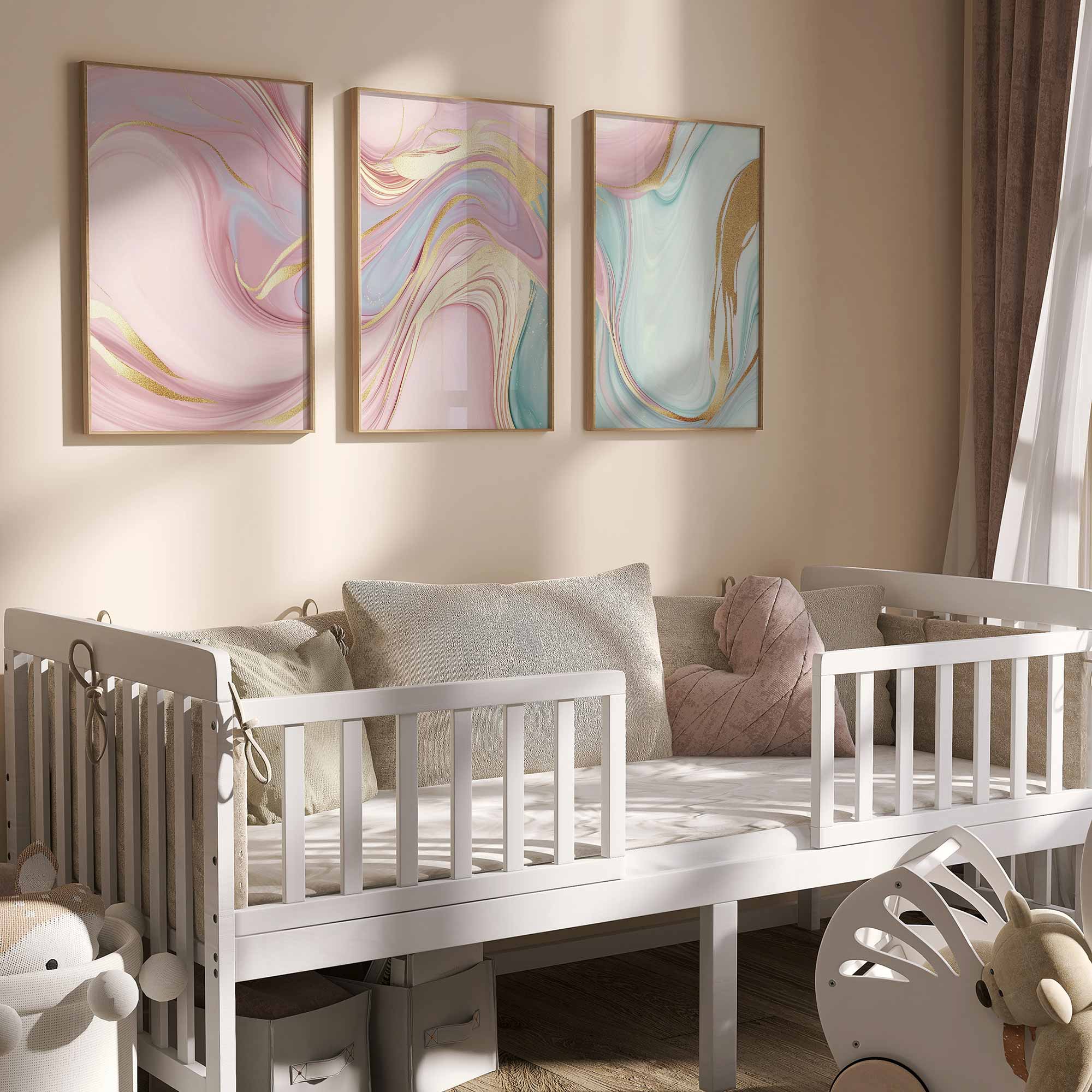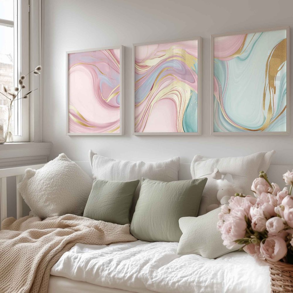 Terug naar collectie / Kinderkamer posters / Speelse Swirls in Roze, Blauw en Groen – Levendige Wanddecoratie