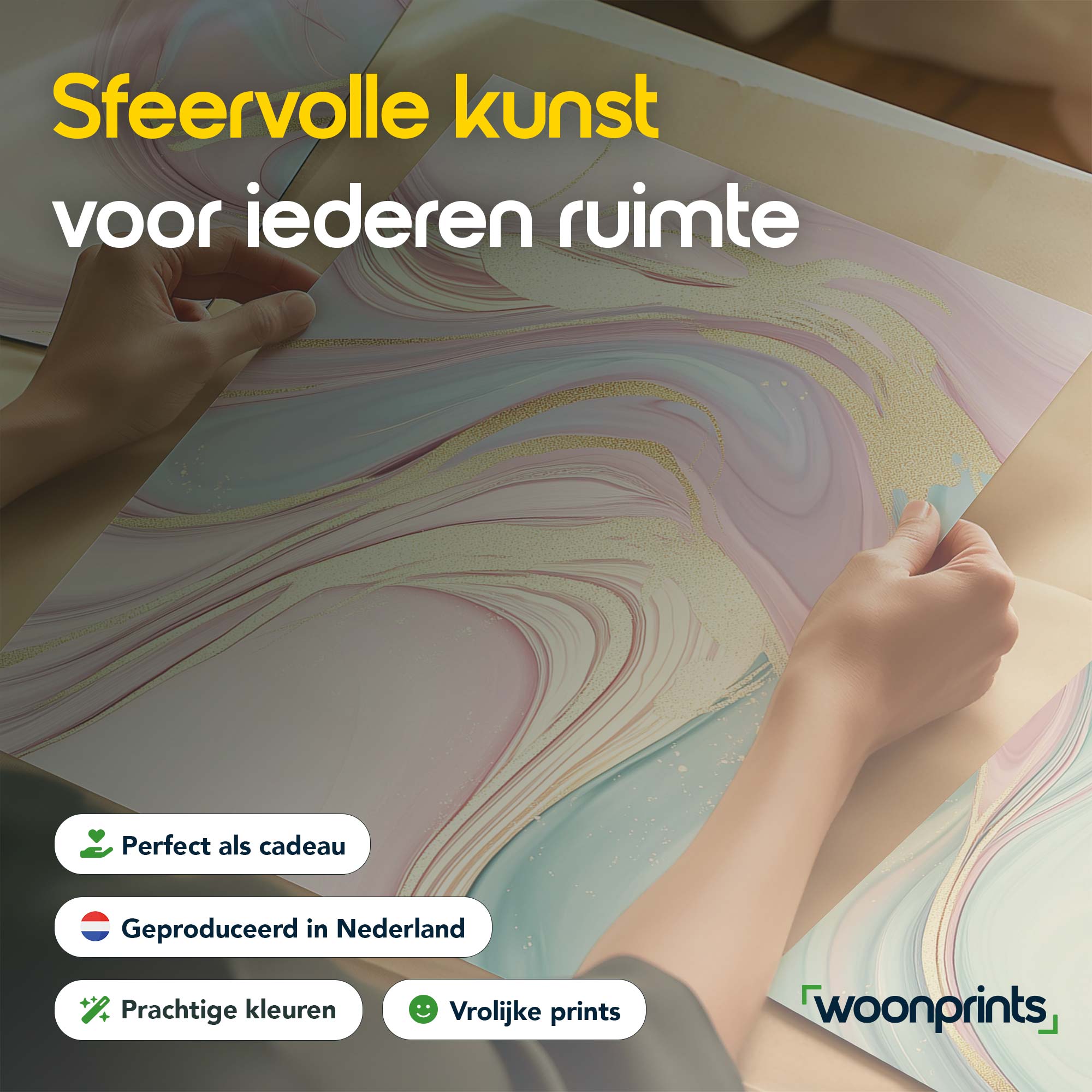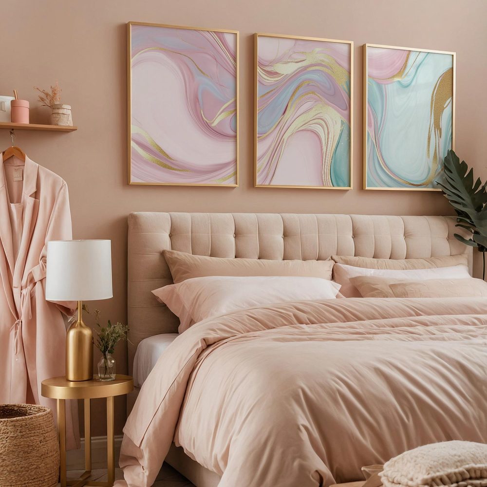 Speelse Swirls in Roze, Blauw en Groen – Levendige Wanddecoratie