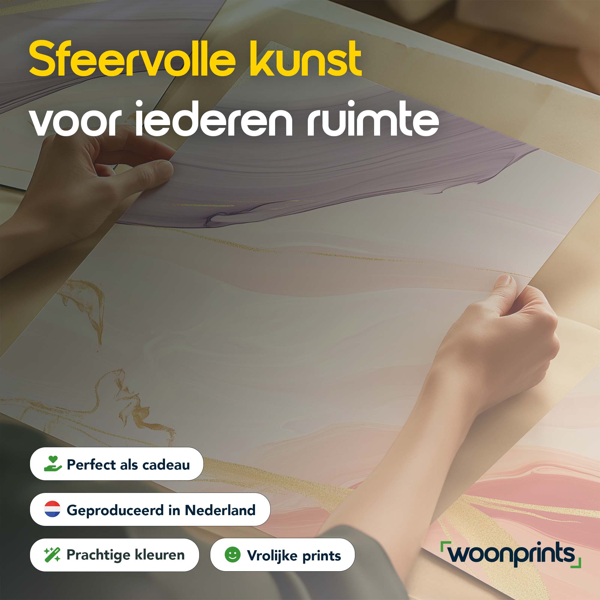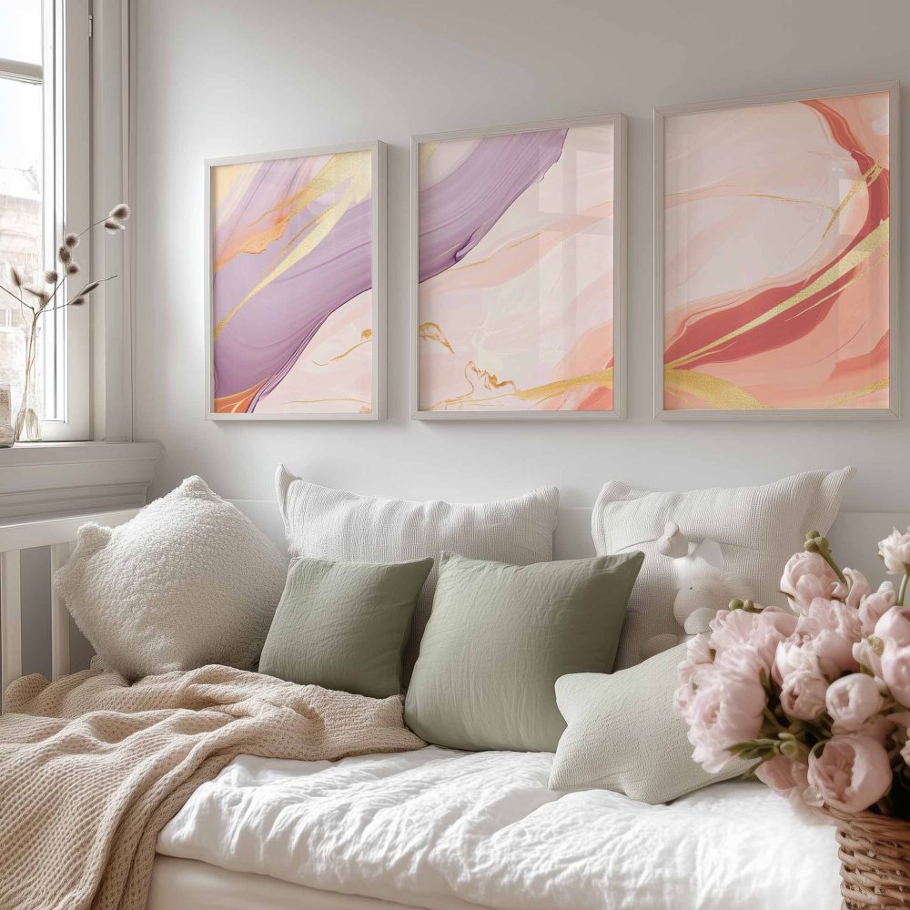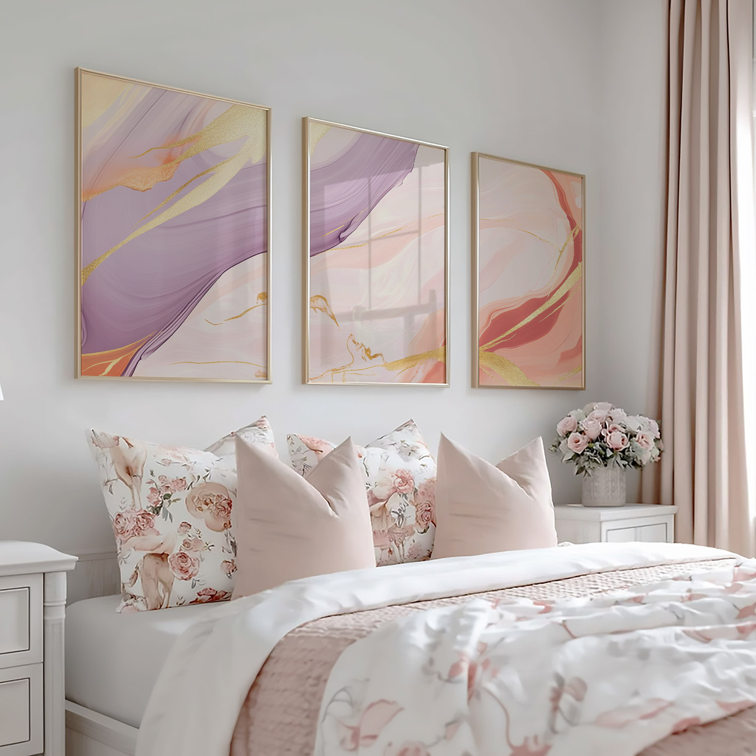 Speelse Swirls in Roze, Paars en Goud – Stijlvolle Wanddecoratie