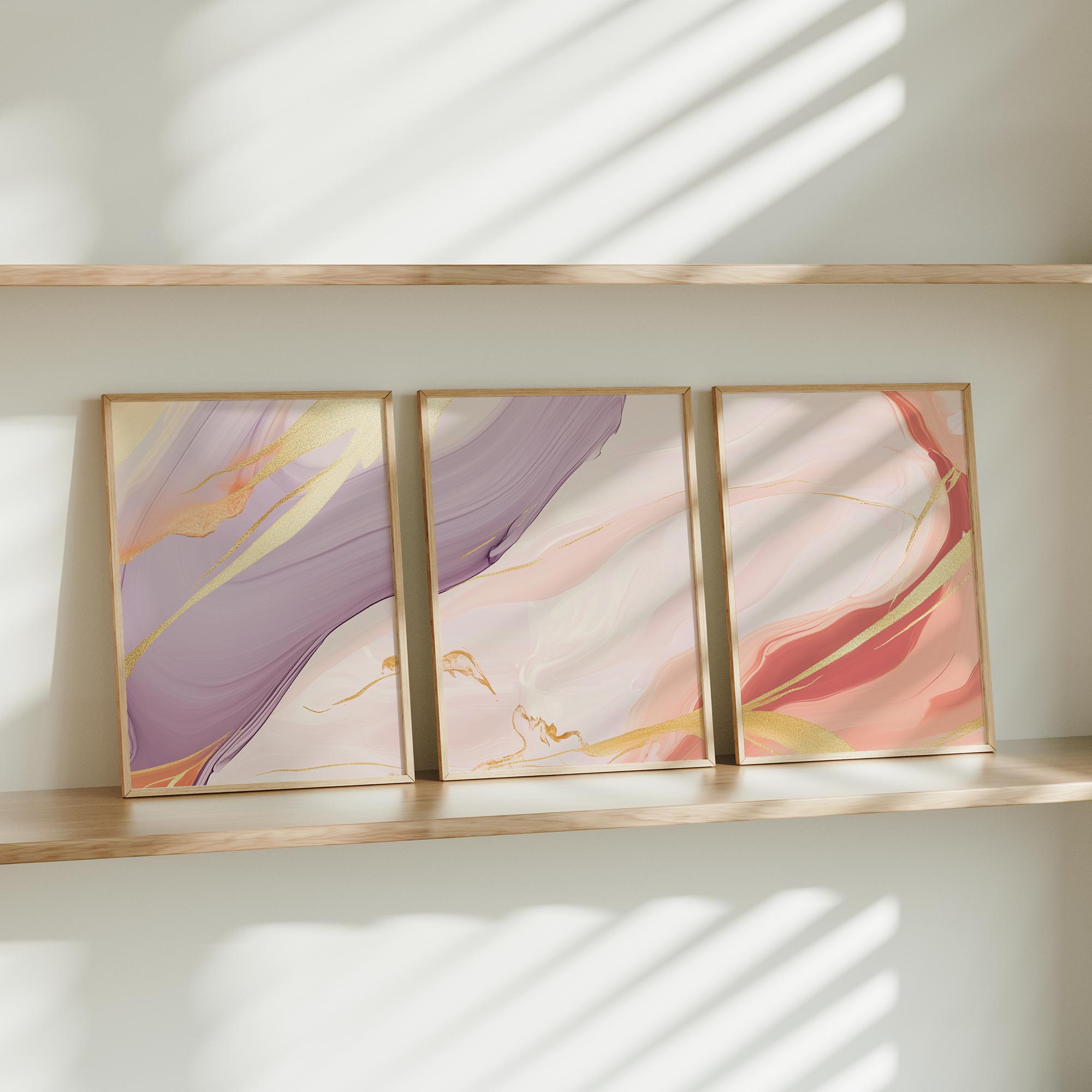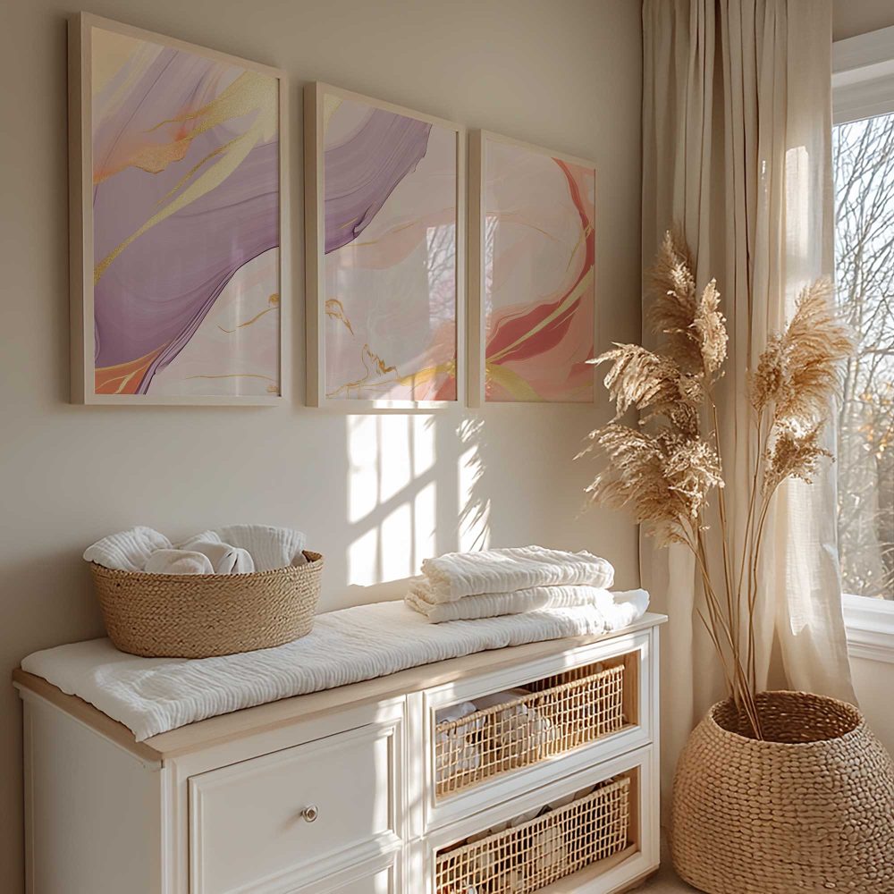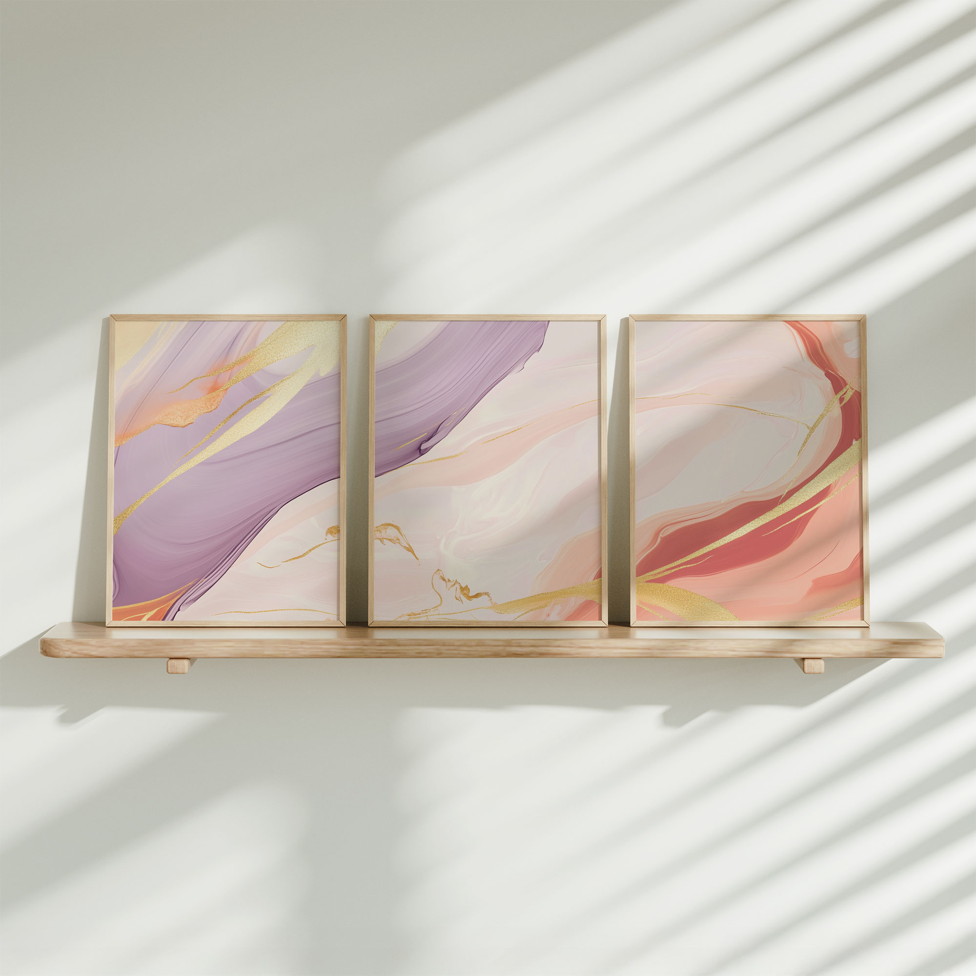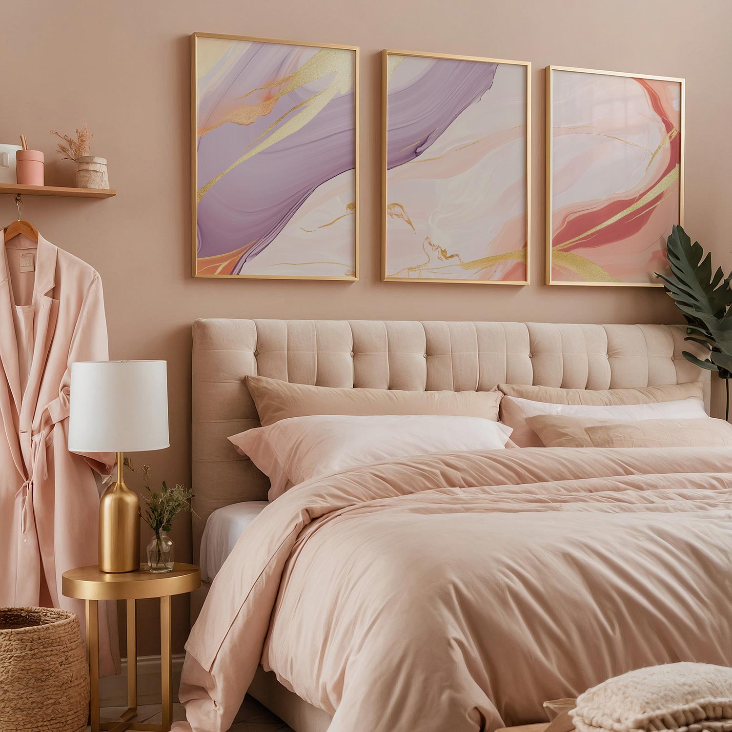 Speelse Swirls in Roze, Paars en Goud – Stijlvolle Wanddecoratie