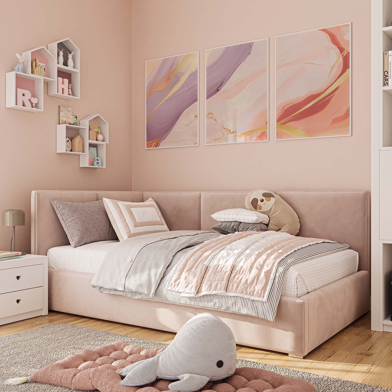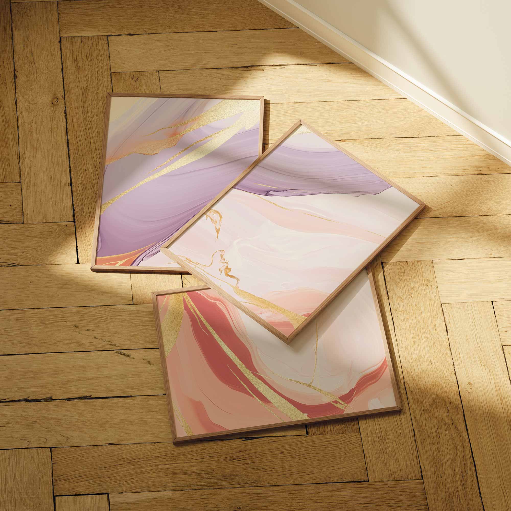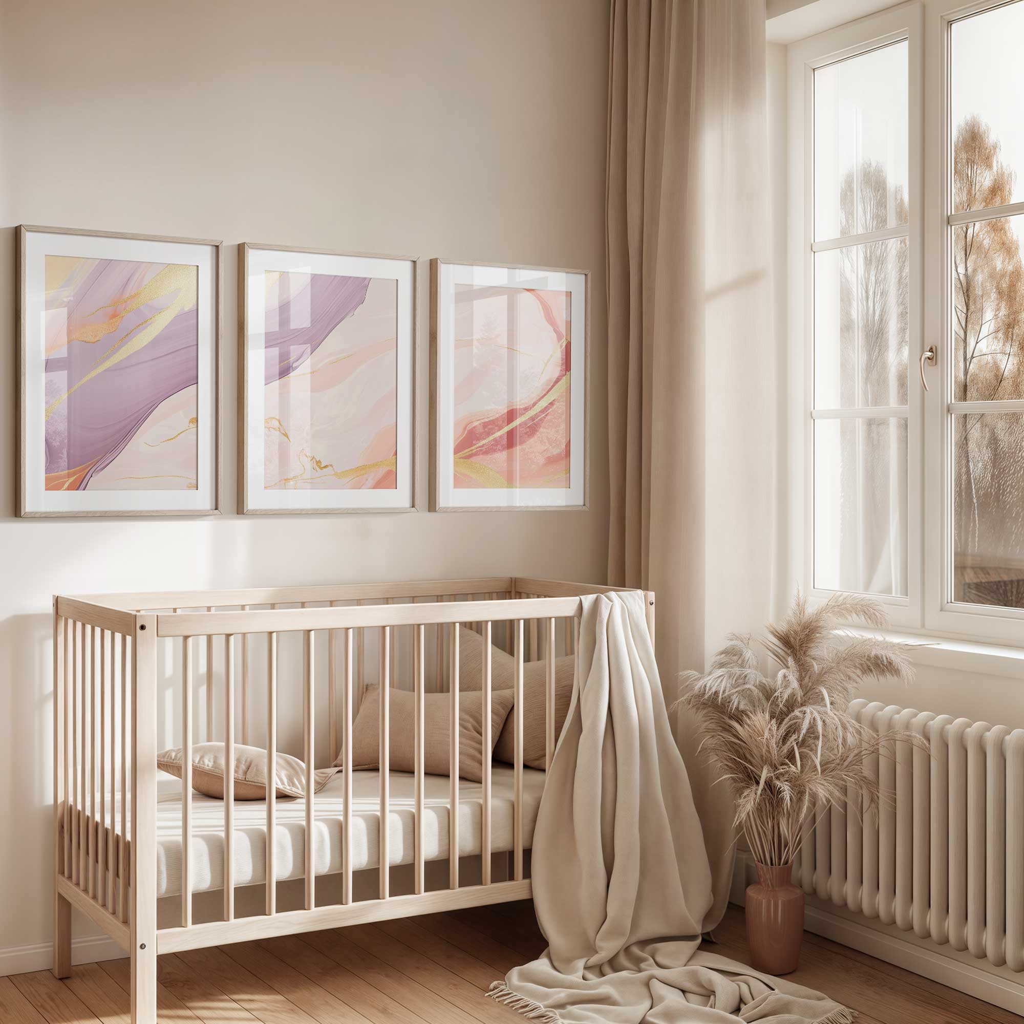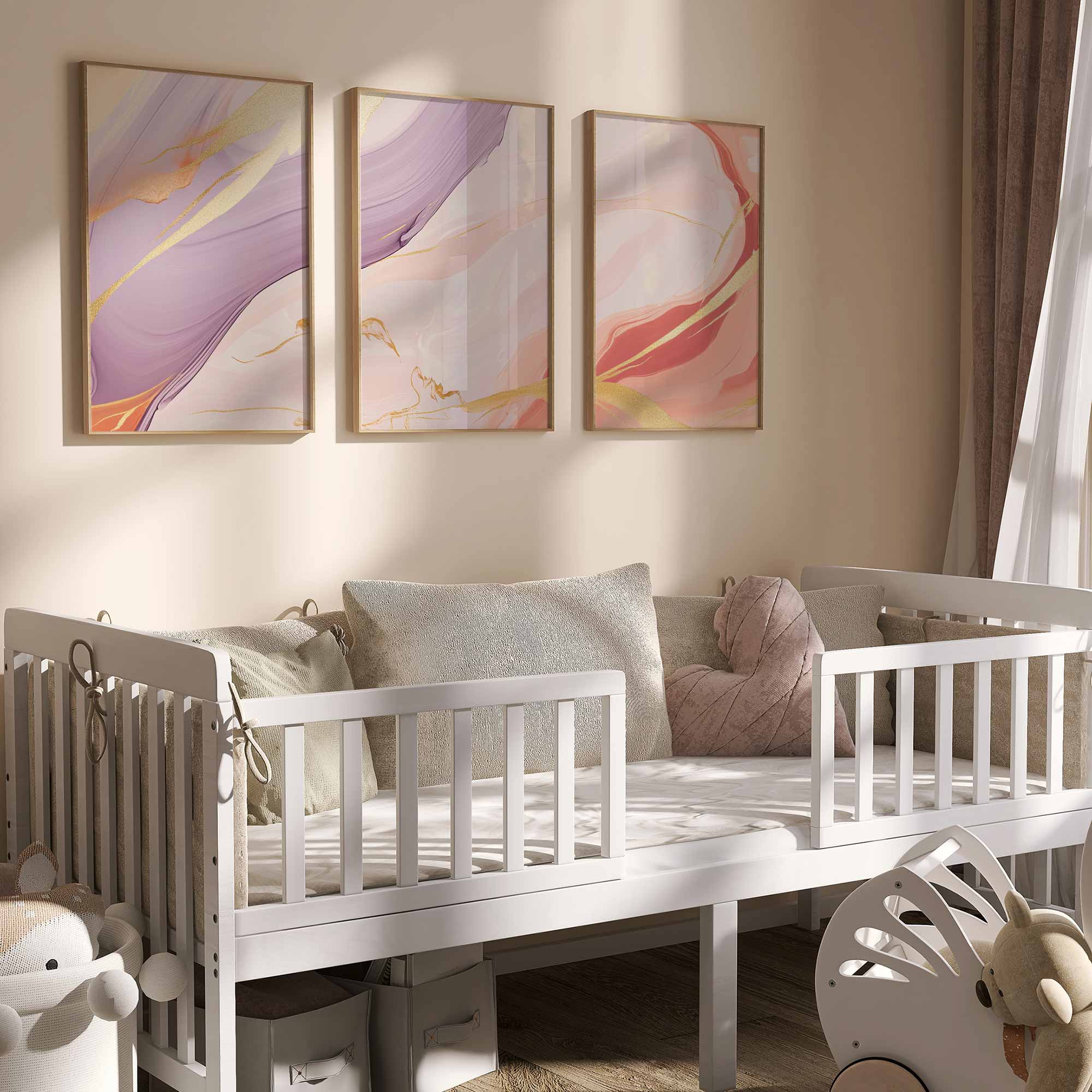 Terug naar collectie / Kinderkamer posters / Speelse Swirls in Roze, Paars en Goud – Stijlvolle Wanddecoratie