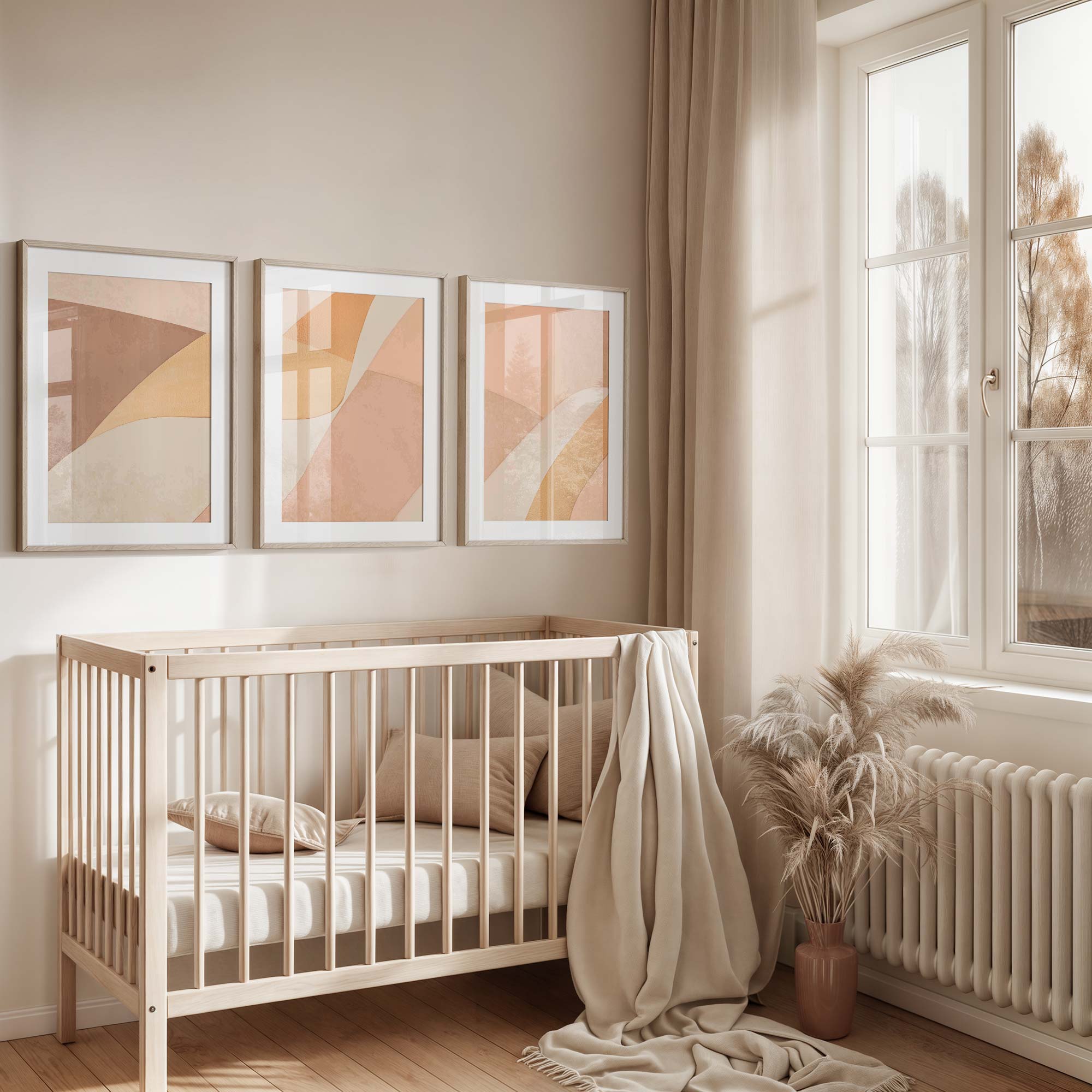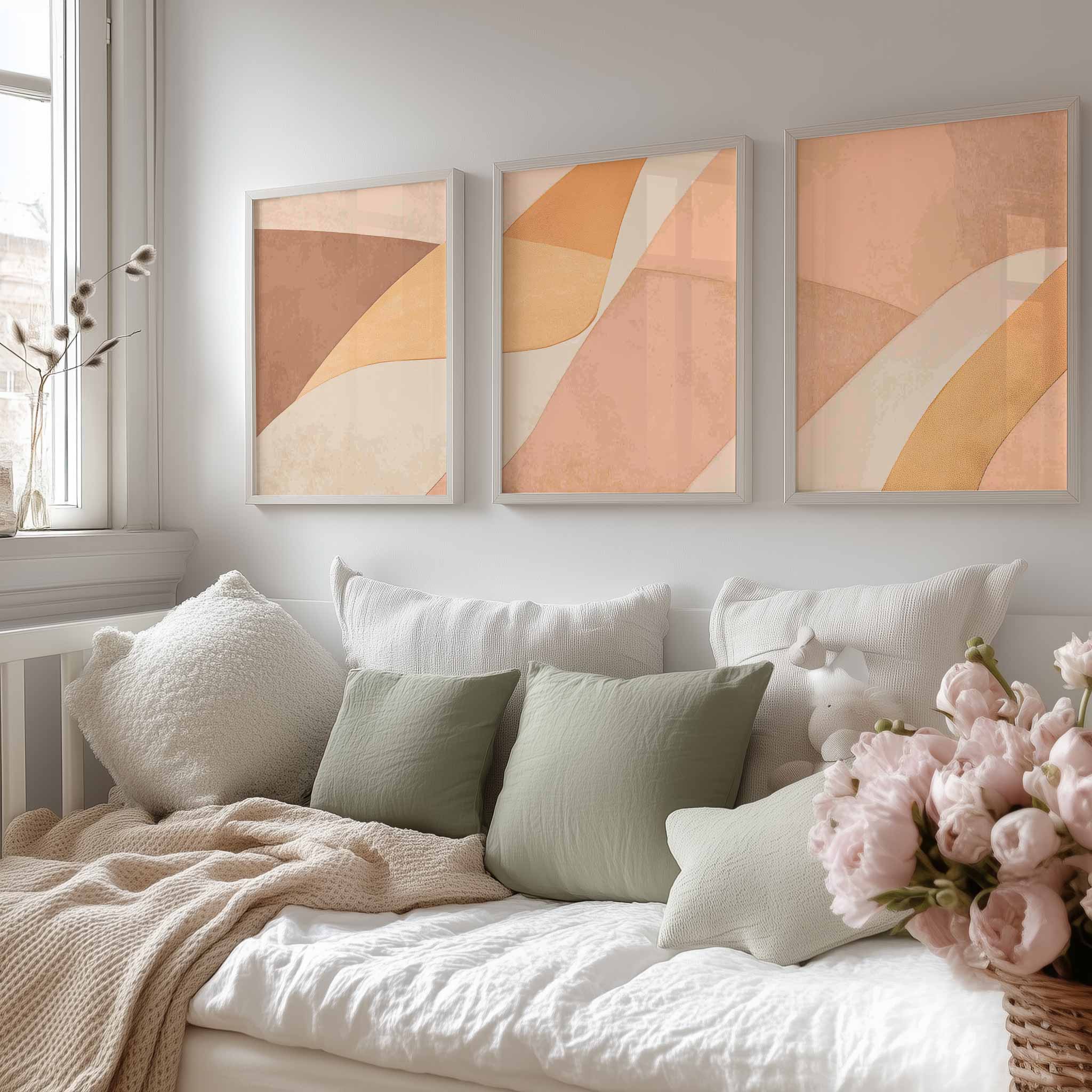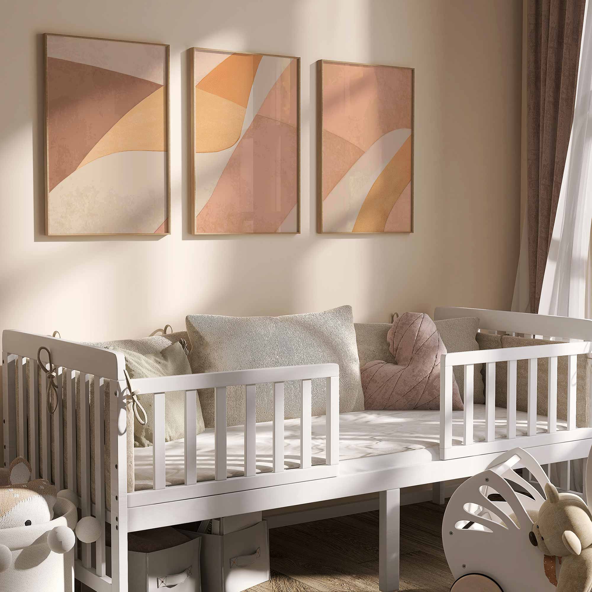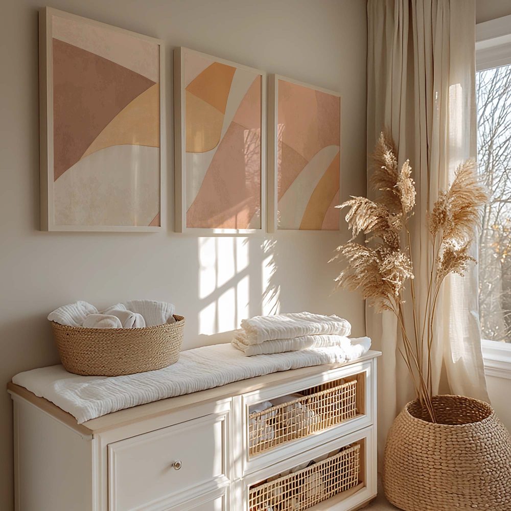 Terug naar collectie / Kinderkamer posters / Speelse Warmte: Abstracte Oranje en Beige Wanddecoratie