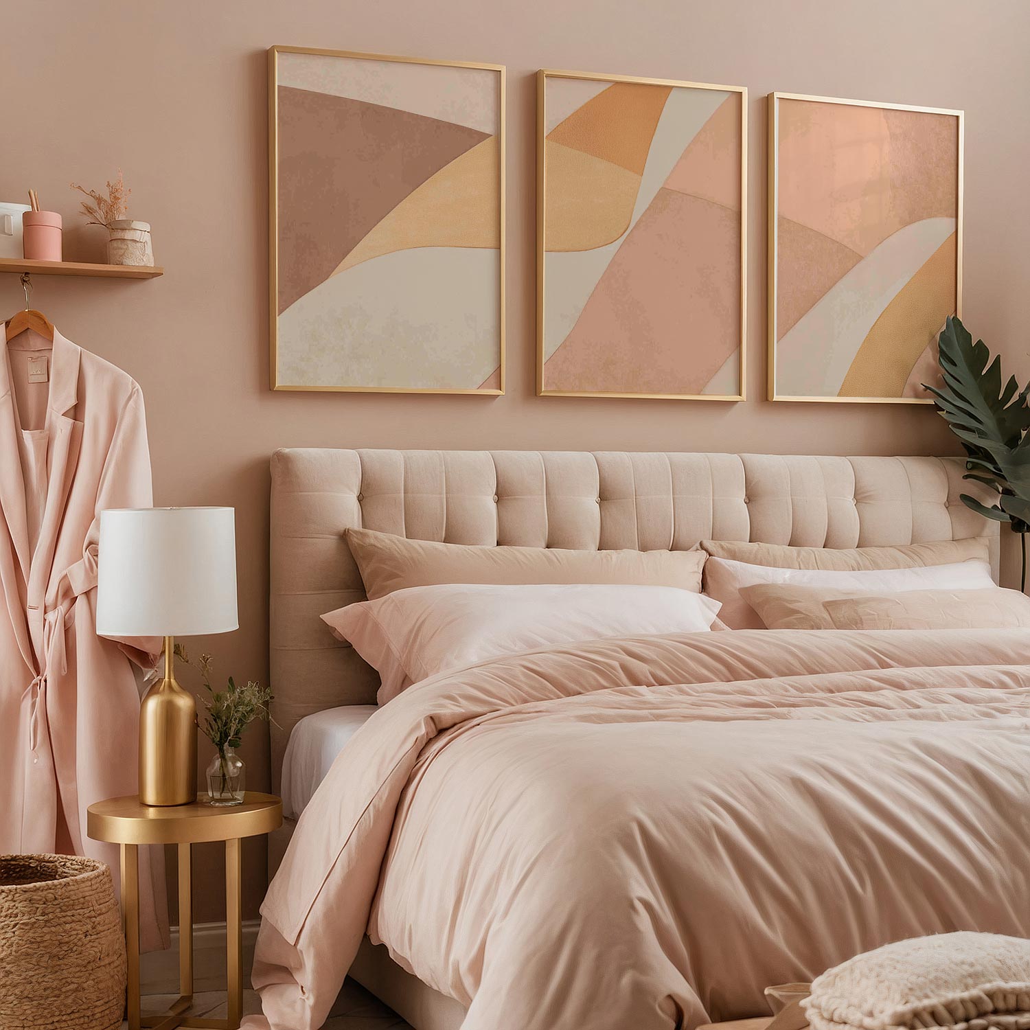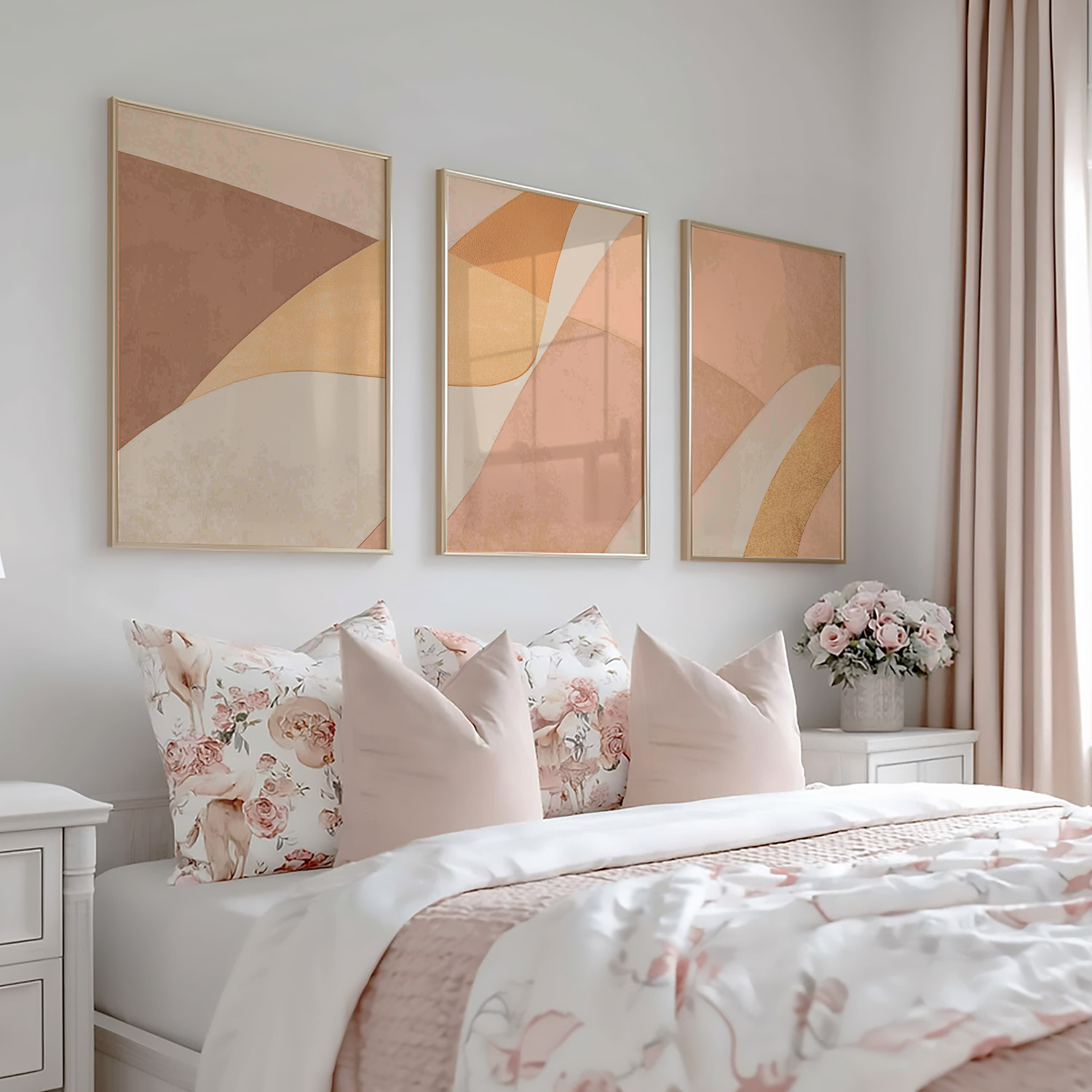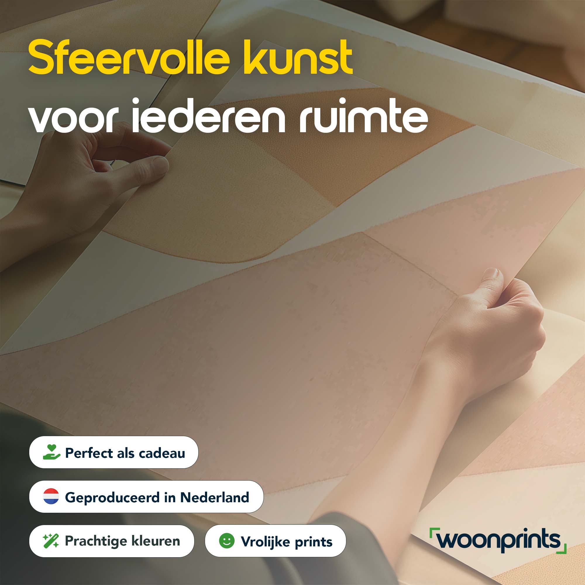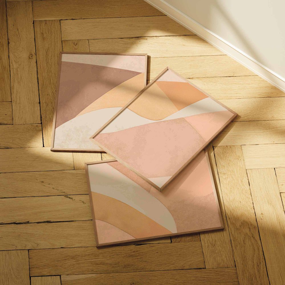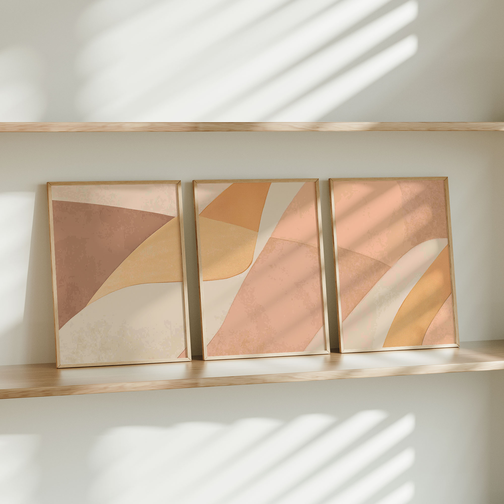 Speelse Warmte: Abstracte Oranje en Beige Wanddecoratie