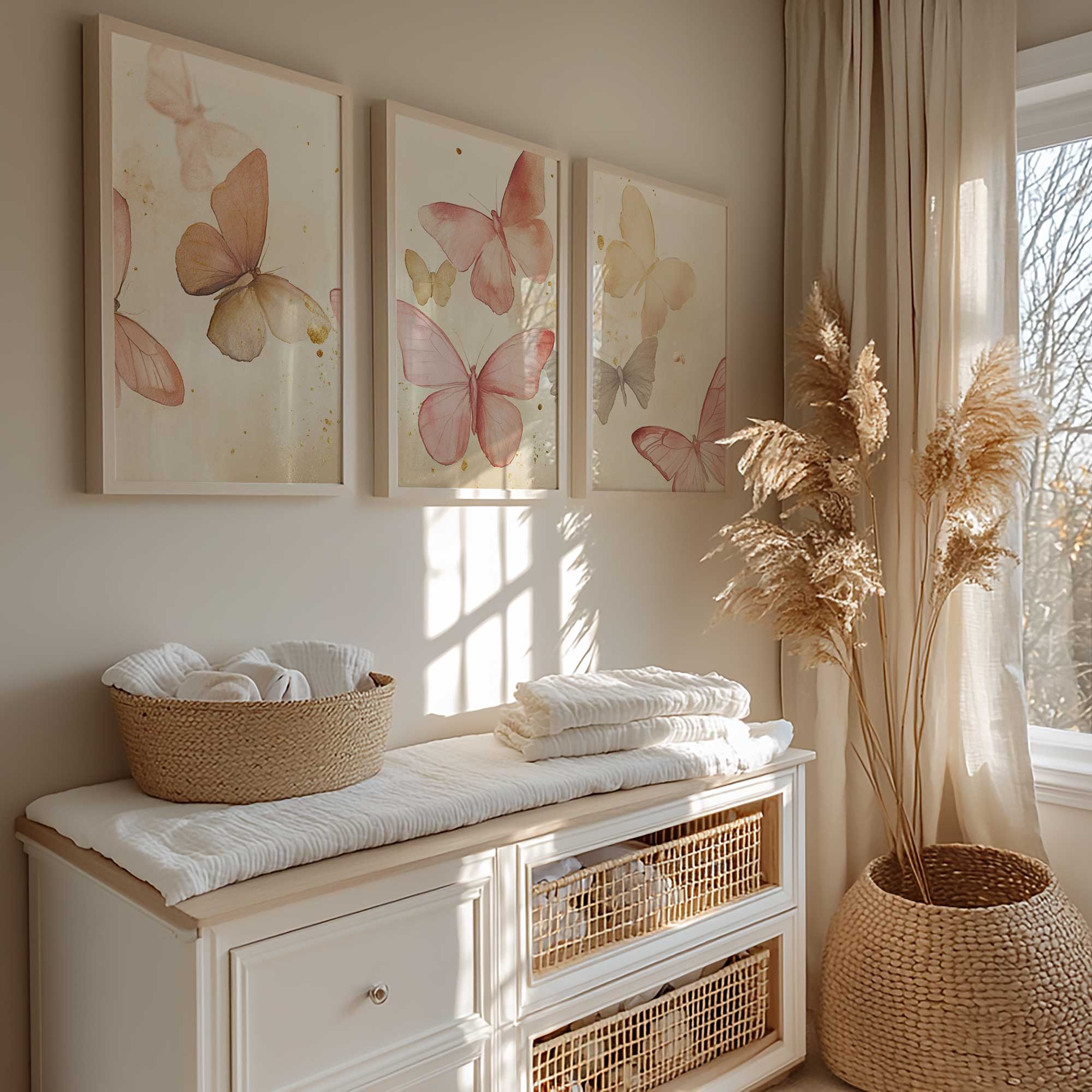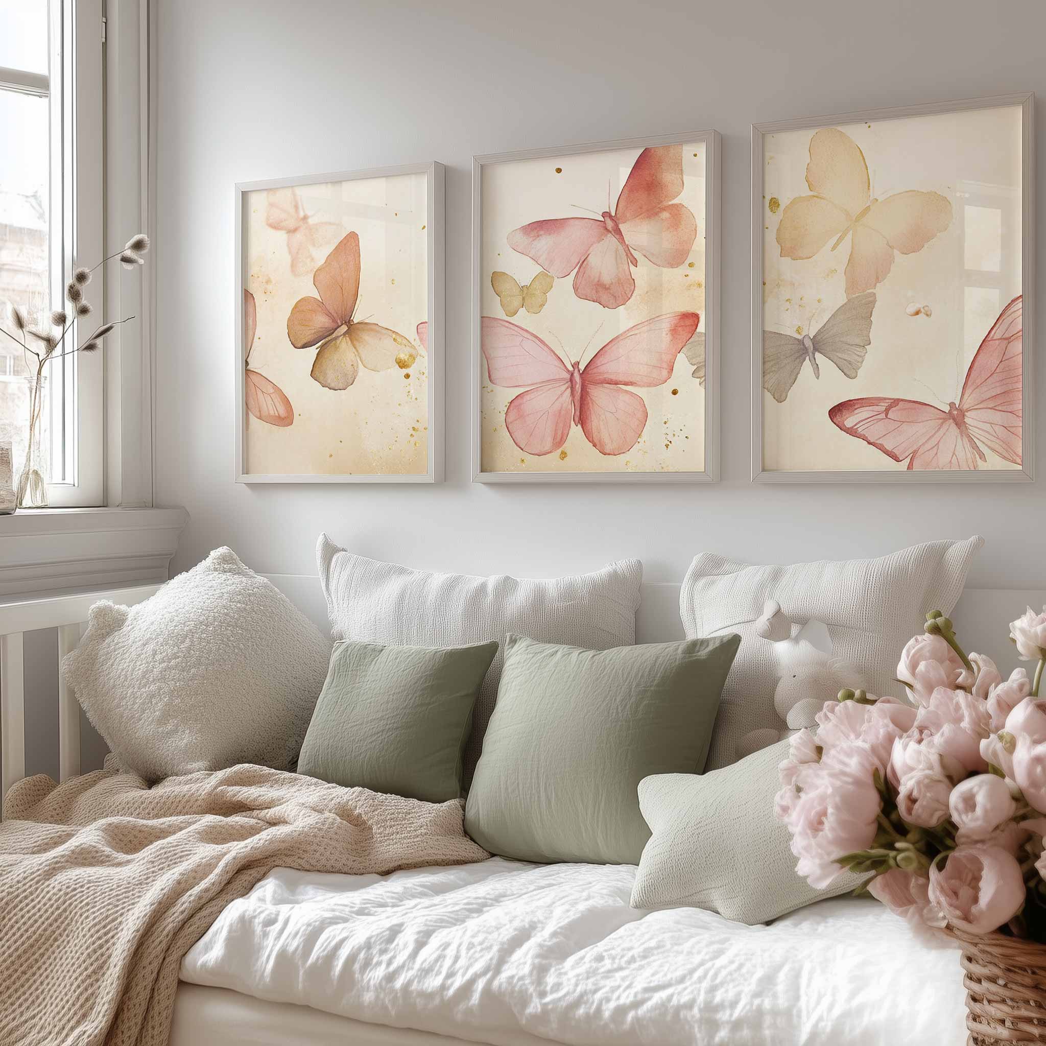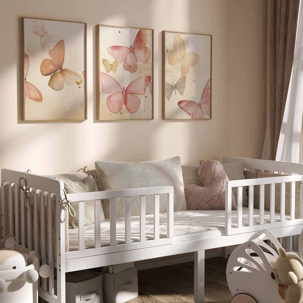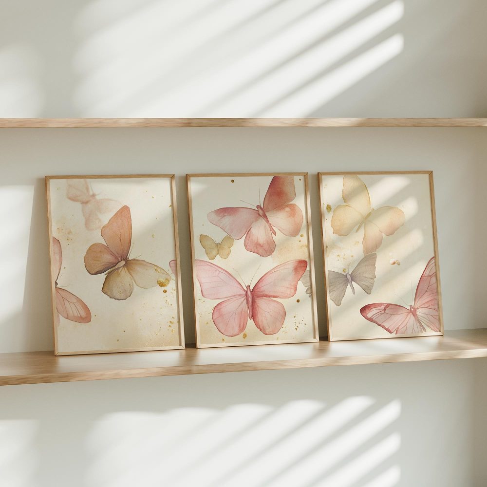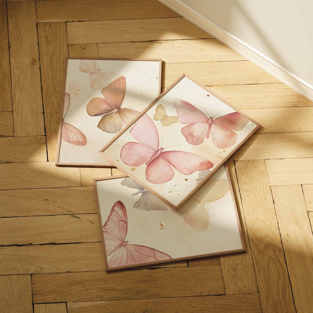 Terug naar collectie / Kinderkamer posters / Dieren posters / Speelse Watercolor Vlinders in Roze en Geel