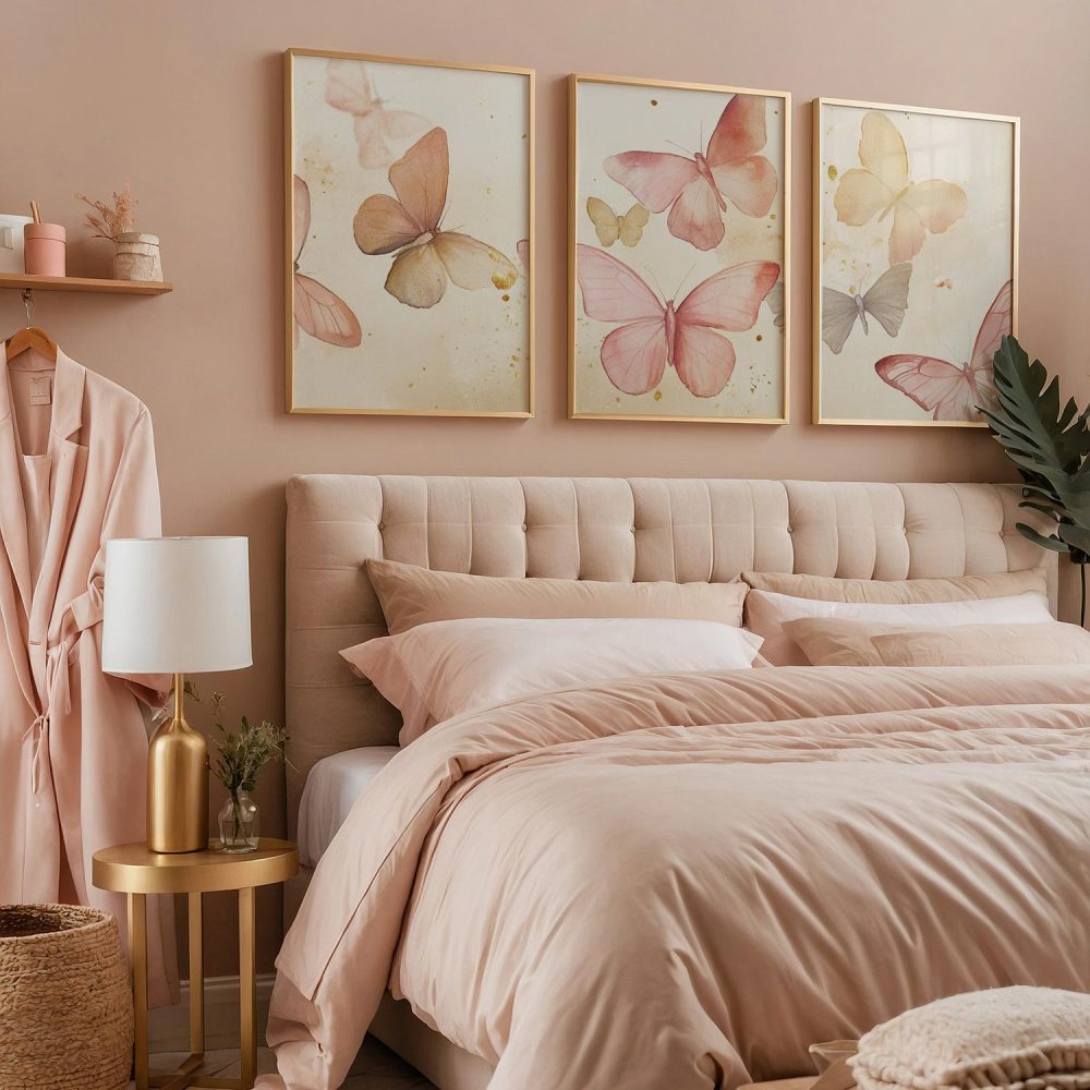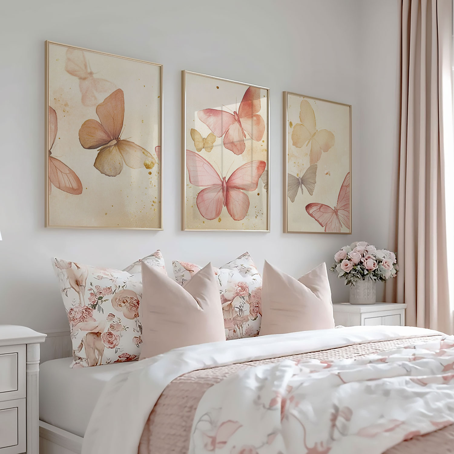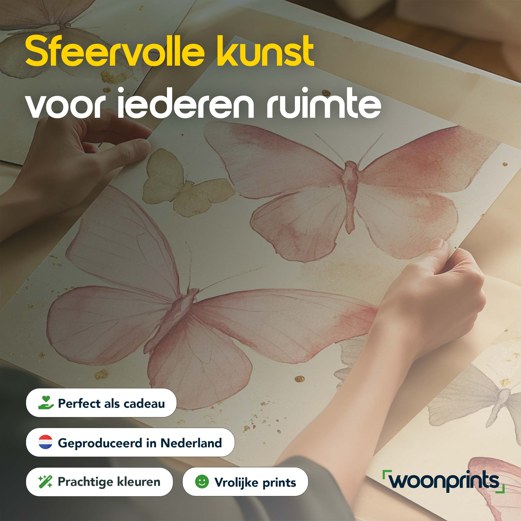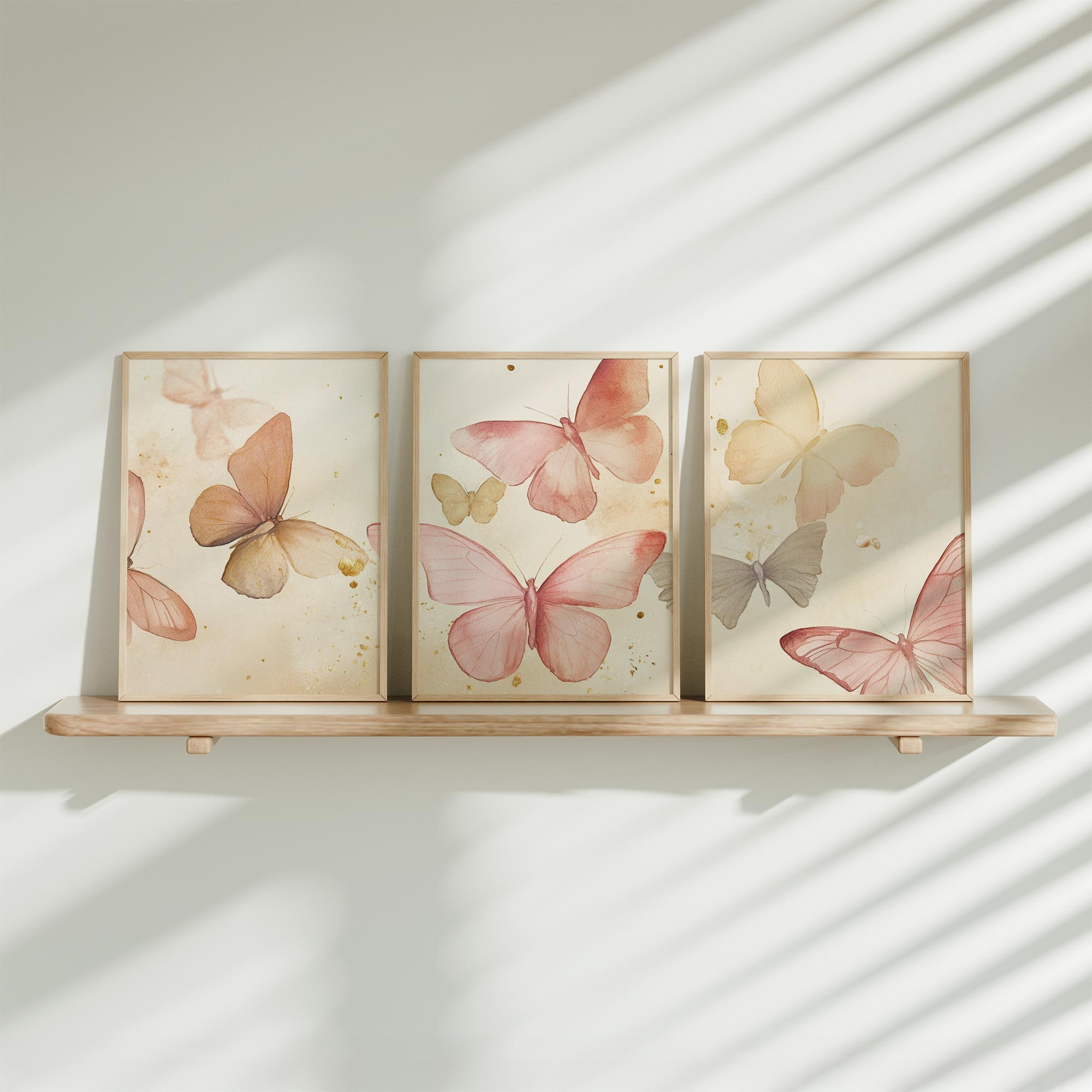 Terug naar collectie / Kinderkamer posters / Dieren posters / Speelse Watercolor Vlinders in Roze en Geel