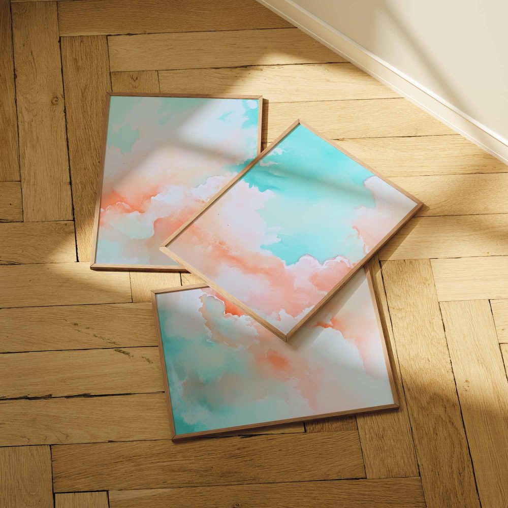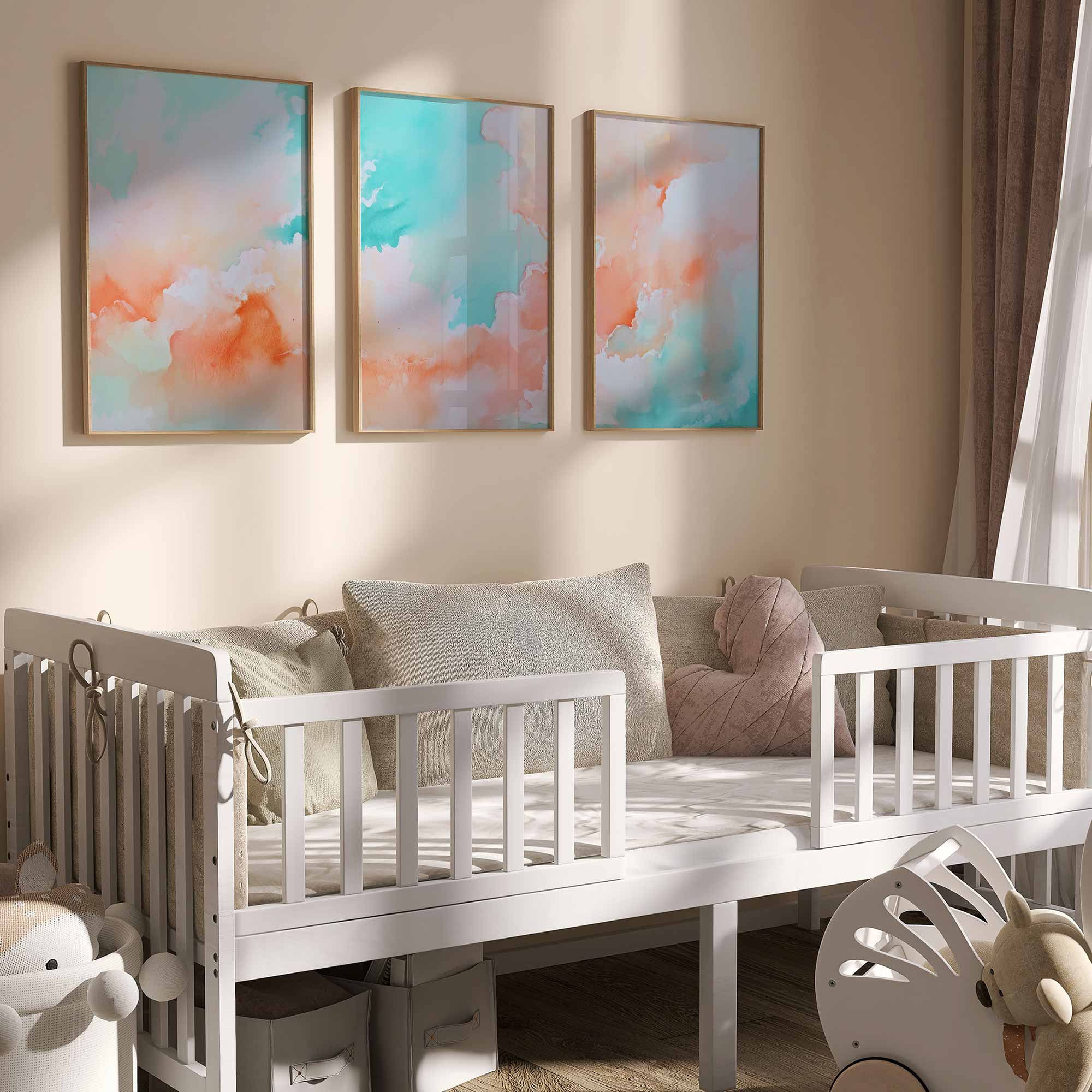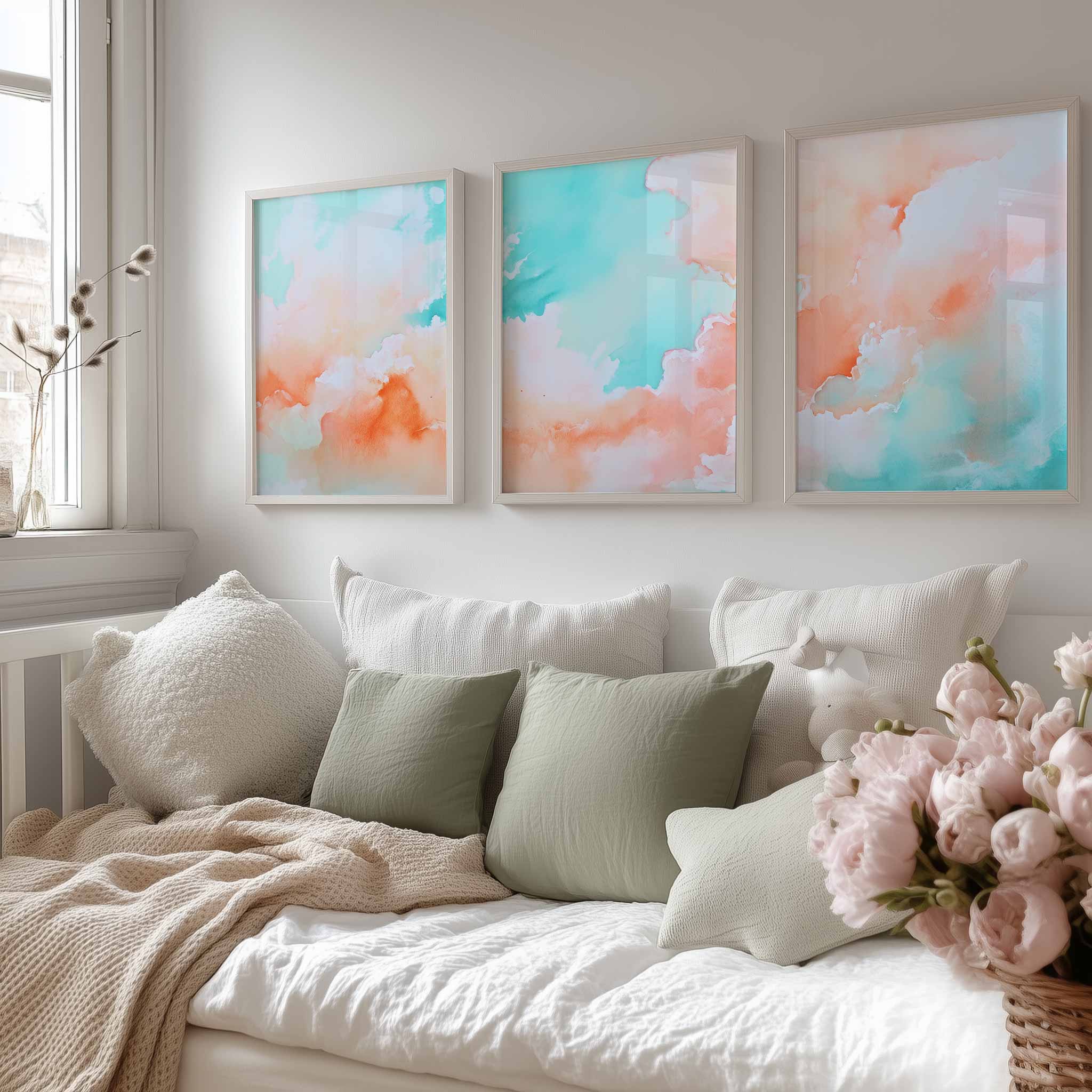 Terug naar collectie / Kinderkamer posters / Speelse Watercolor Wolken in Levendige Tinten
