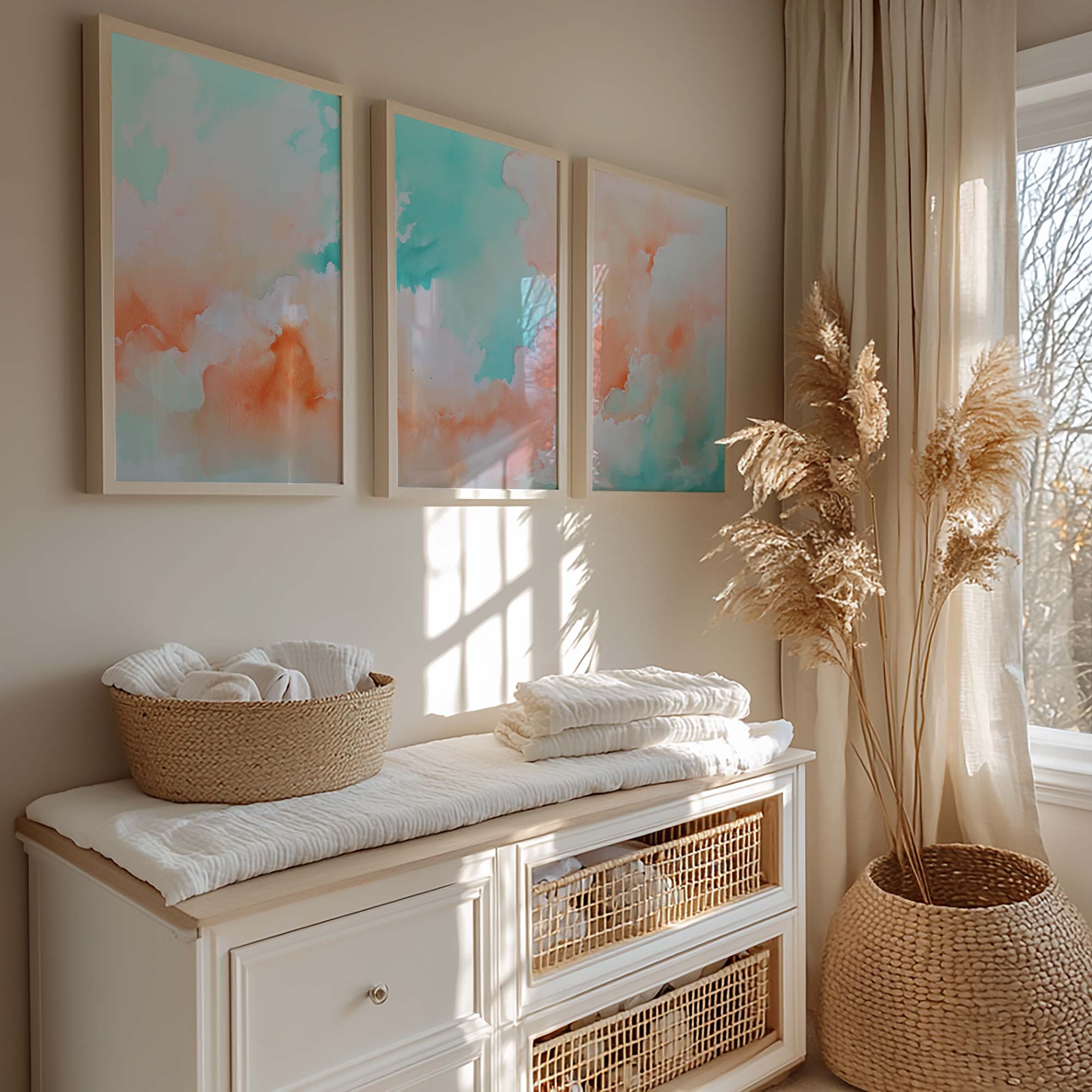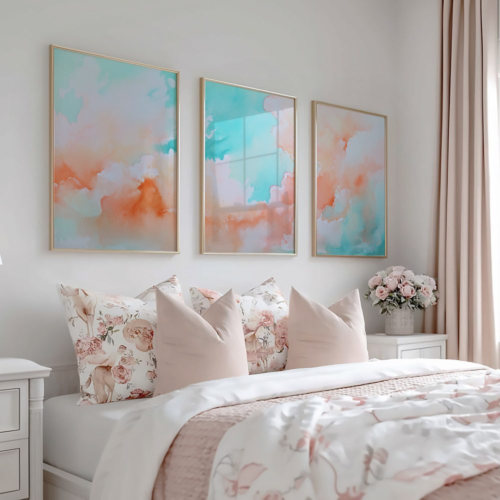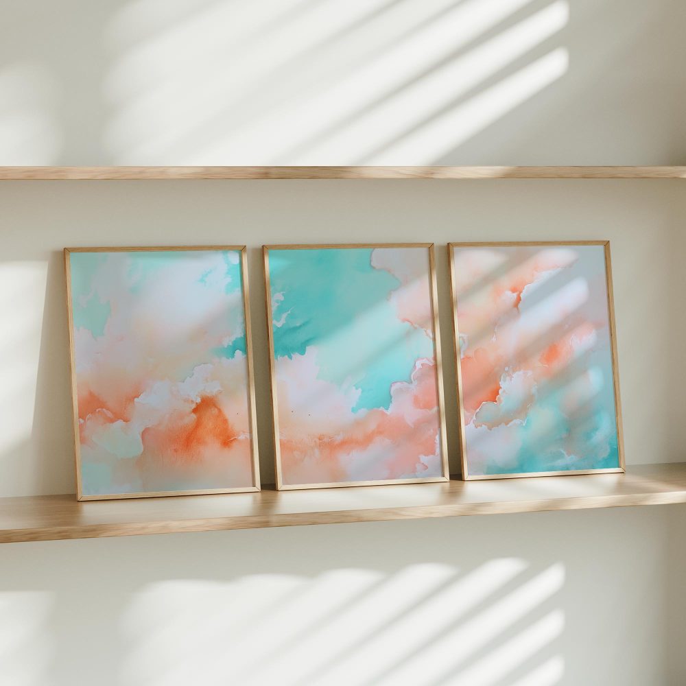 Terug naar collectie / Kinderkamer posters / Speelse Watercolor Wolken in Levendige Tinten