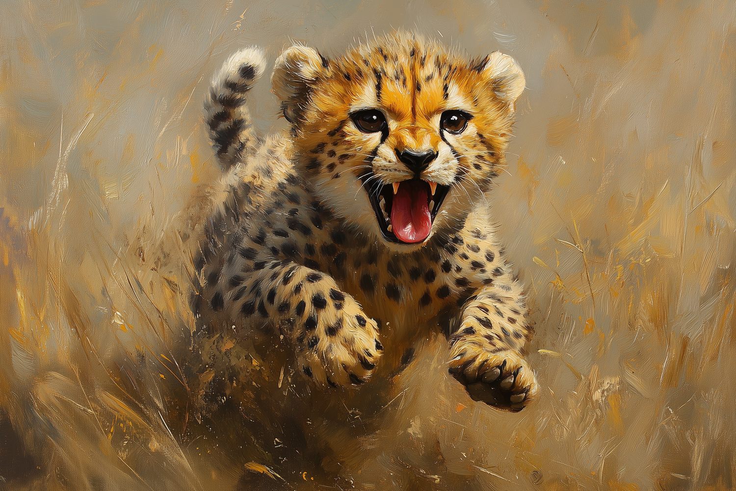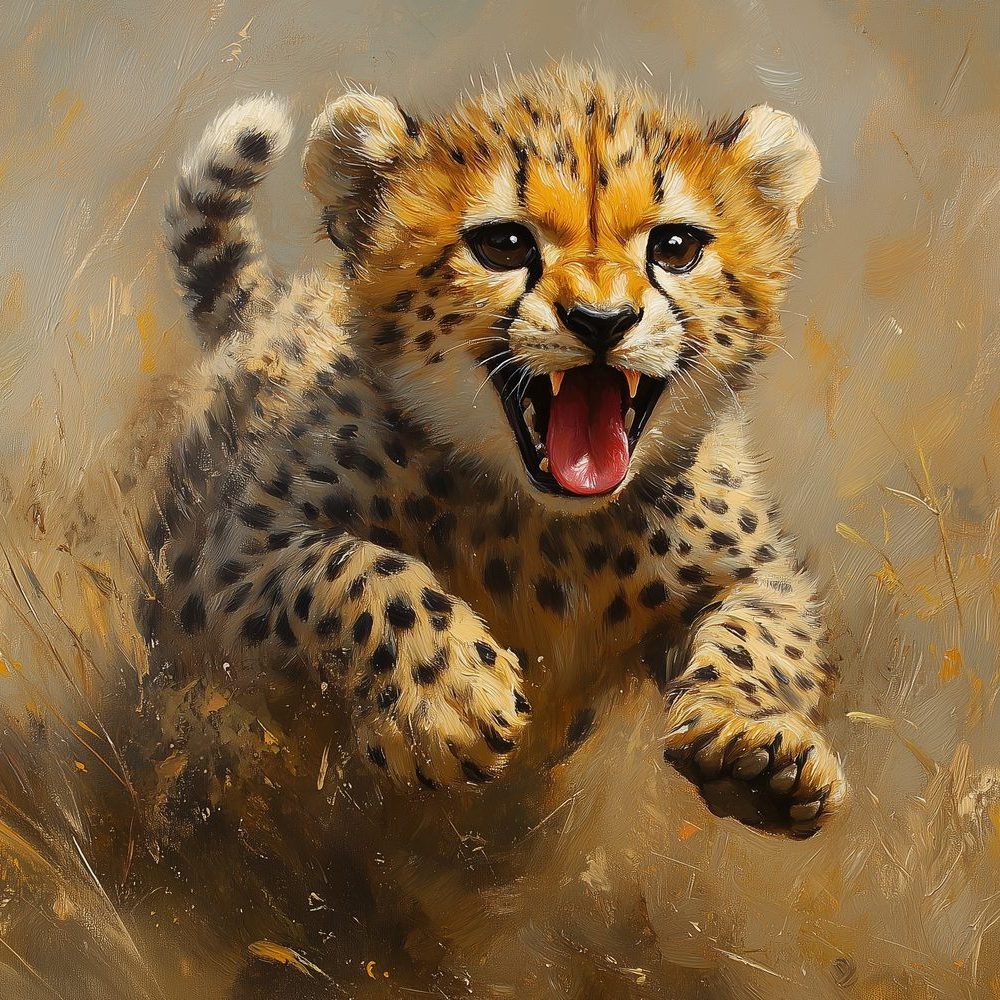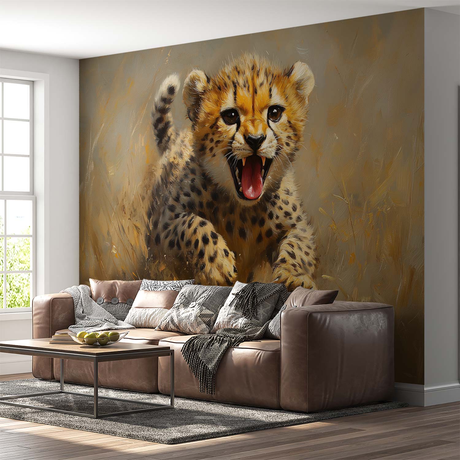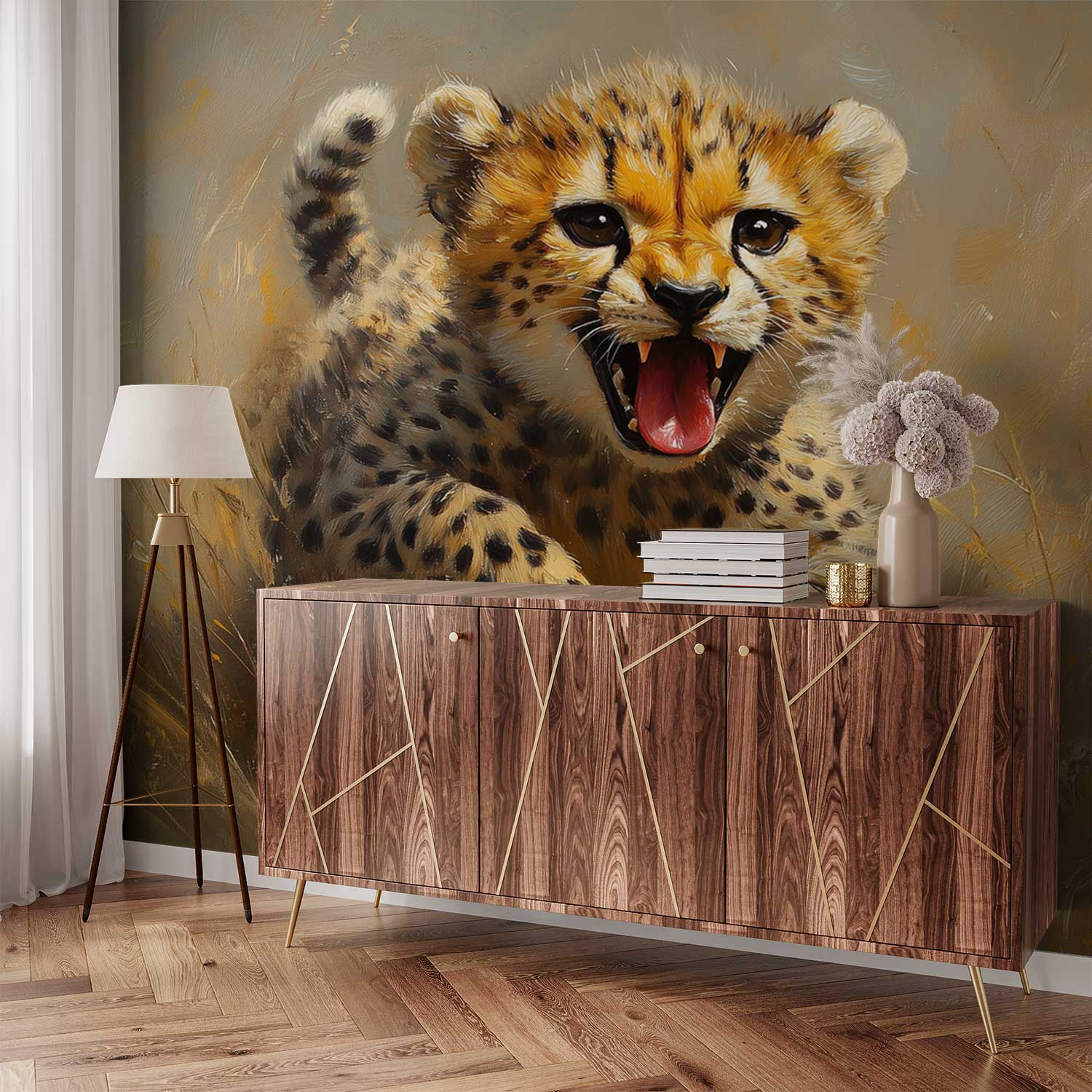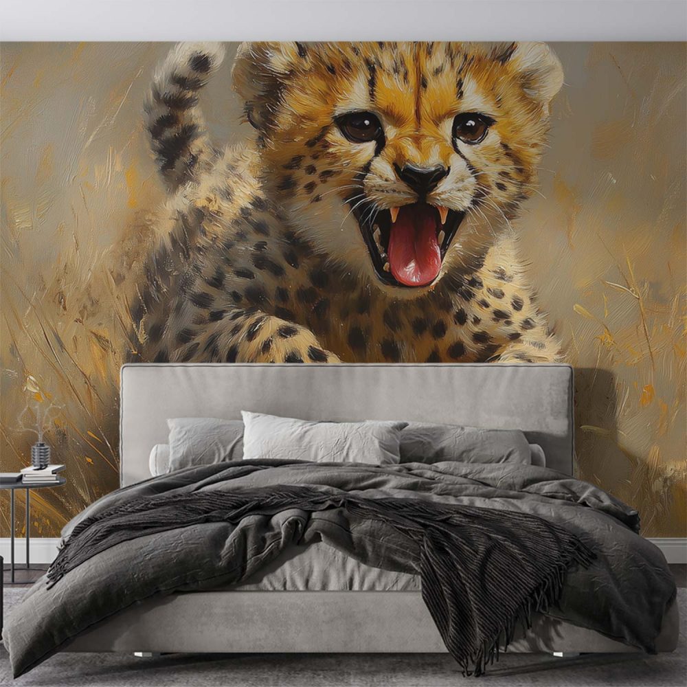 Terug naar collectie / Behang / Abstract behang / Springende Jachtluipaard in Gras behang