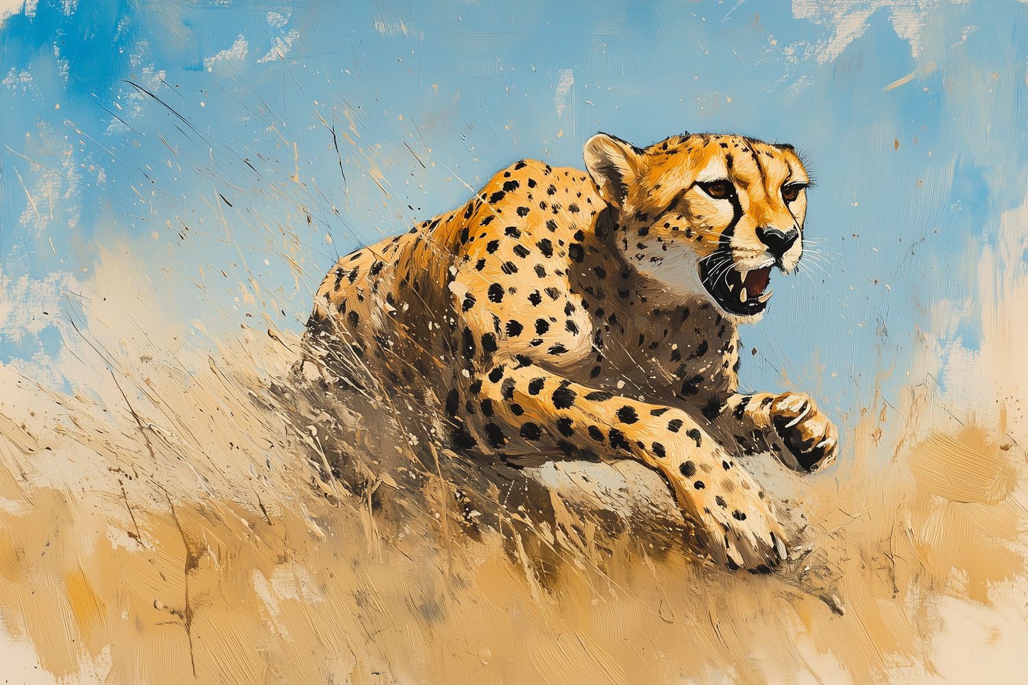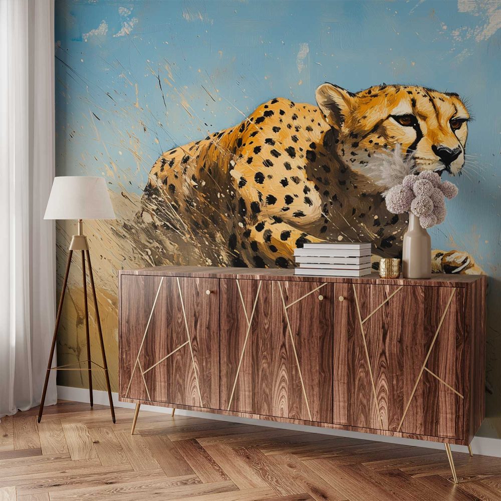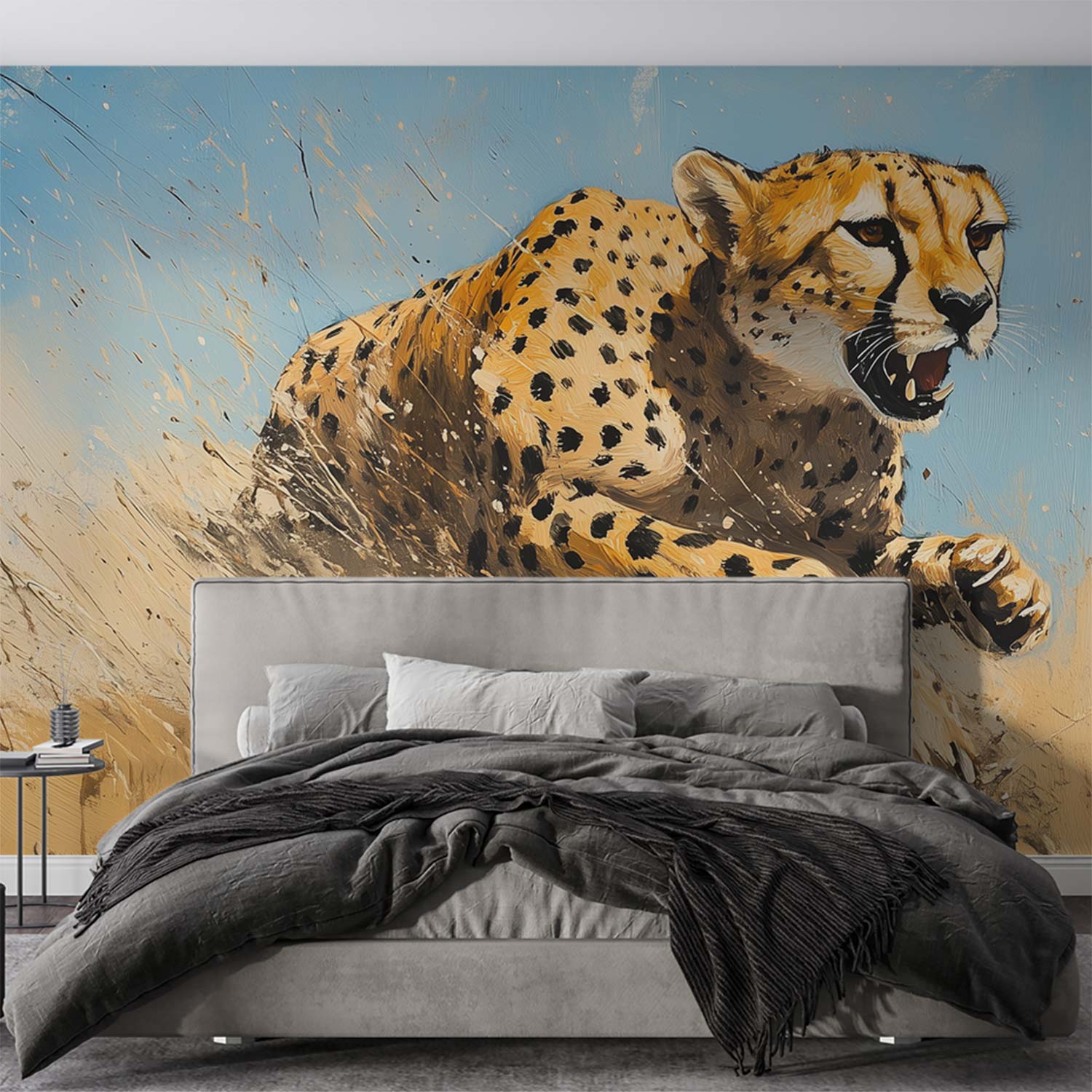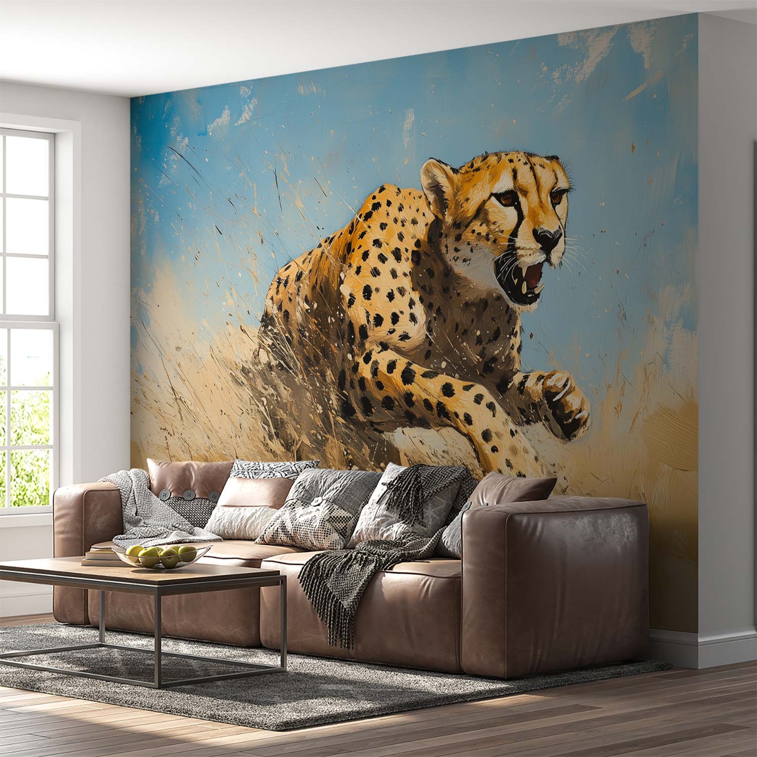 Terug naar collectie / Behang / Abstract behang / Sprintende Jachtluipaard in Gras behang