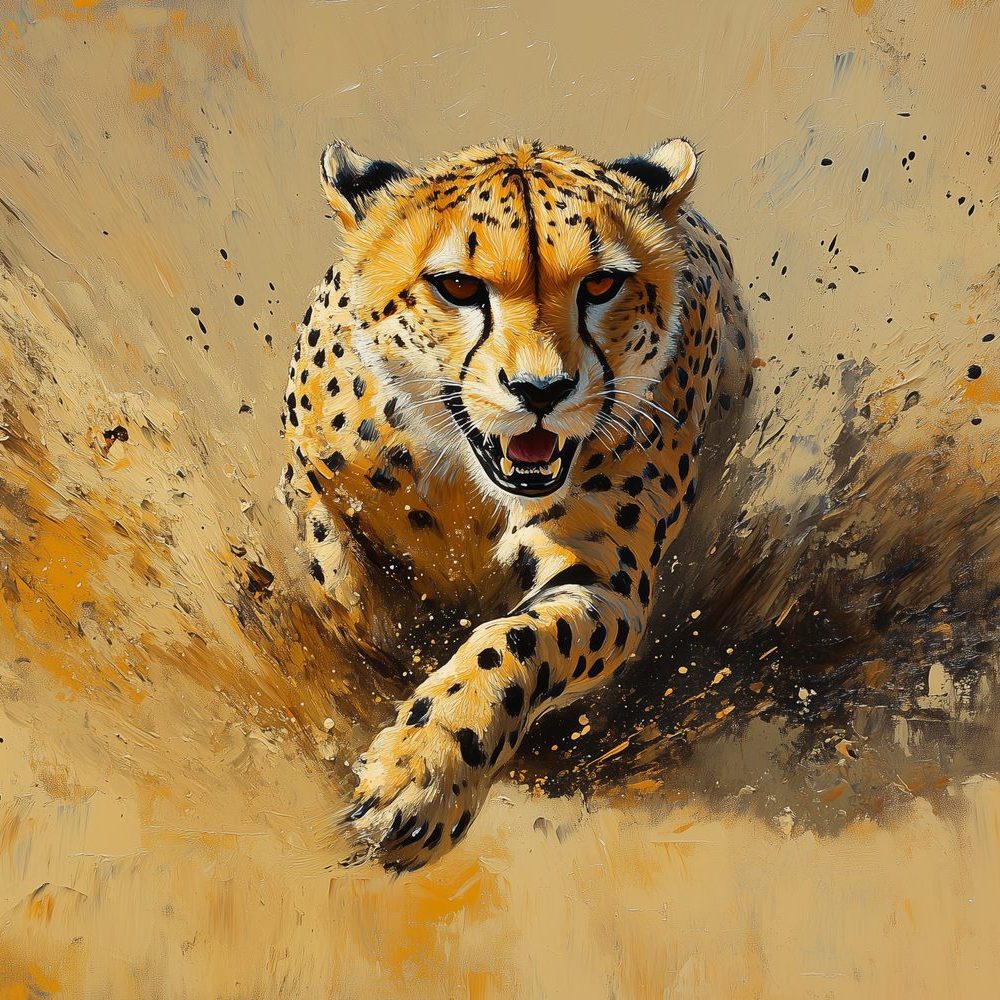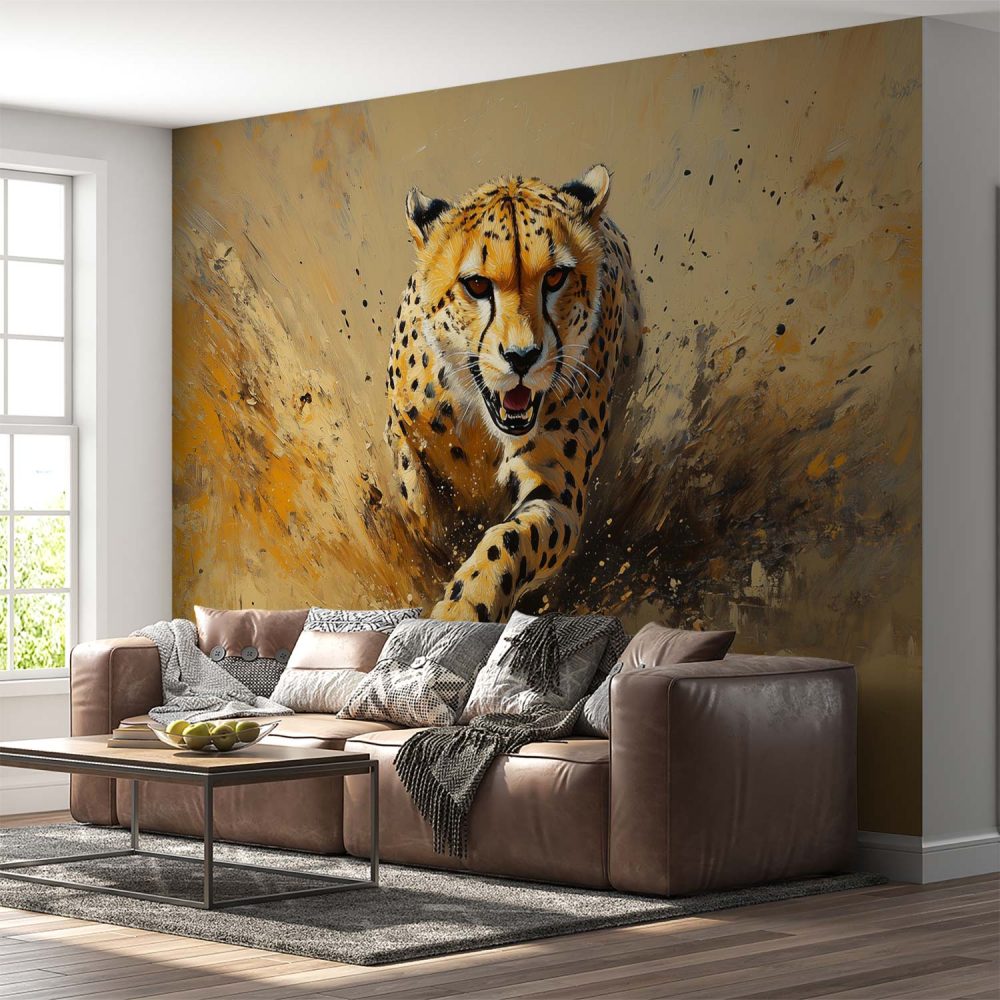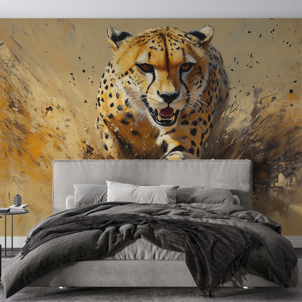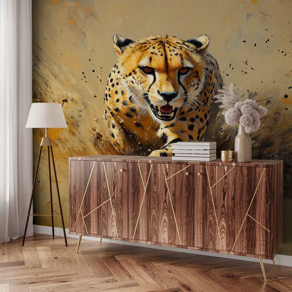 Terug naar collectie / Behang / Abstract behang / Sprintende Jachtluipaard Schilderij behang