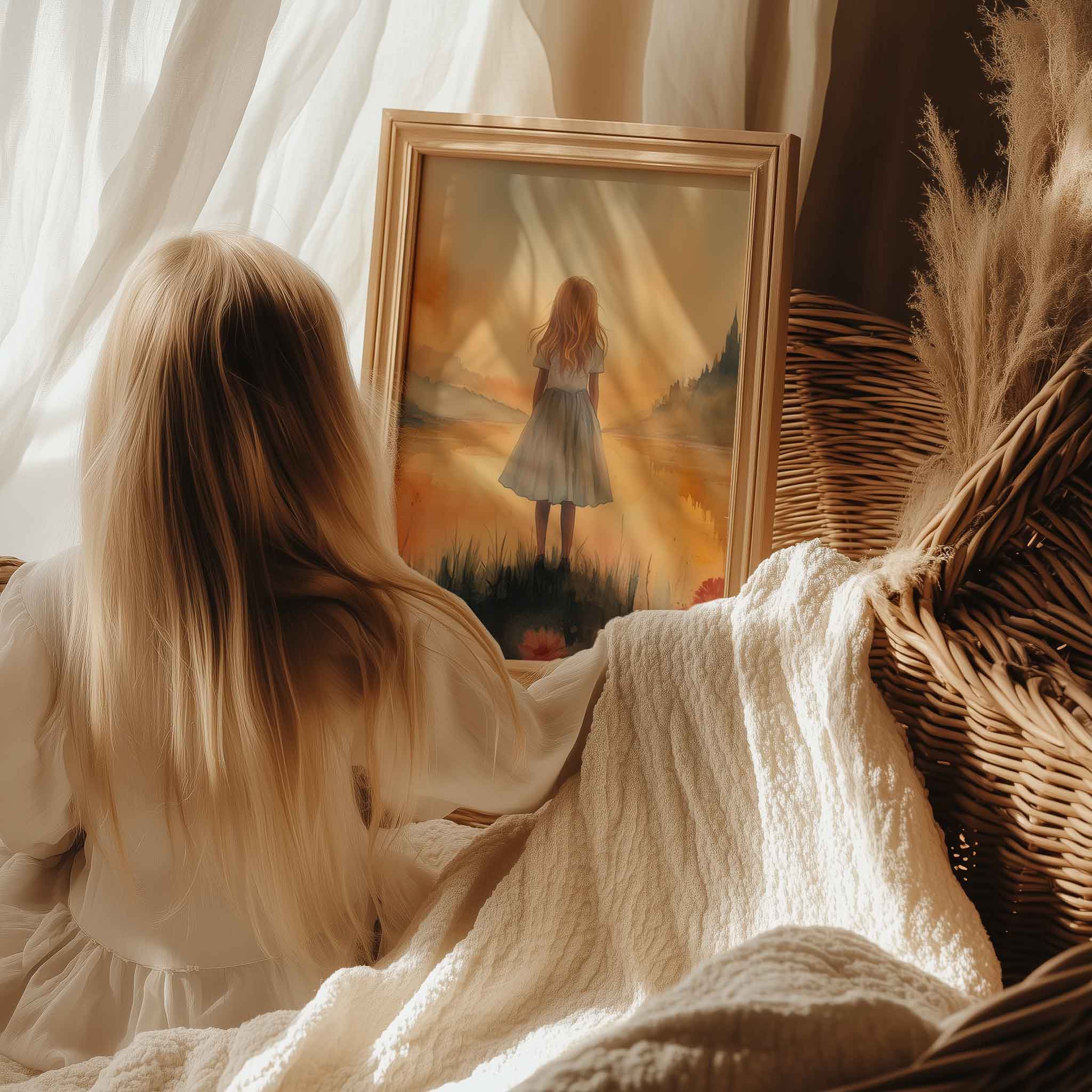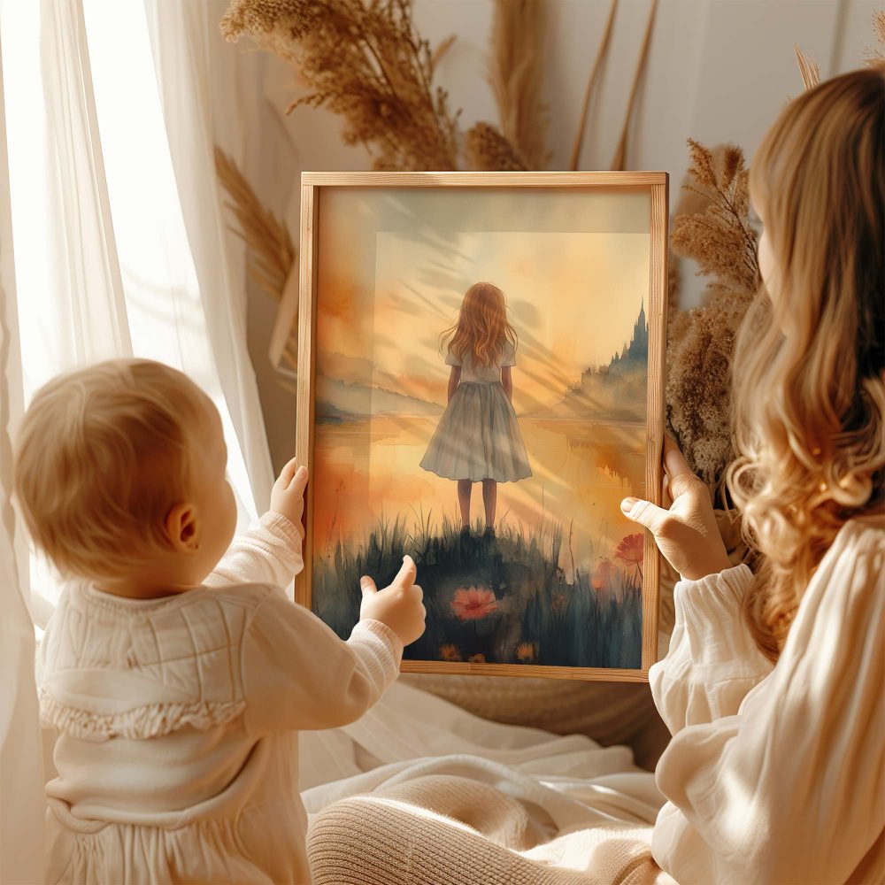 Terug naar collectie / Uncategorized / Sprookjesachtig Meisje in Mistig Kasteellandschap