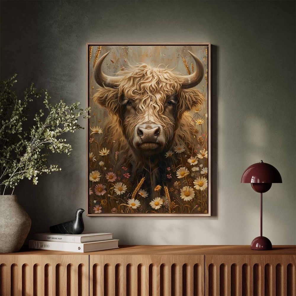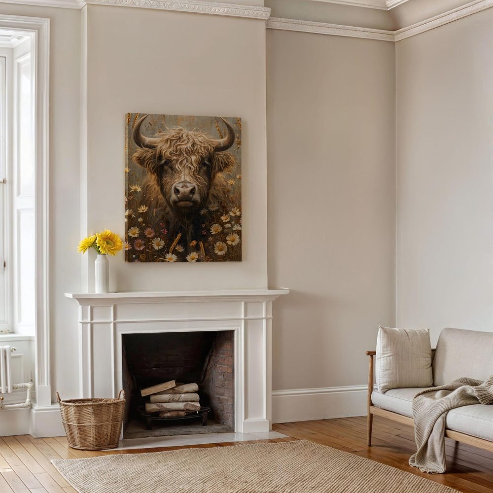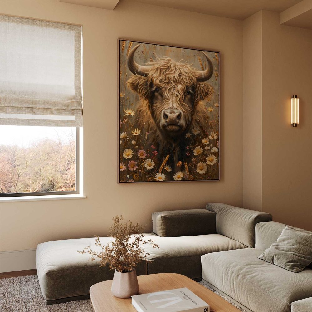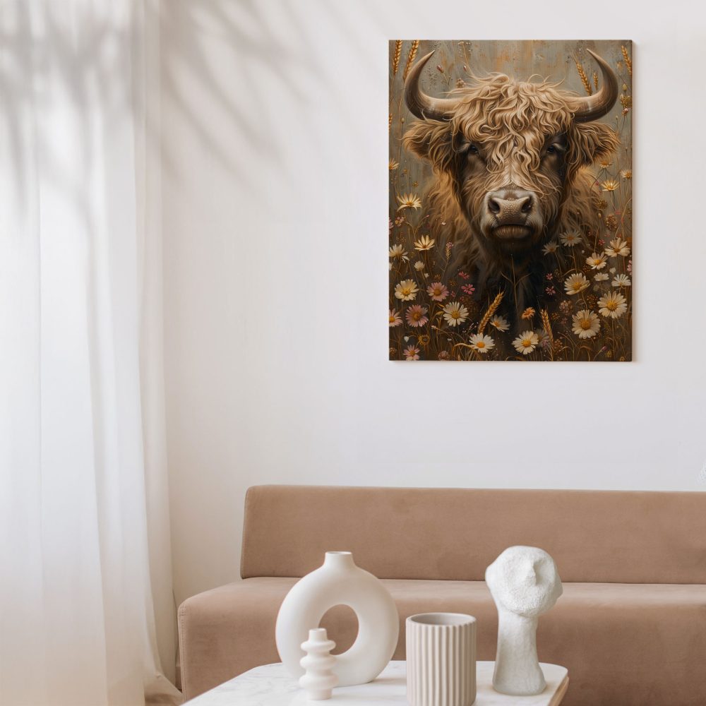 Terug naar collectie / Schilderijen / Bloemen Schilderij / Stierenkop tussen bloemenveld