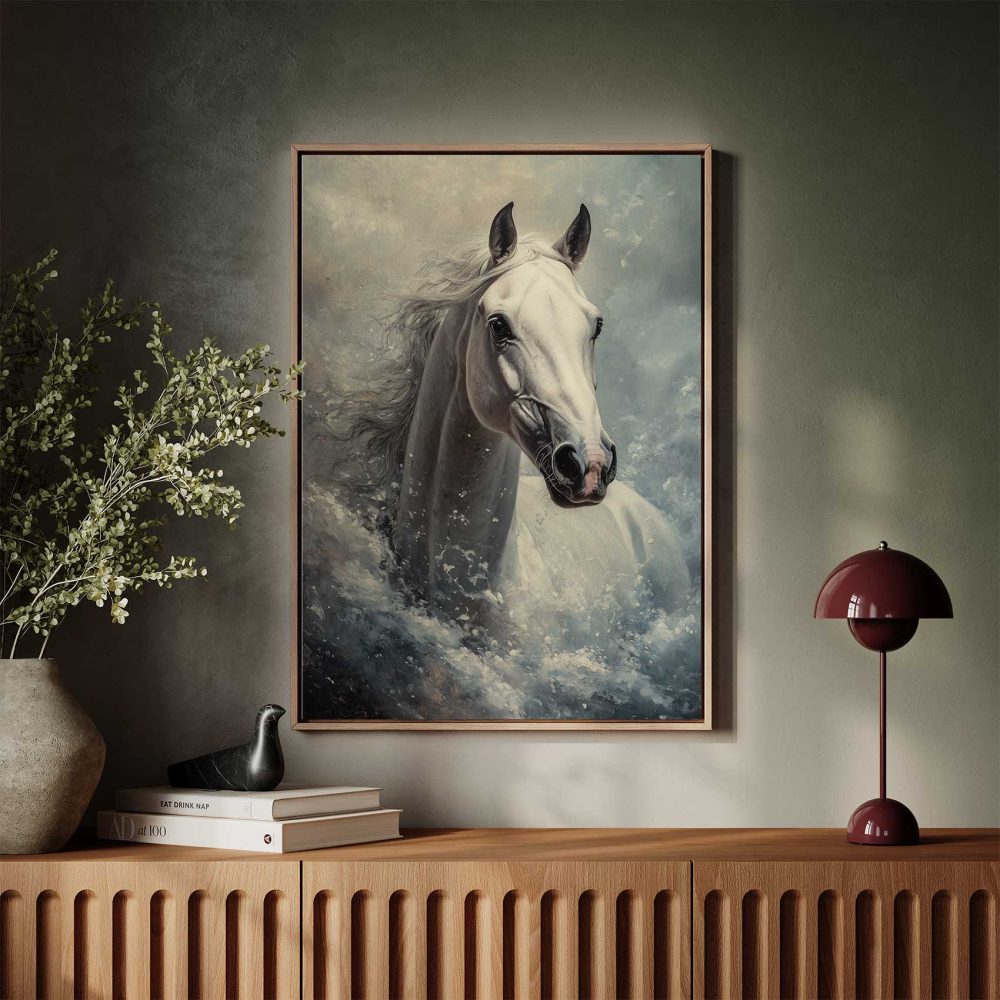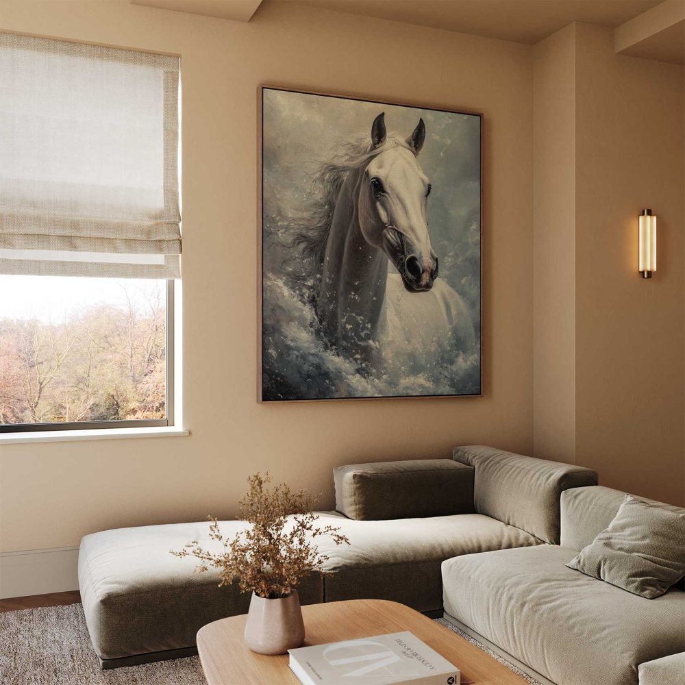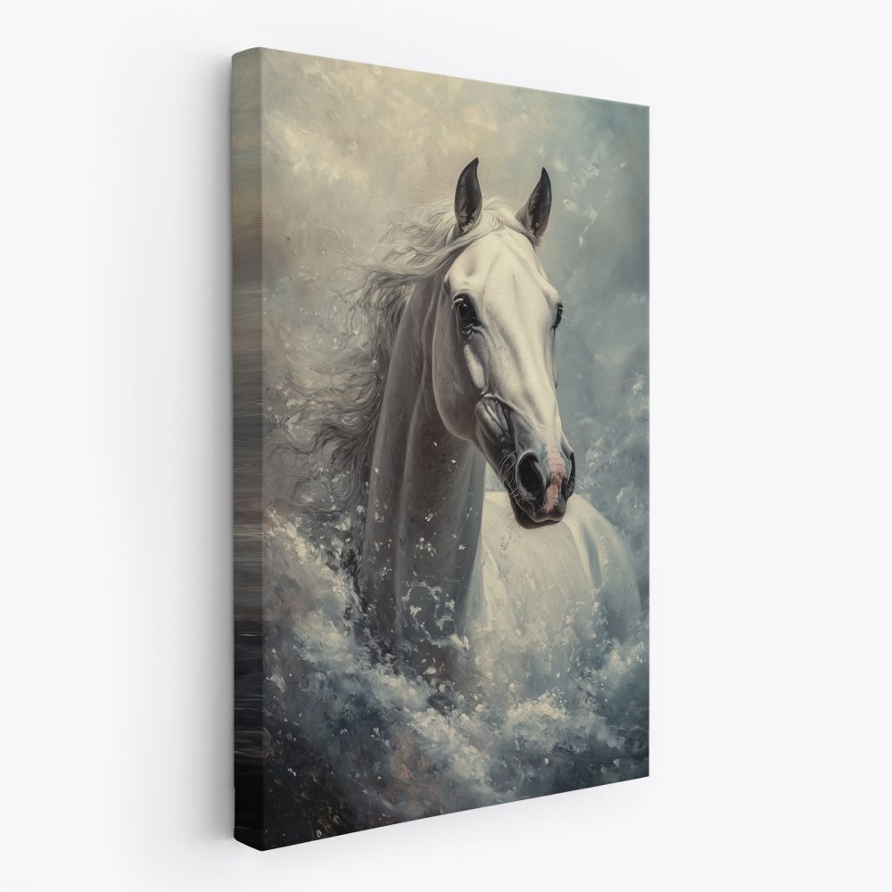 Terug naar collectie / Schilderijen / Dieren Schilderij / Stormende Witte Paardenkracht