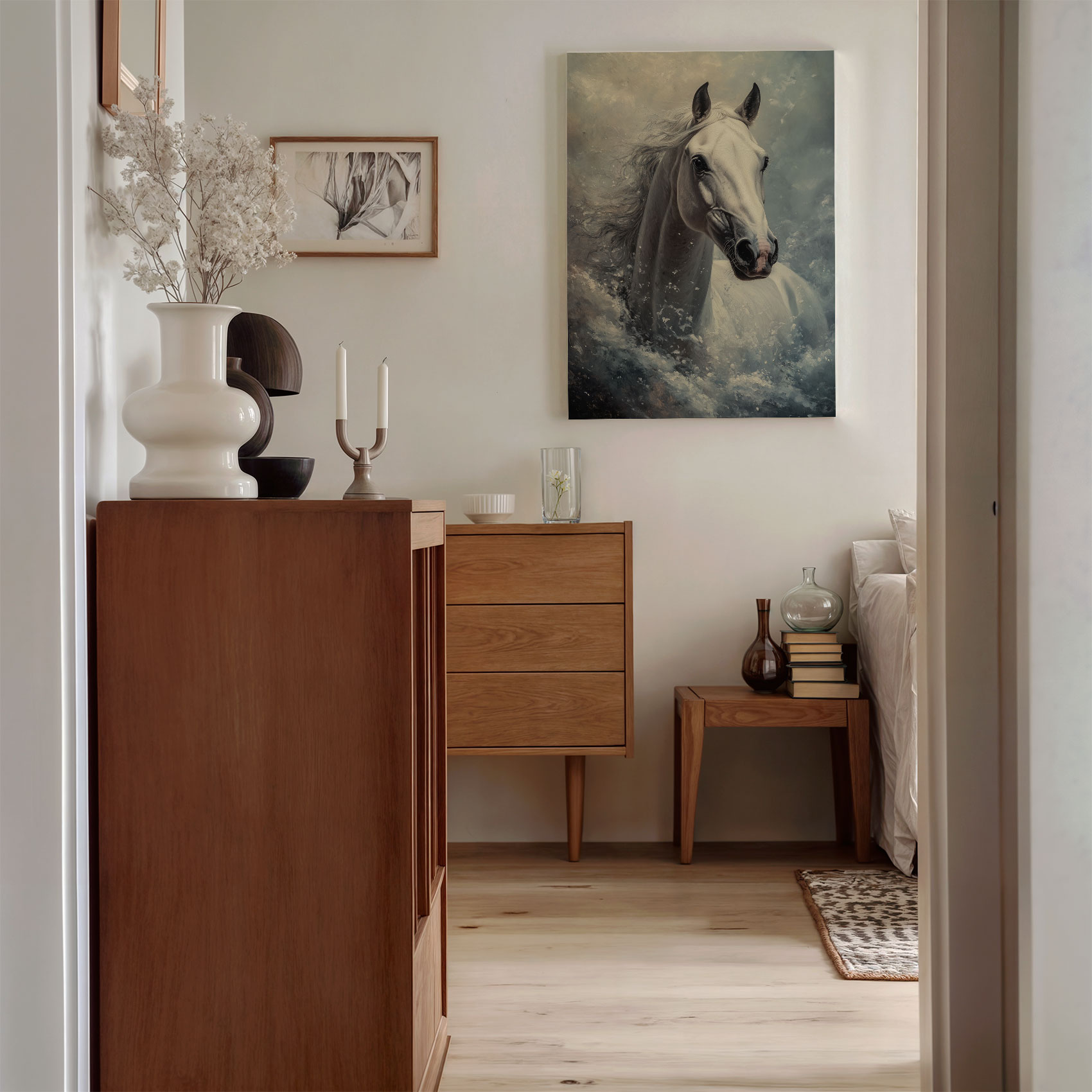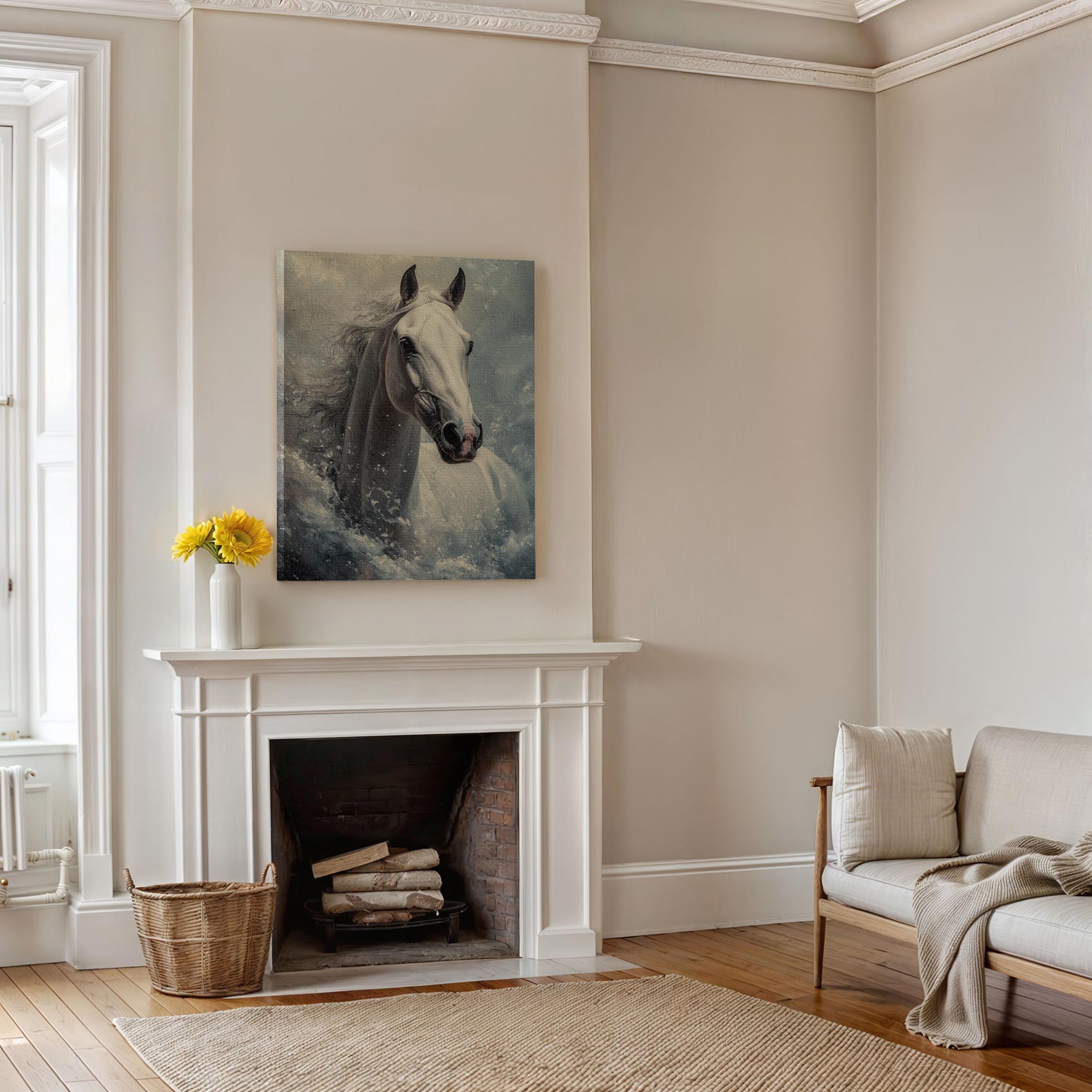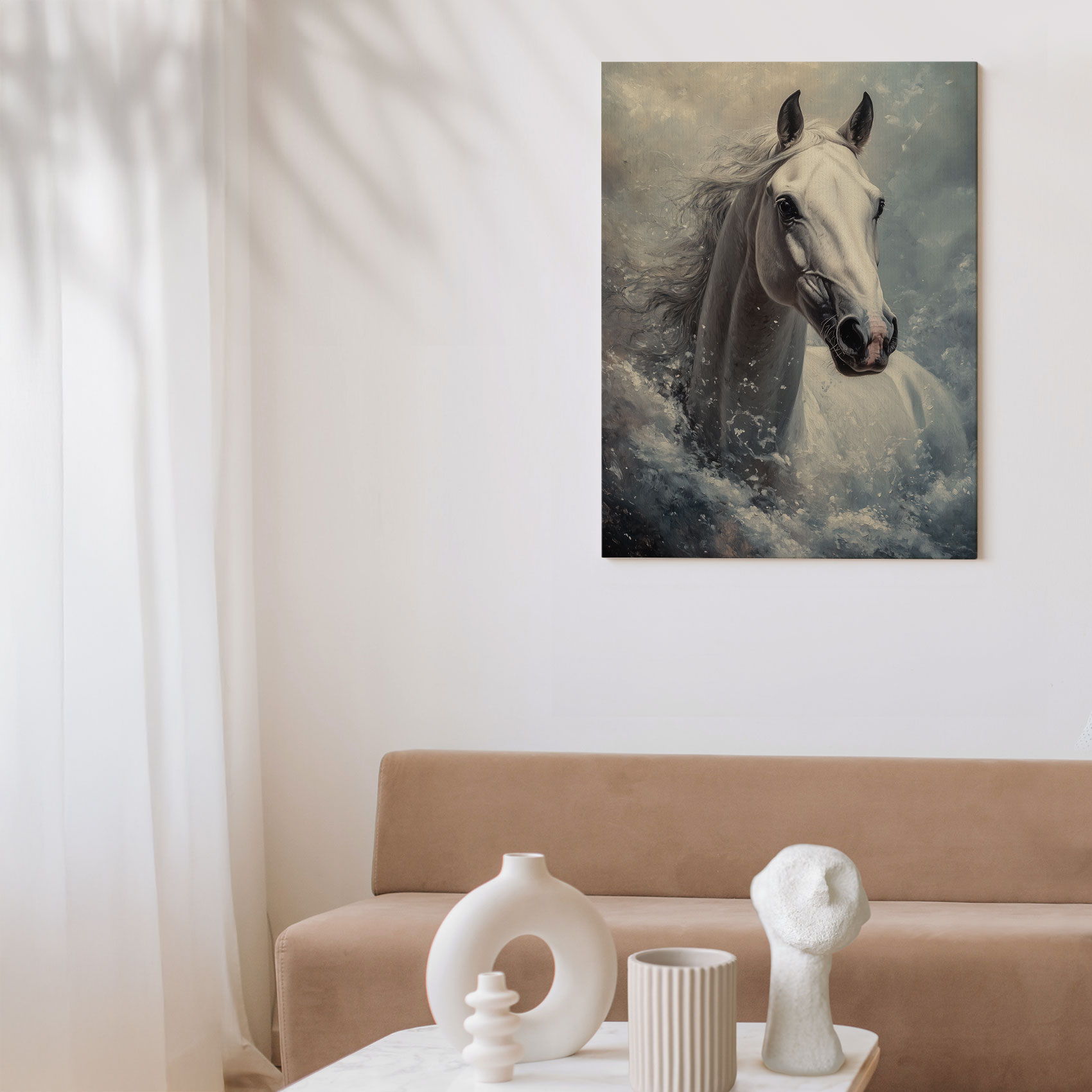 Terug naar collectie / Schilderijen / Dieren Schilderij / Stormende Witte Paardenkracht