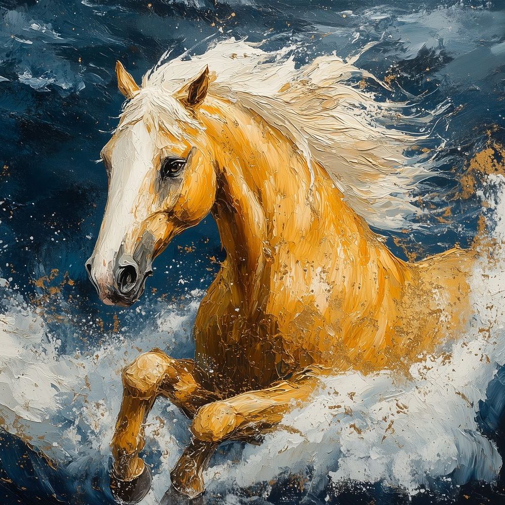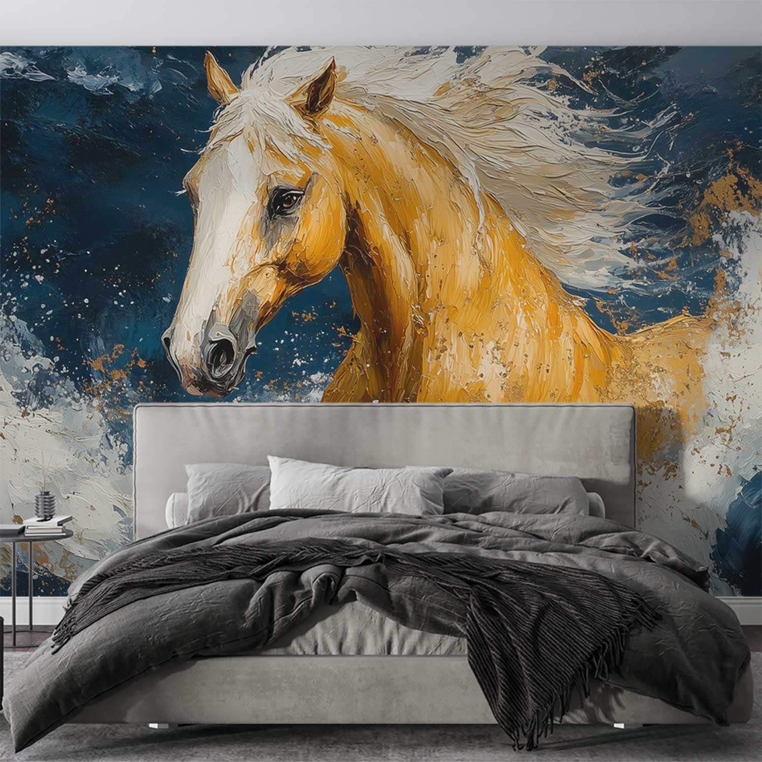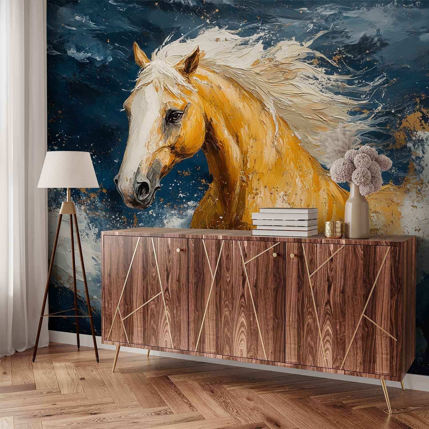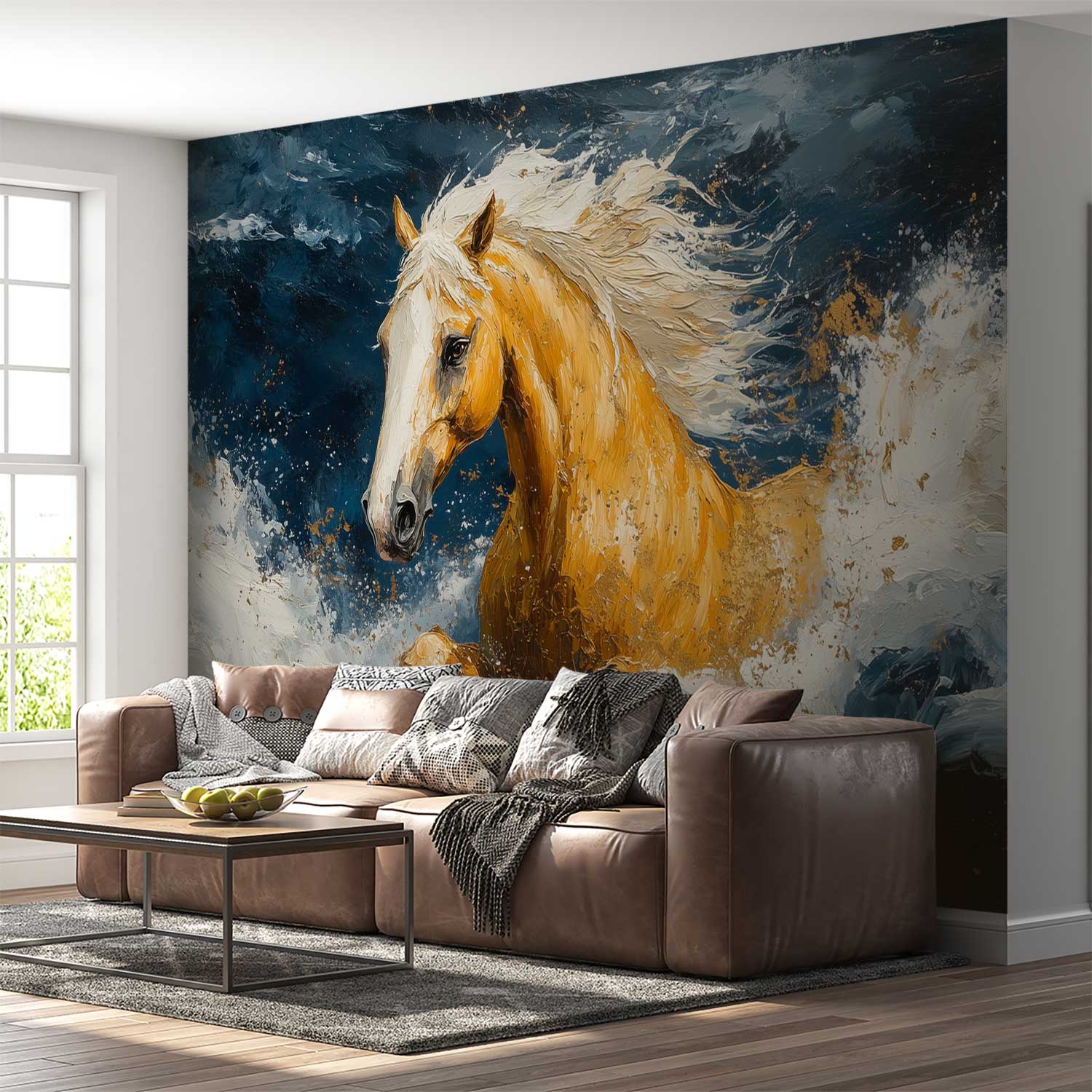 Terug naar collectie / Behang / Abstract behang / Stormende Zee Galopperend Paard behang
