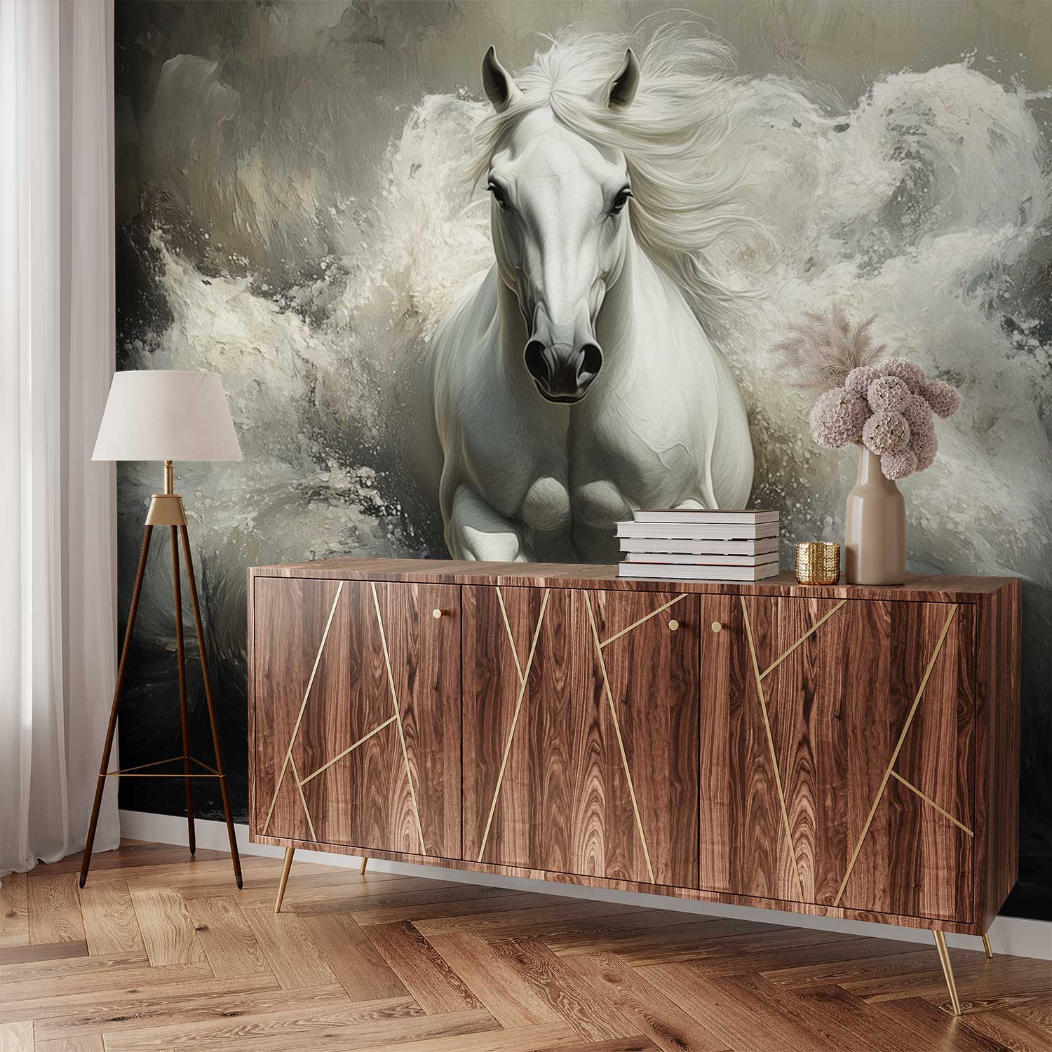 Terug naar collectie / Behang / Stormende Zee Galopperend Paard behang