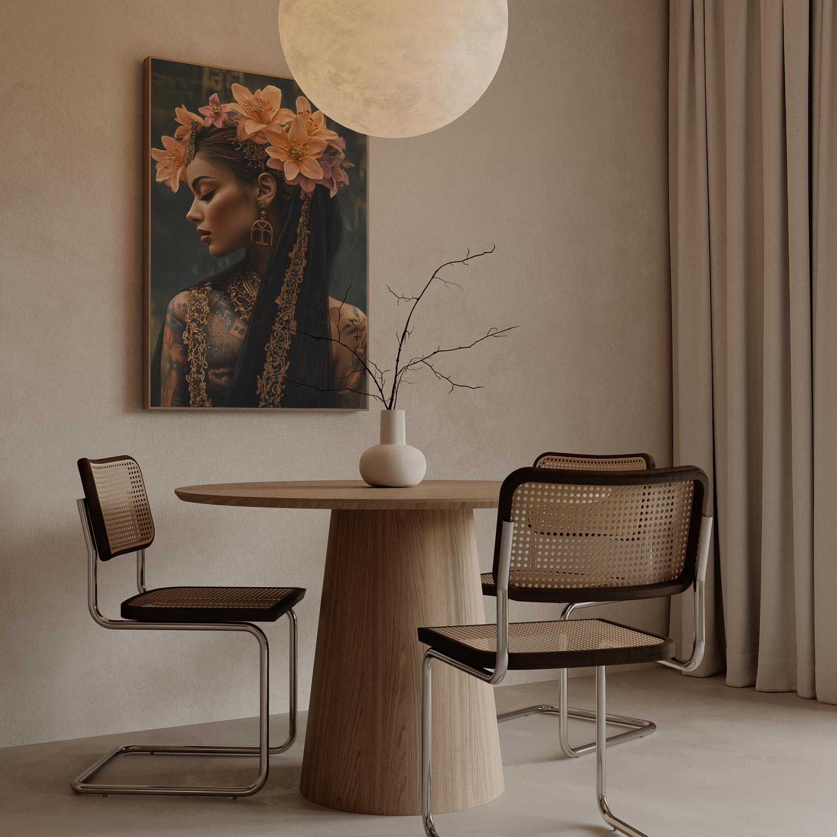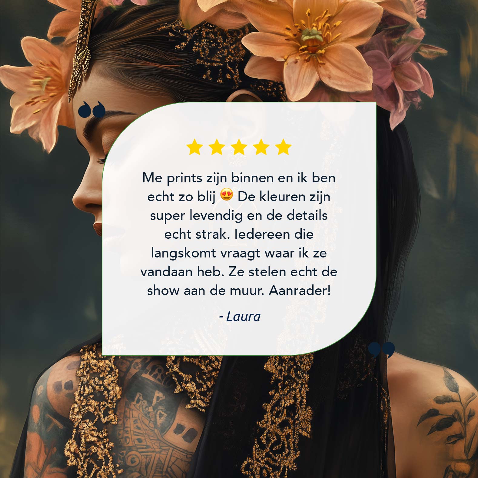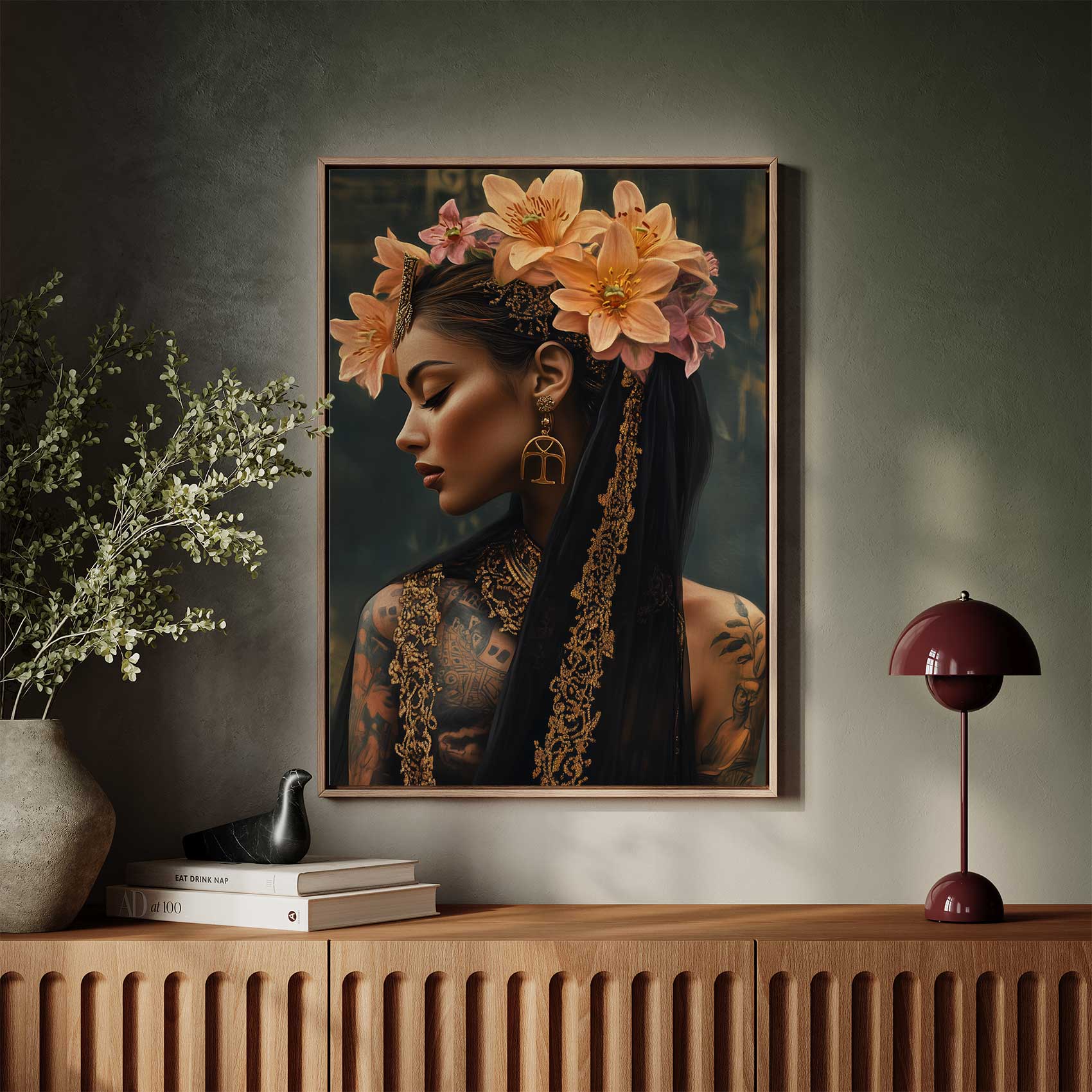 Terug naar collectie / Schilderijen / Bloemen Schilderij / Tattoo dame met bloemenkroon