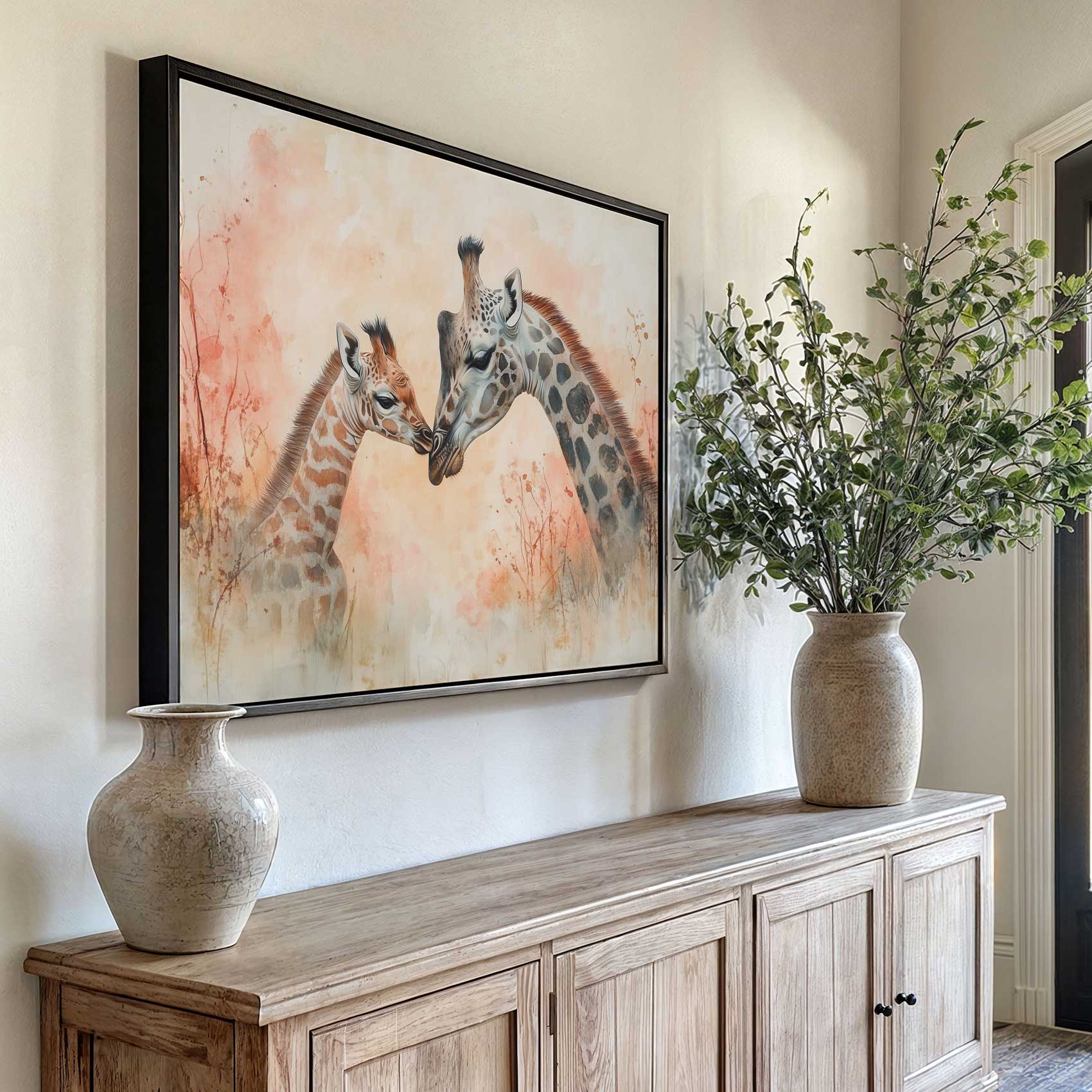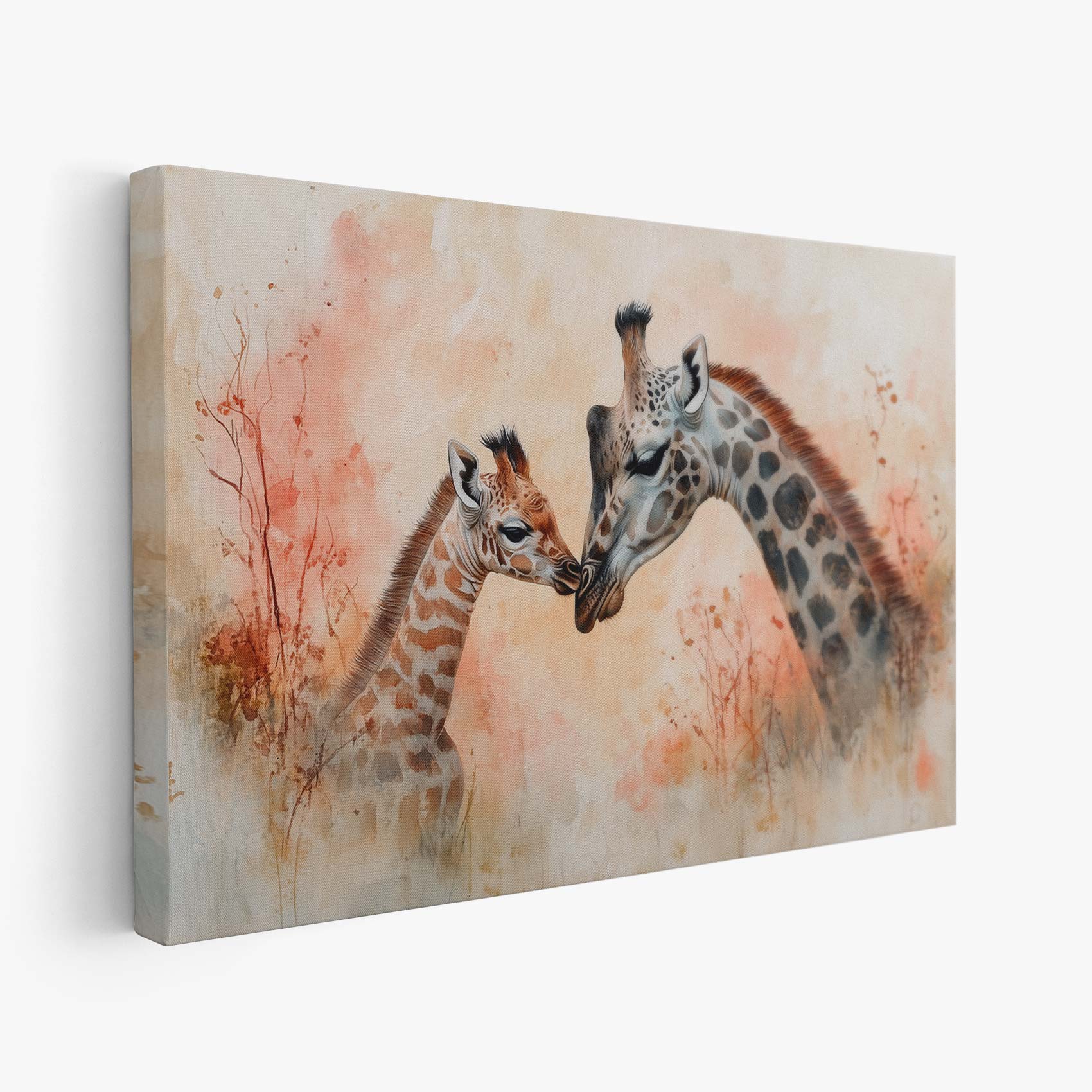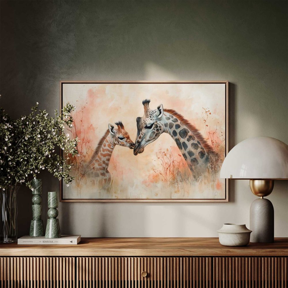 Terug naar collectie / Schilderijen / Dieren Schilderij / Teder moeder-kind giraffen schilderij