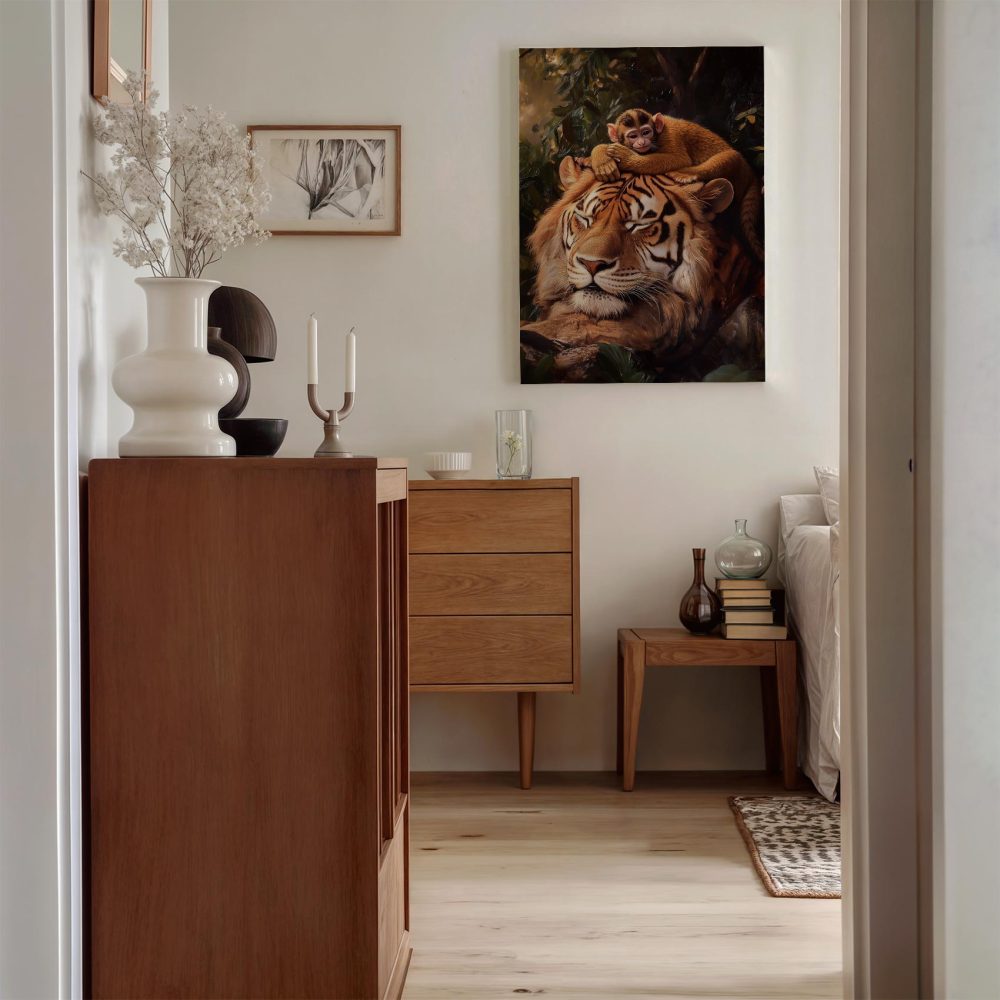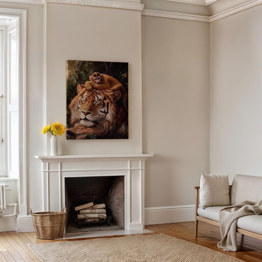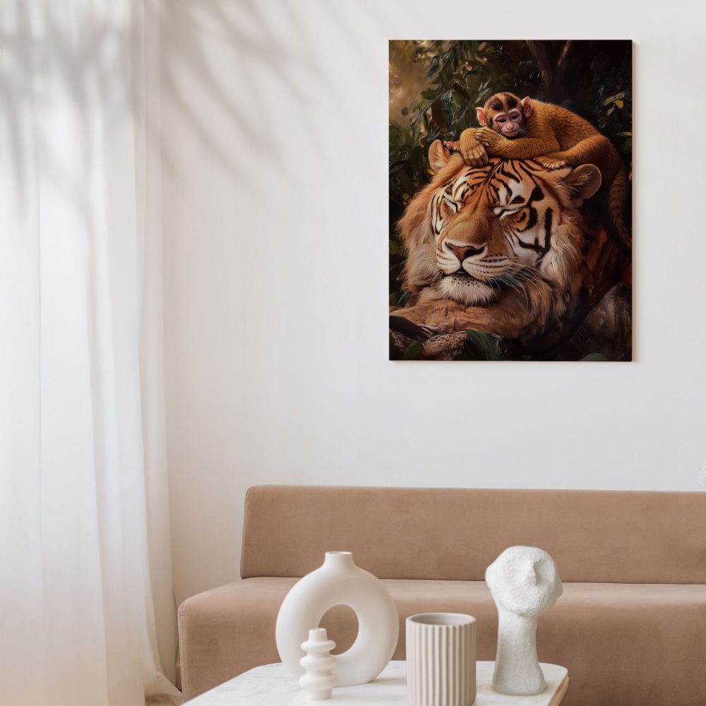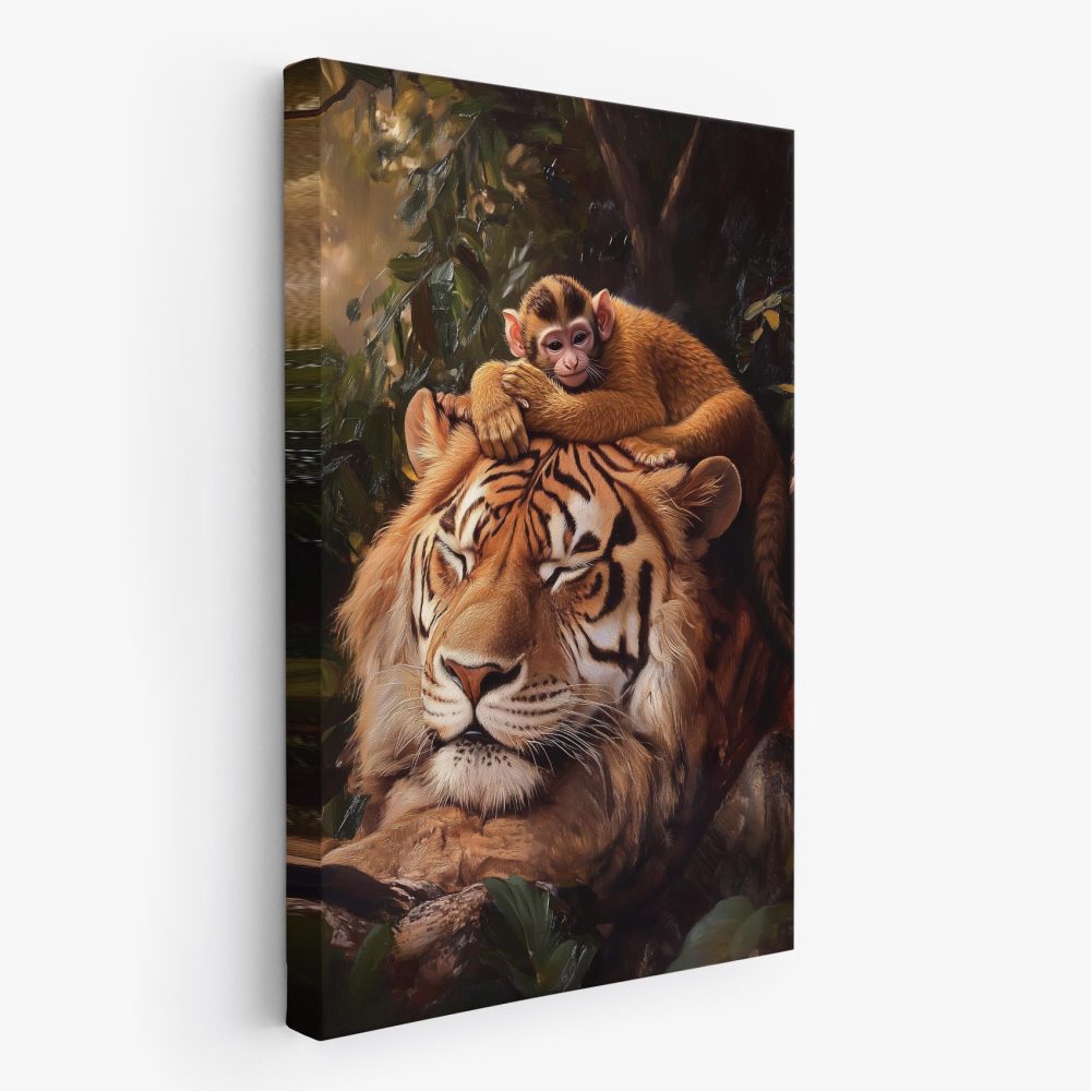 Tijger met rustende aap