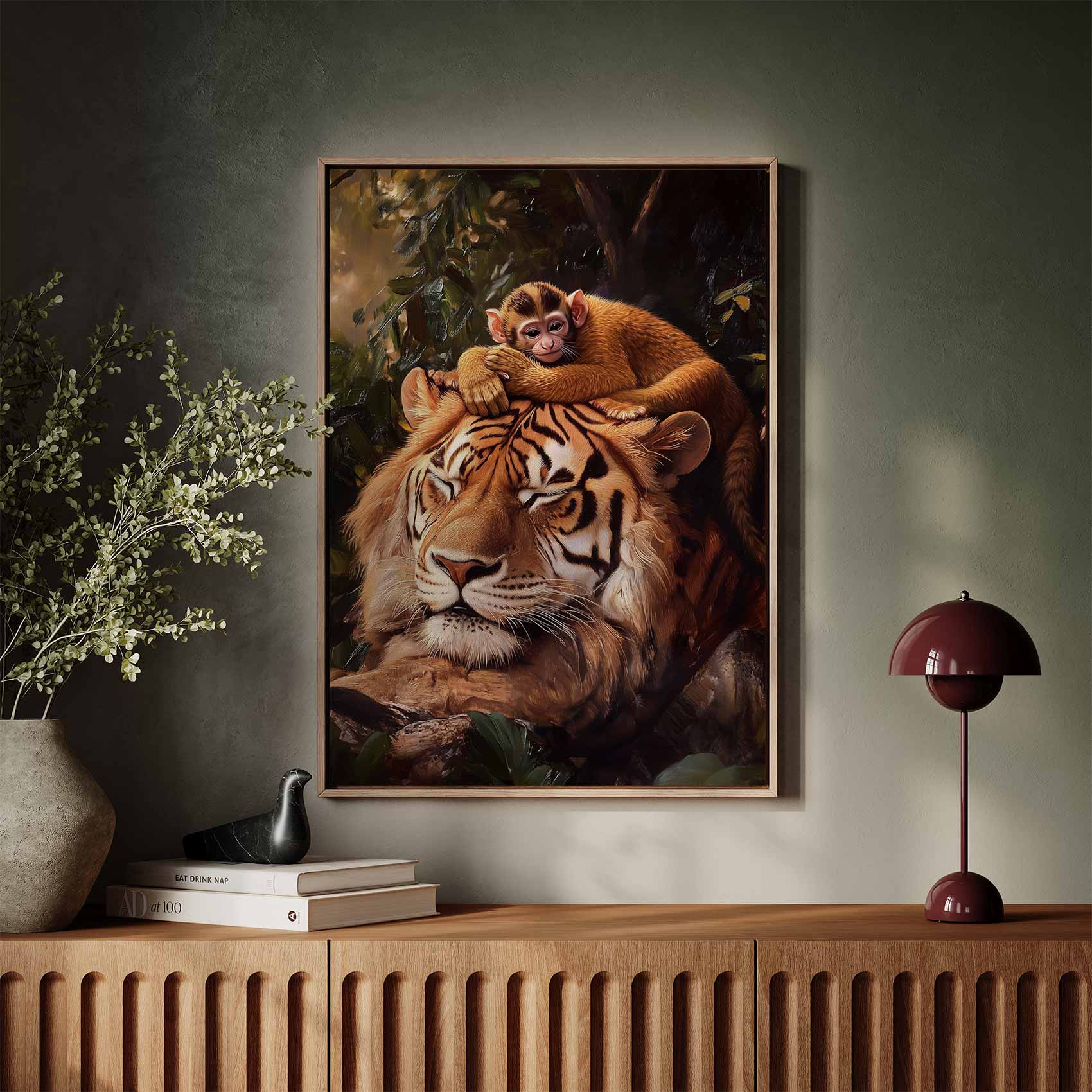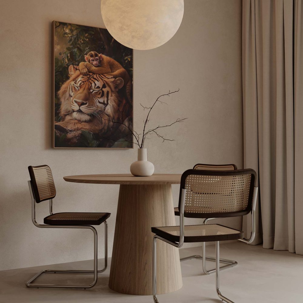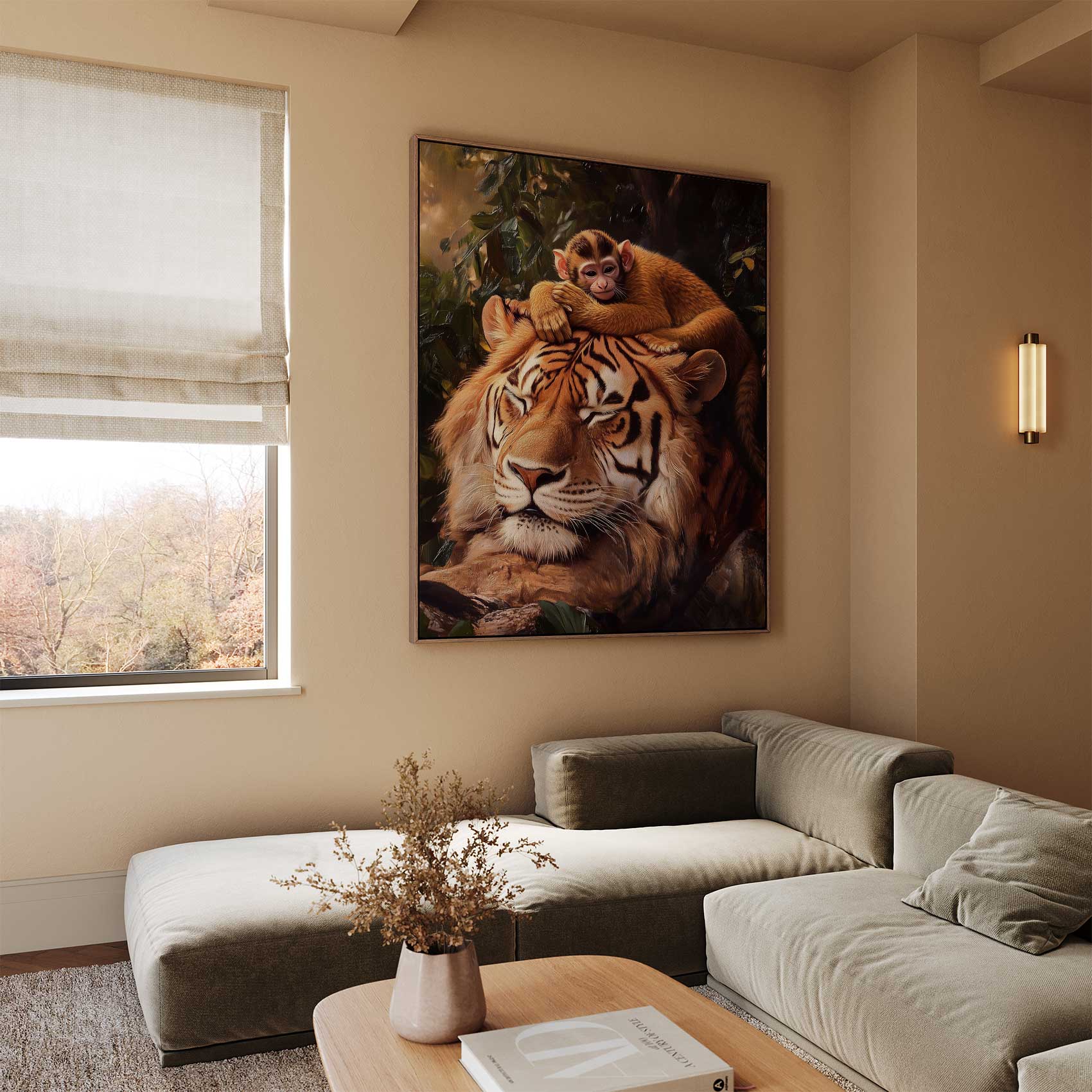 Tijger met rustende aap