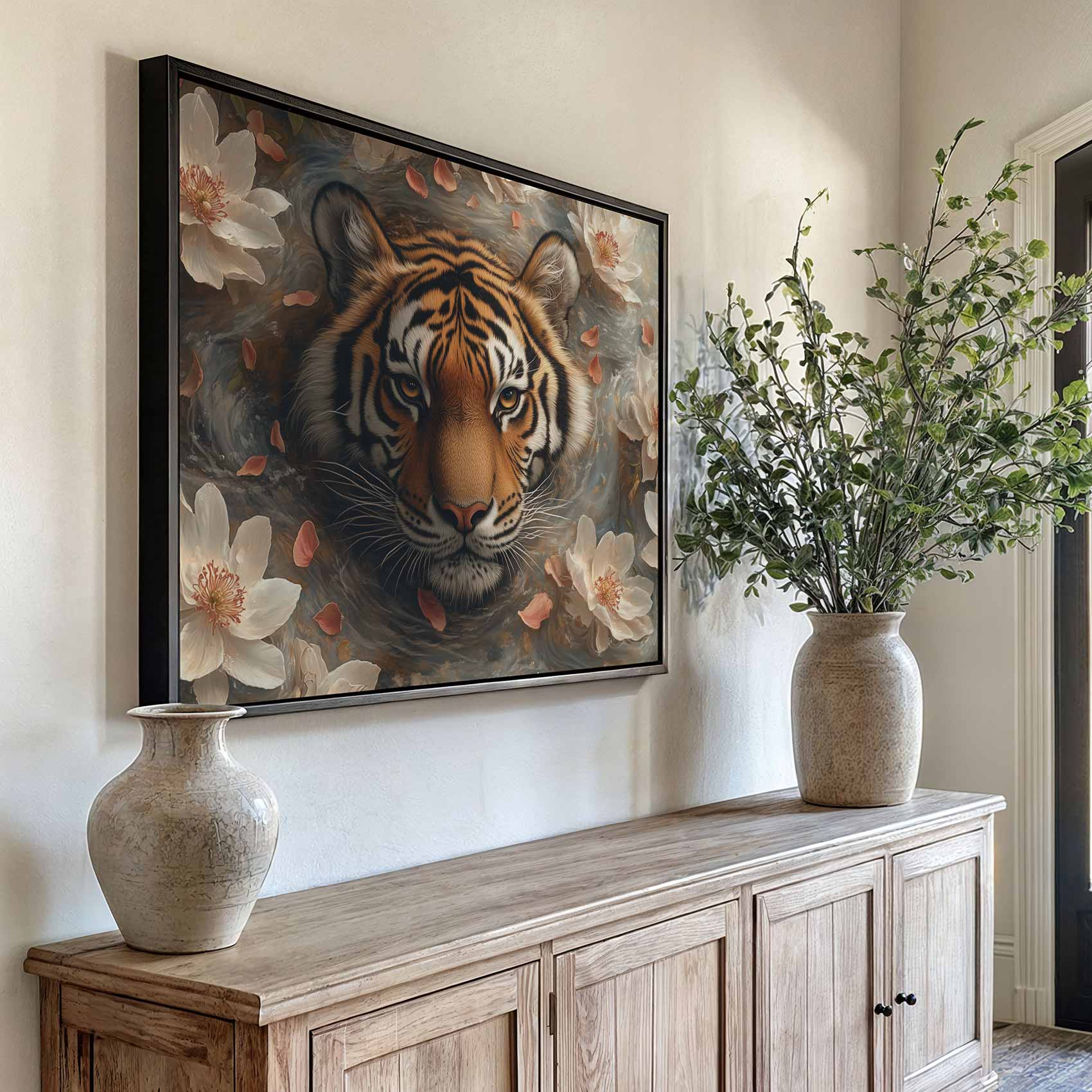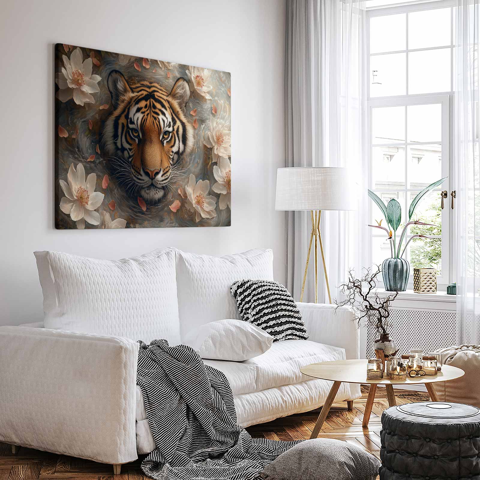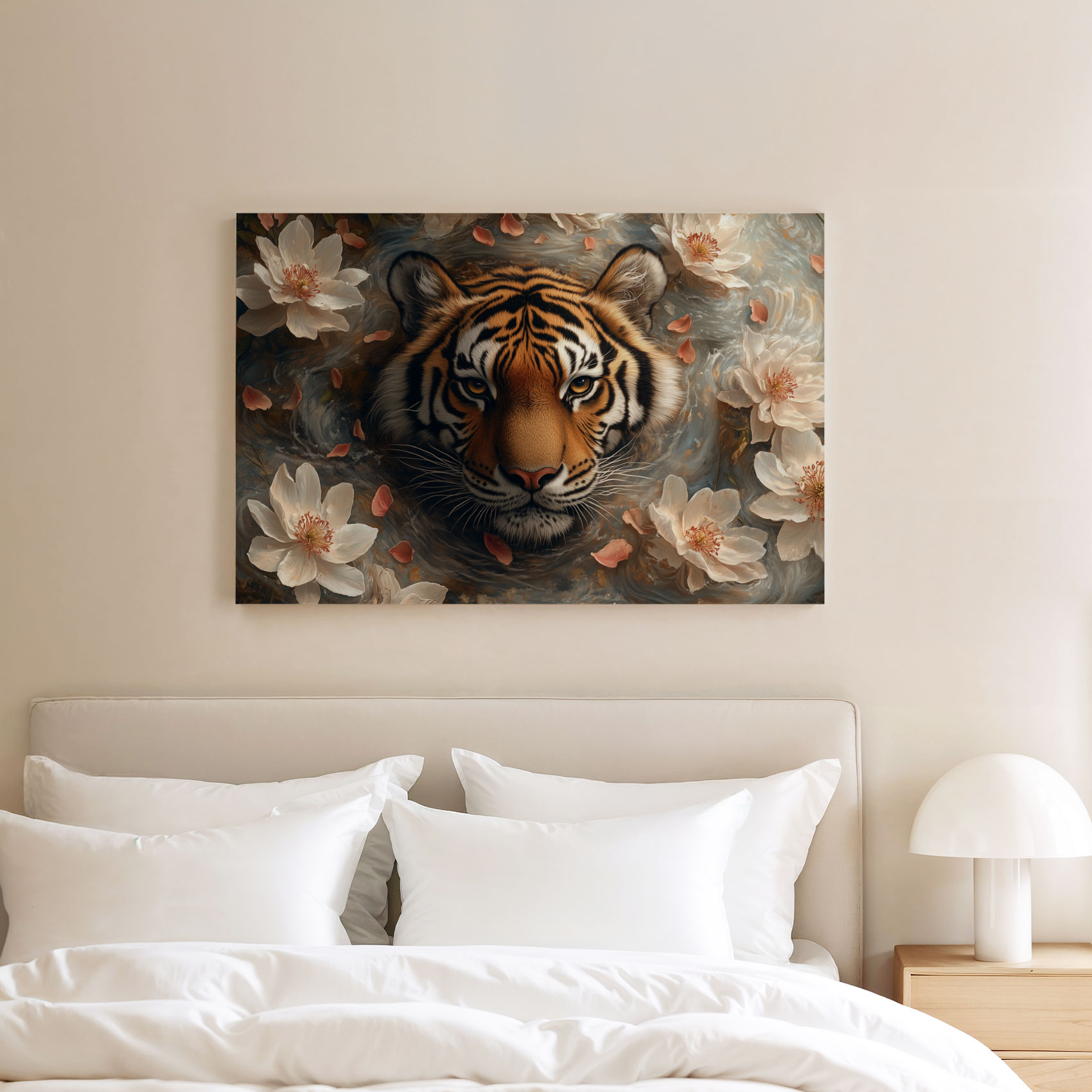 Terug naar collectie / Schilderijen / Bloemen Schilderij / Tijger tussen bloemenpracht
